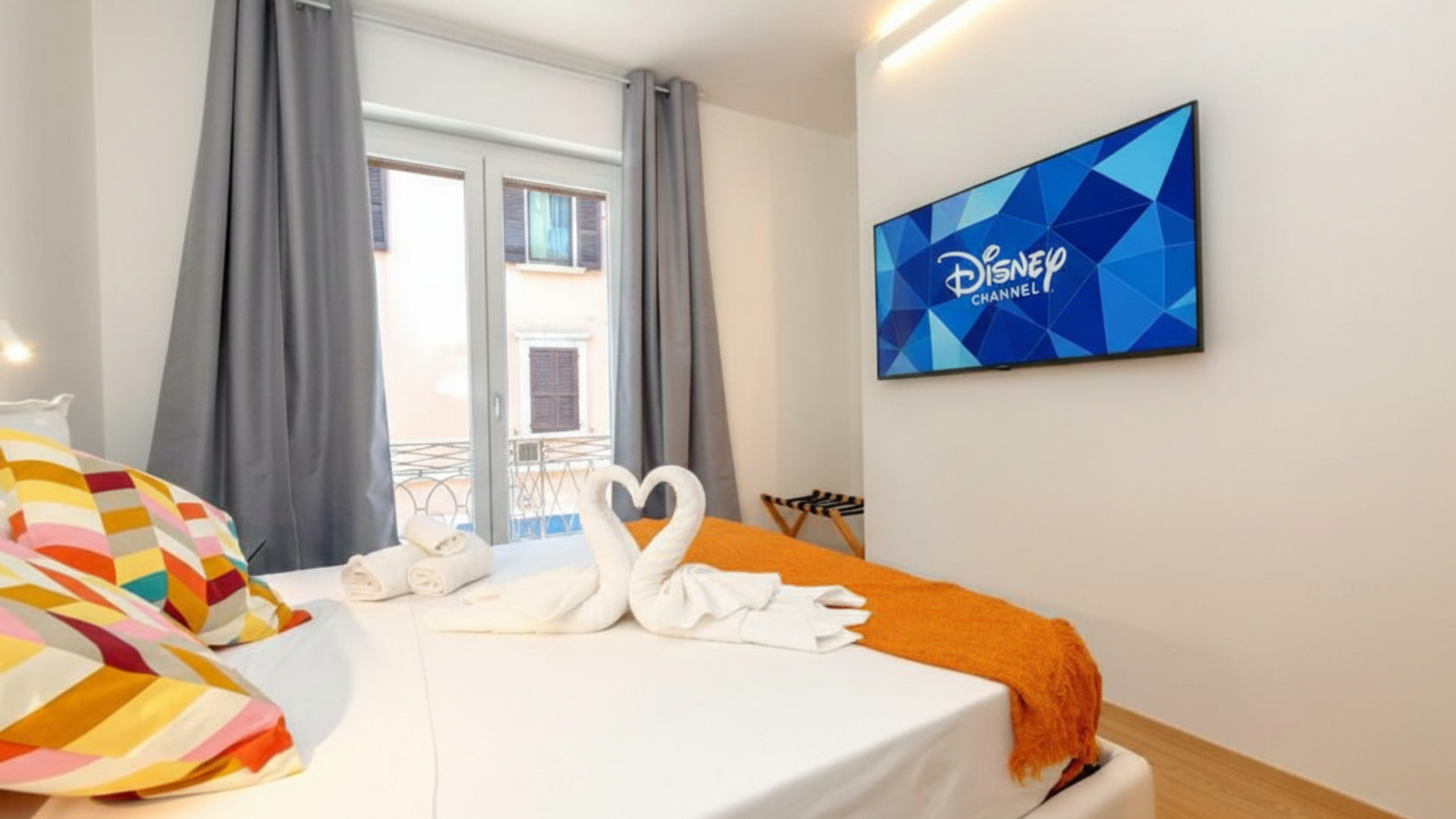 L’appartamento dispone di due eleganti camere matrimoniali, una delle quali impreziosita da una cabina armadio indipendente, di una camera con due letti singoli, di una camera con divano letto singolo e del divano letto matrimoniale nel soggiorno. Ogni camera è dotata di aria condizionata, TV a schermo piatto, oltre a un accesso diretto a un balcone privato, perfetto per godere di momenti di relax nella quiete e nell’intimità.