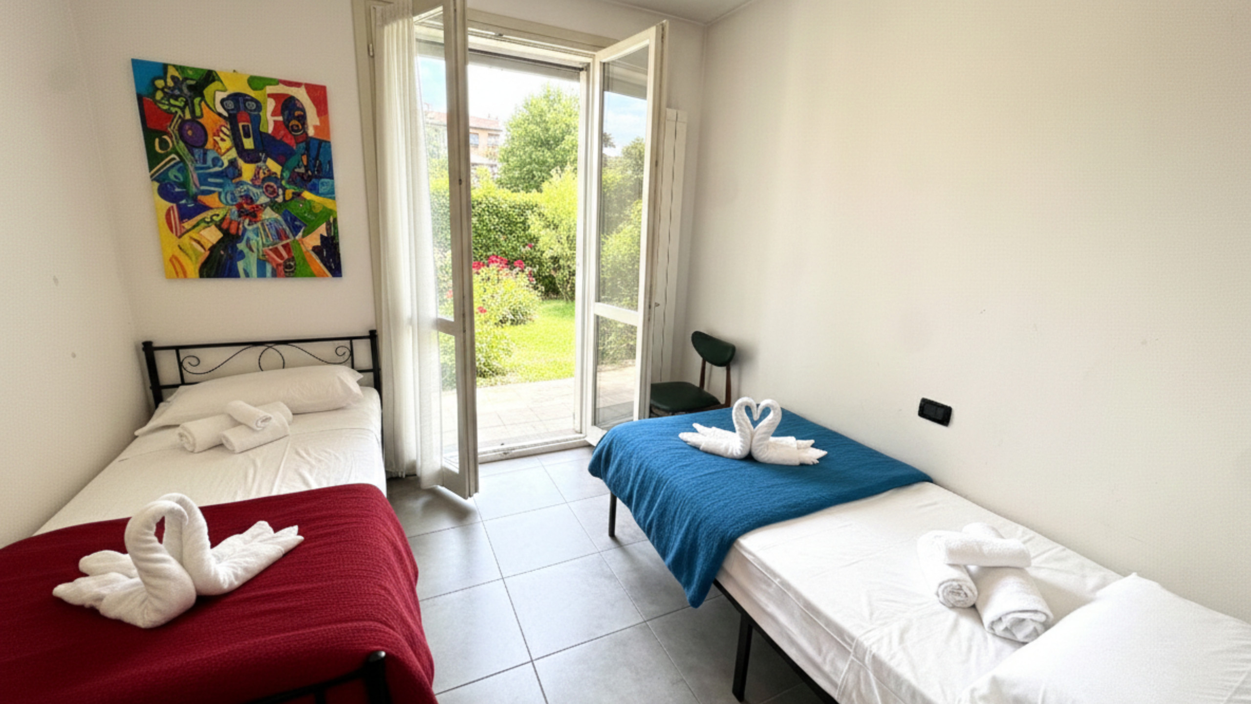 Nella camera singola secondo me ci può stare benissimo un letto a castello in modo da evitare di aprire il divano letto o l’utilizzo di letti aggiuntivi.
