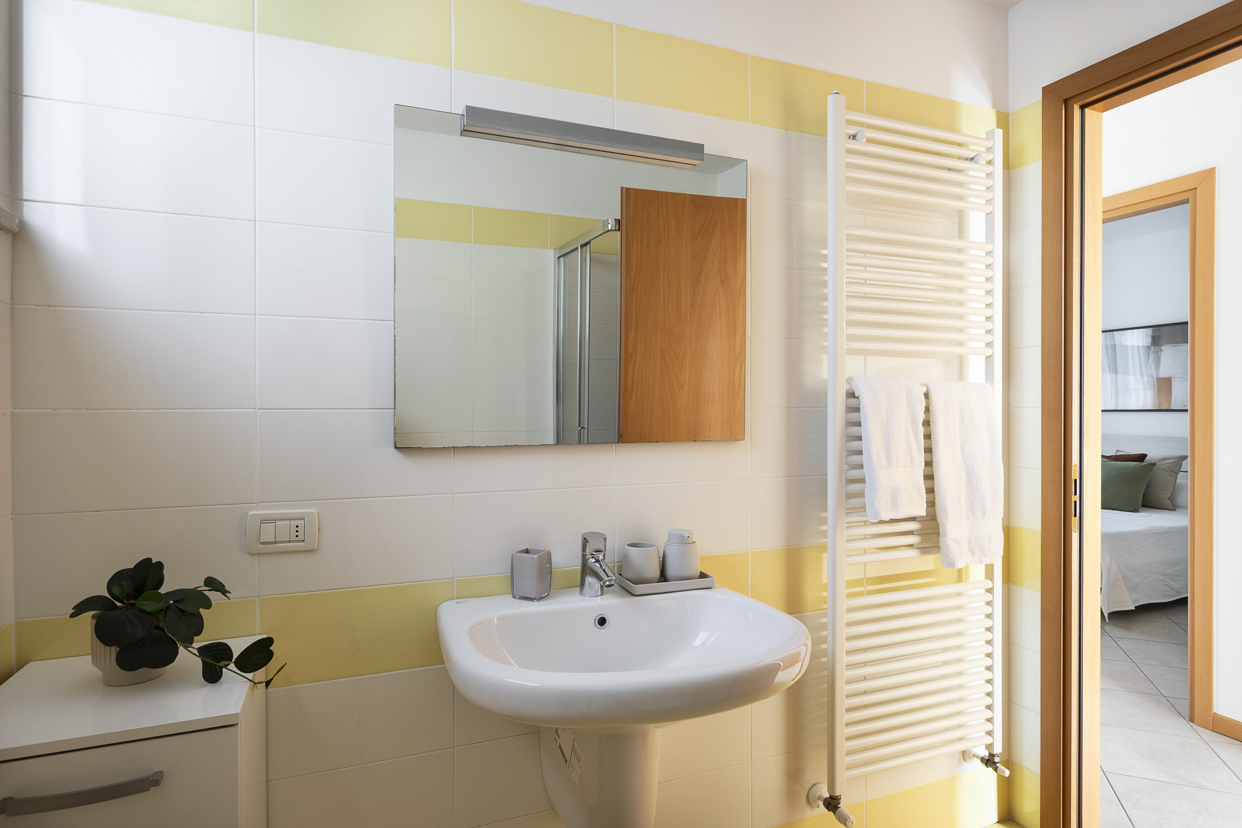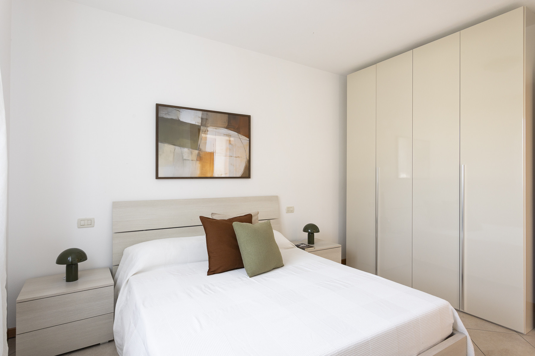 All’interno vi aspettano colori armoniosi nelle tonalità verde oliva e natura, che richiamano il paesaggio mediterraneo e creano un’atmosfera di calma e benessere.