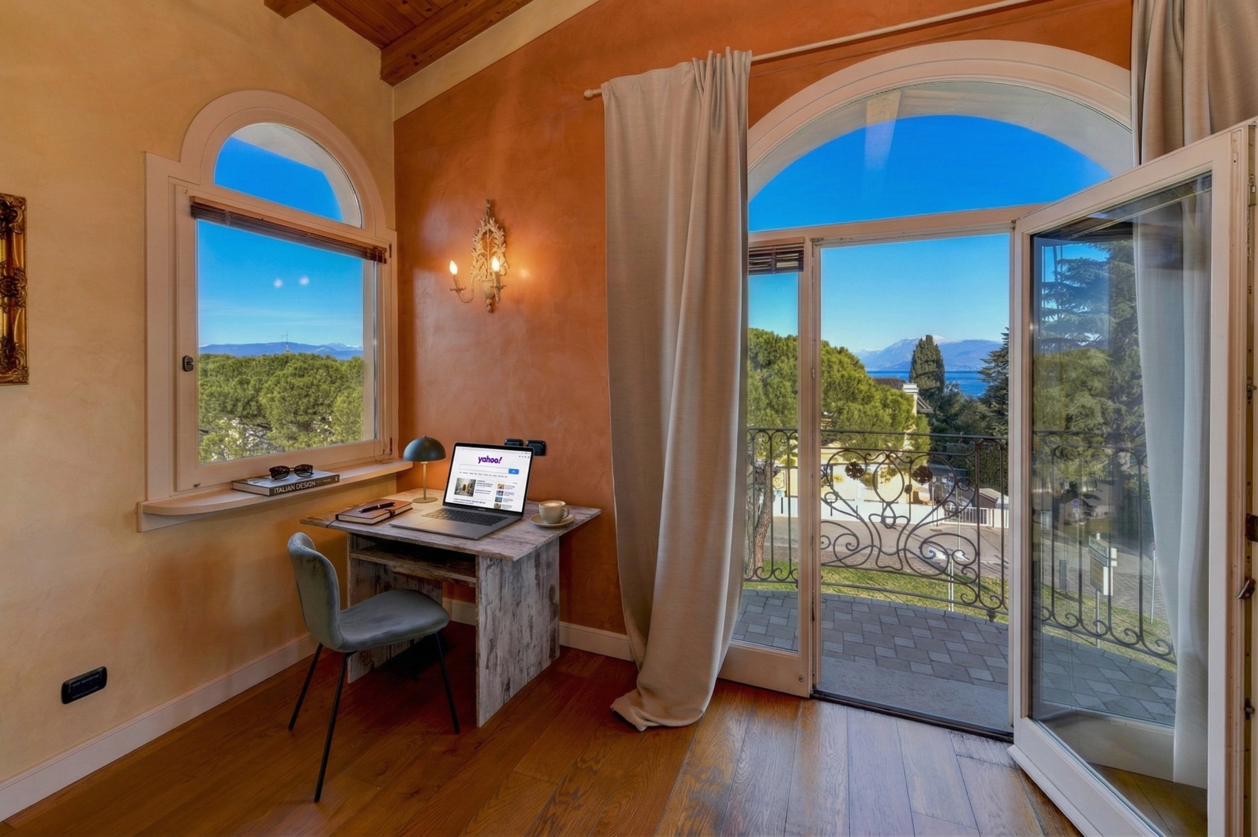 Circondata da un giardino curato, una piscina di acqua salata e affacciata sulle acque del Lago di Garda, la villa si sviluppa su tre livelli – ultimo piano mansardato – ed è interamente riservata agli ospiti, che ne godono l’uso esclusivo per tutta la durata del soggiorno.