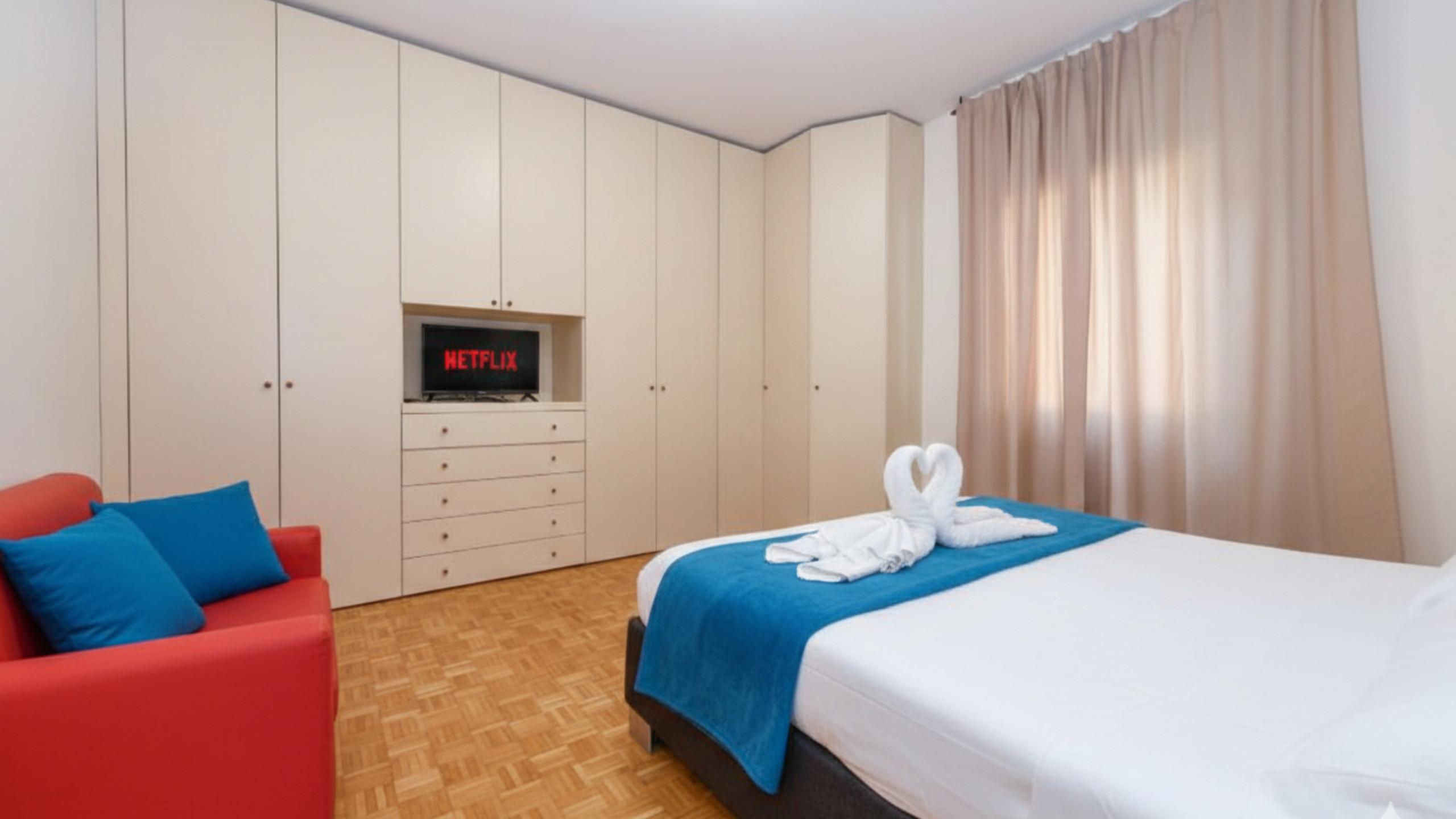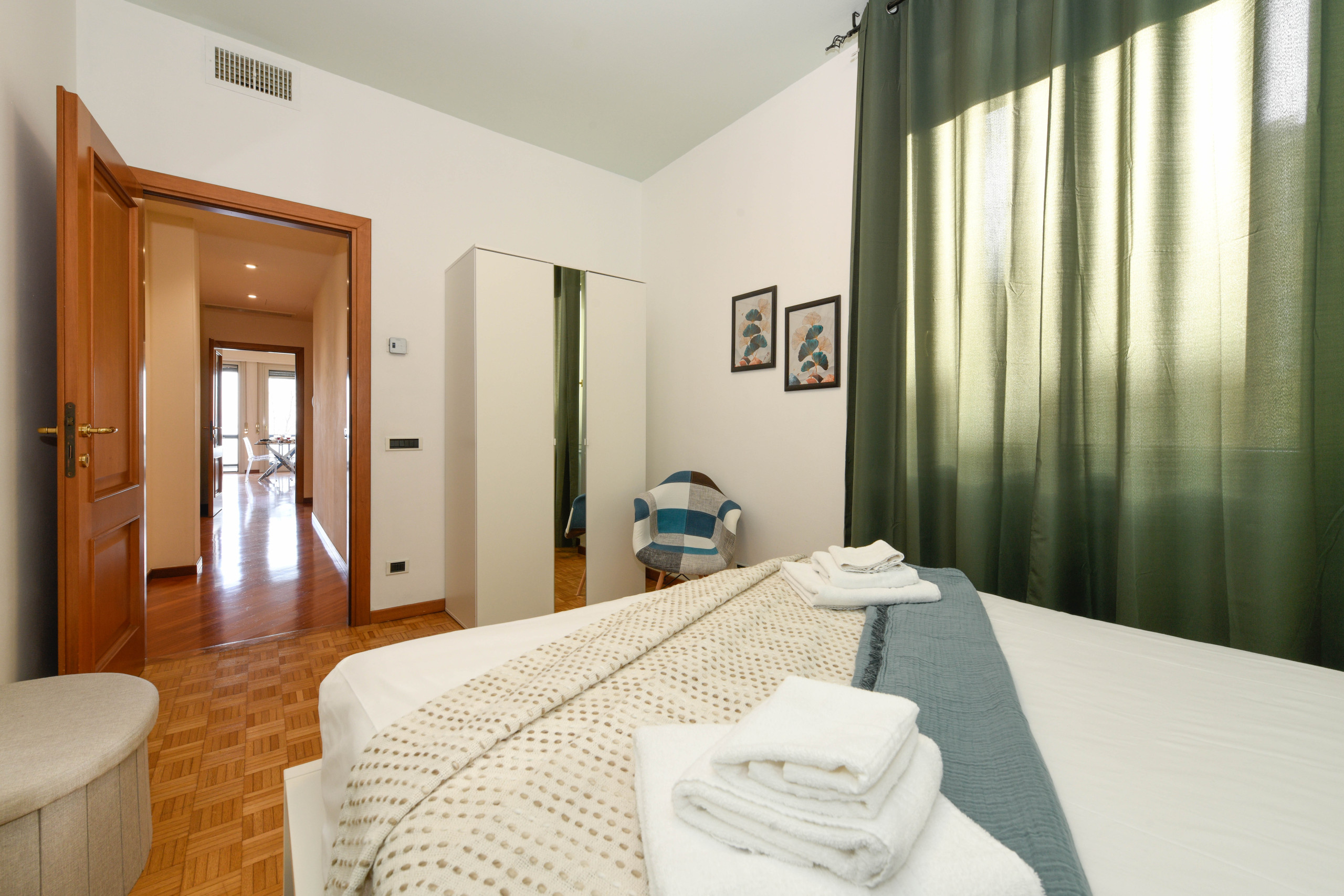 Der Schlafbereich besteht aus drei geräumigen und hellen Doppelzimmern, alle mit großen Kleiderschränken und Matratzen mit hochwertigen Topper ausgestattet, die darauf ausgelegt sind, maximalen Schlafkomfort zu gewährleisten. Das Hauptschlafzimmer ist zusätzlich mit einem 40" Smart-TV ausgestattet. Jedes Detail der Einrichtung ist darauf ausgelegt, ein entspannendes und komfortables Aufenthaltserlebnis zu garantieren. Die Wohnung verfügt über zwei Badezimmer, eines mit Badewanne, Waschbecken, WC und Bidet, und das andere mit Dusche, Waschbecken und WC. Jeder Raum wird durch die Klimaanlage mit Kanälen, die in jedem Raum regulierbar ist, noch komfortabler, für maximalen Komfort in jeder Jahreszeit.