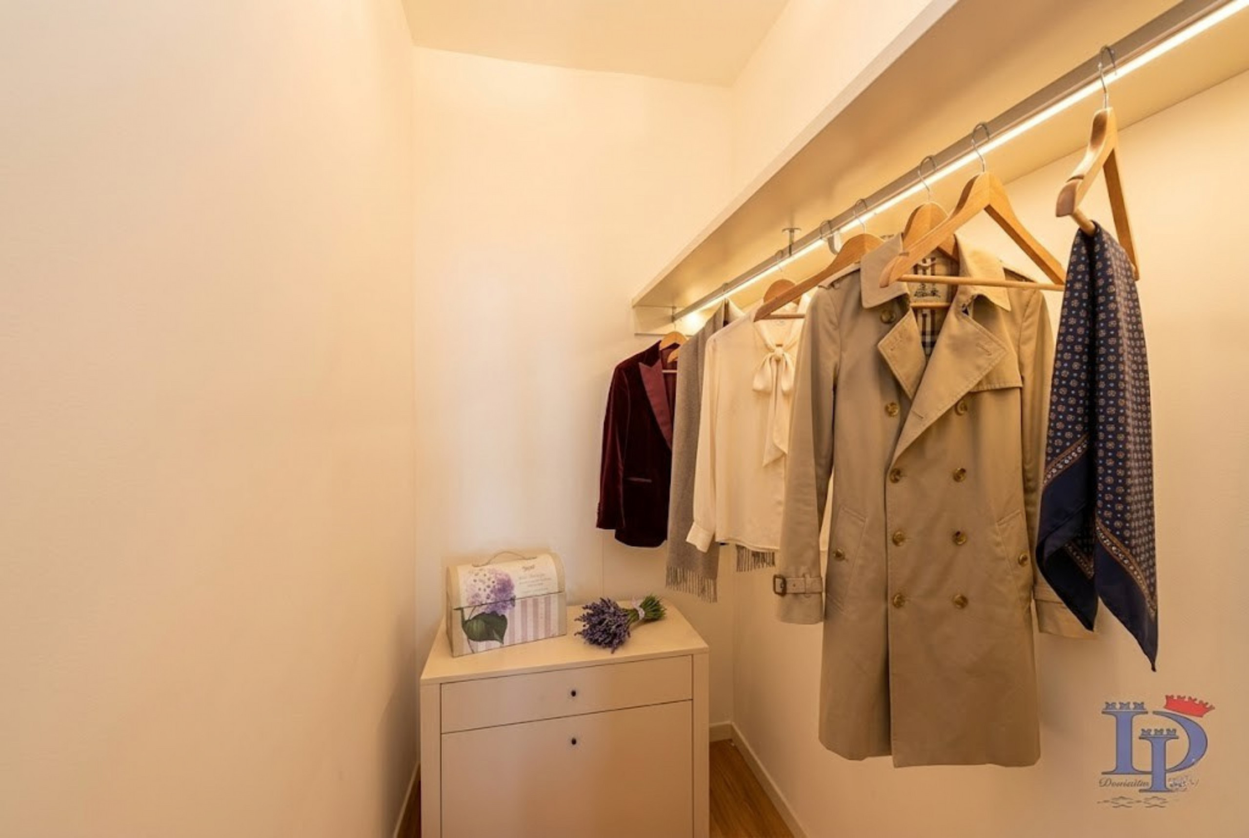 Eine venezianische Treppe führt in die obere Etage, wo der Schlafbereich zwei Doppelzimmer aufnimmt, beide klimatisiert, um maximalen Komfort zu gewährleisten. Das Hauptschlafzimmer scheint über dem Wasser zu schweben: Vom Bett, das mit einem weichen 7 cm Topper veredelt ist, eröffnet sich ein atemberaubender Blick; ein geräumiger Ankleideschrank, ein Smart-TV und ein privates Badezimmer mit moderner Dusche und umweltfreundlichen Spendern vervollständigen das Ambiente. Das zweite Zimmer, ebenso raffiniert, blickt nach Westen und bietet einen großen Kleiderschrank und ein Doppelbett mit demselben Komfortniveau.