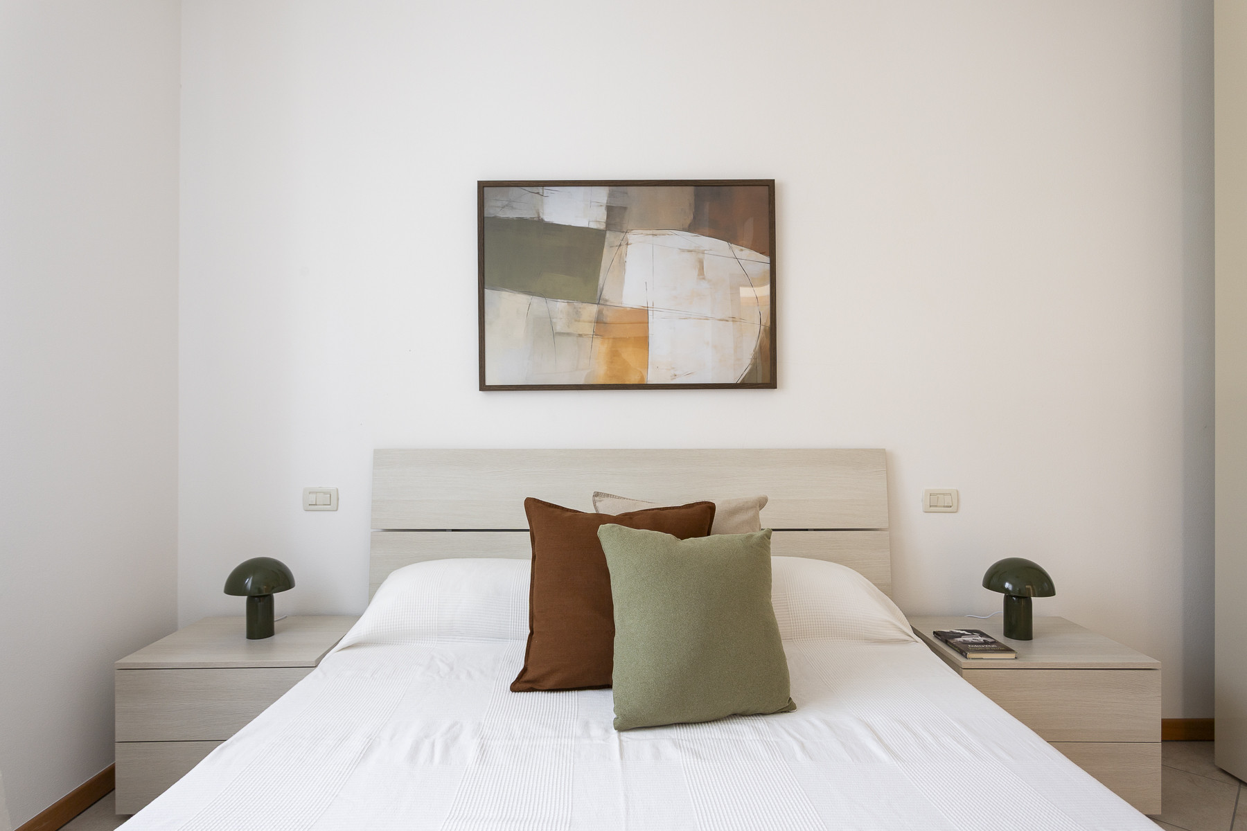 Im Innenbereich erwarten Sie harmonische Oliven- und Naturgrüntöne, die die mediterrane Landschaft widerspiegeln und eine ruhige, entspannte Atmosphäre schaffen.
