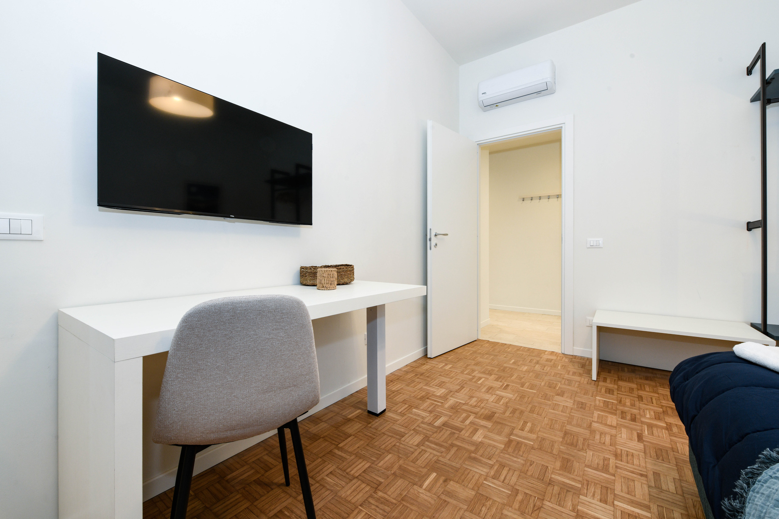 Climatic comfort is guaranteed by air conditioning in the living room and both bedrooms, while the space distribution makes the apartment fresh, airy, and pleasant at any time of day.