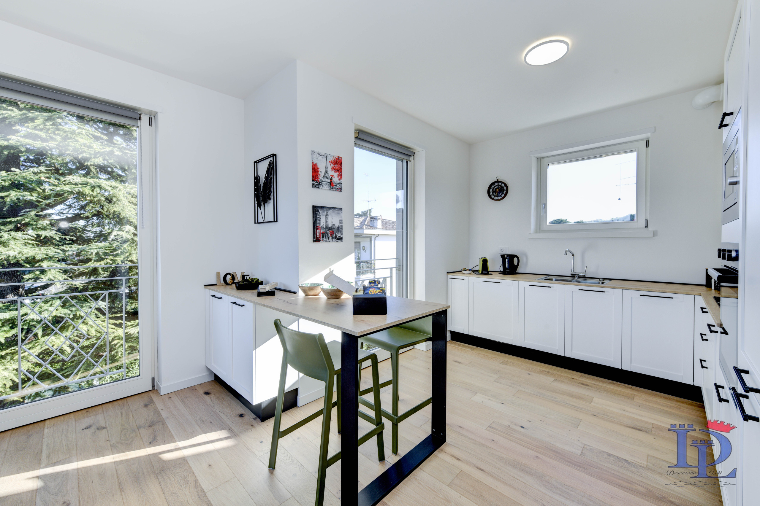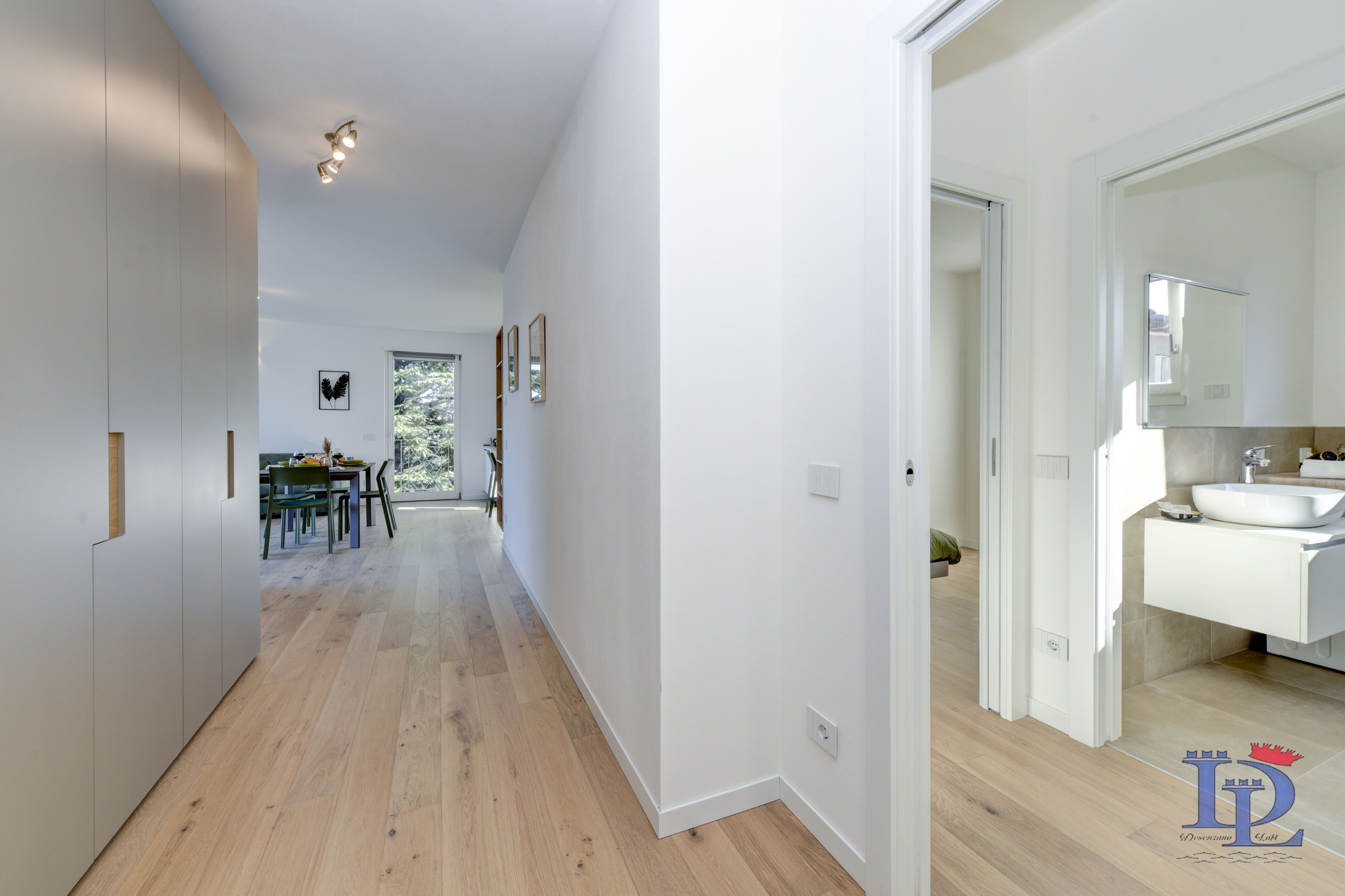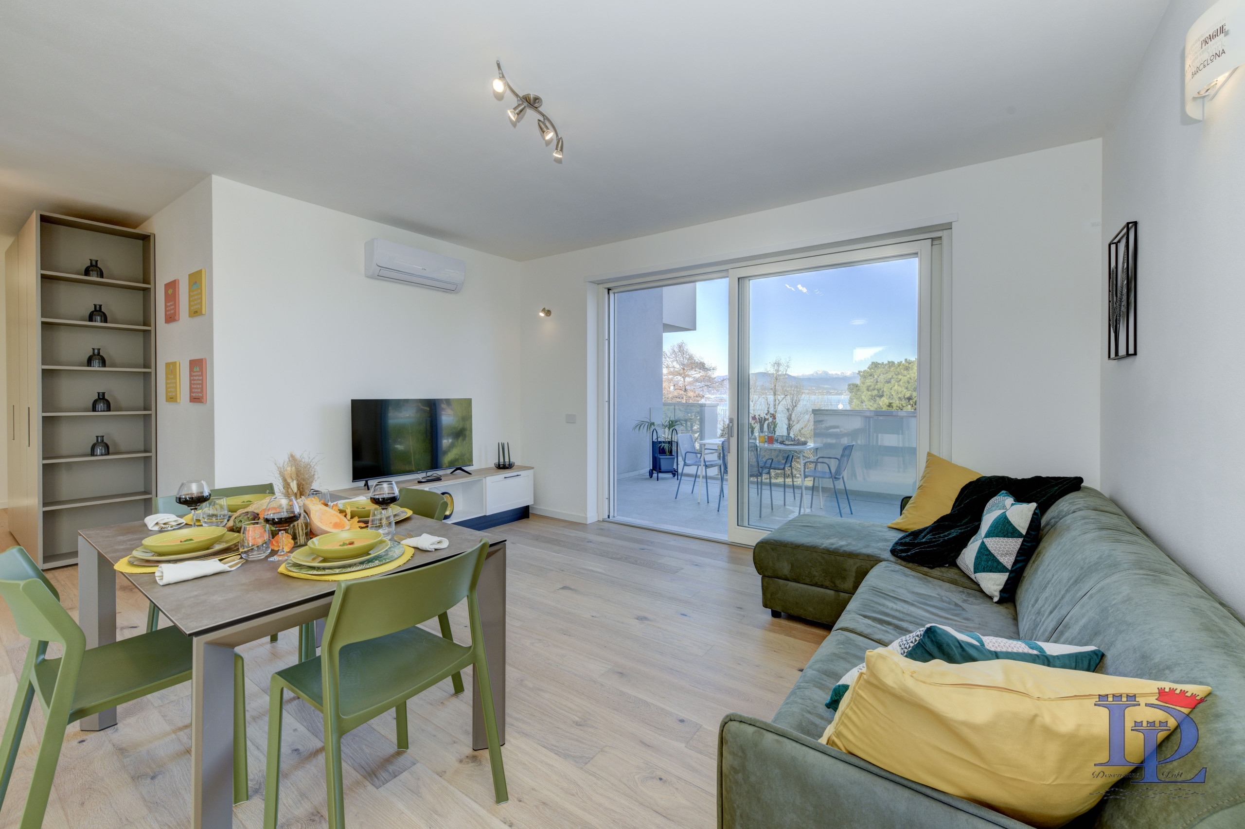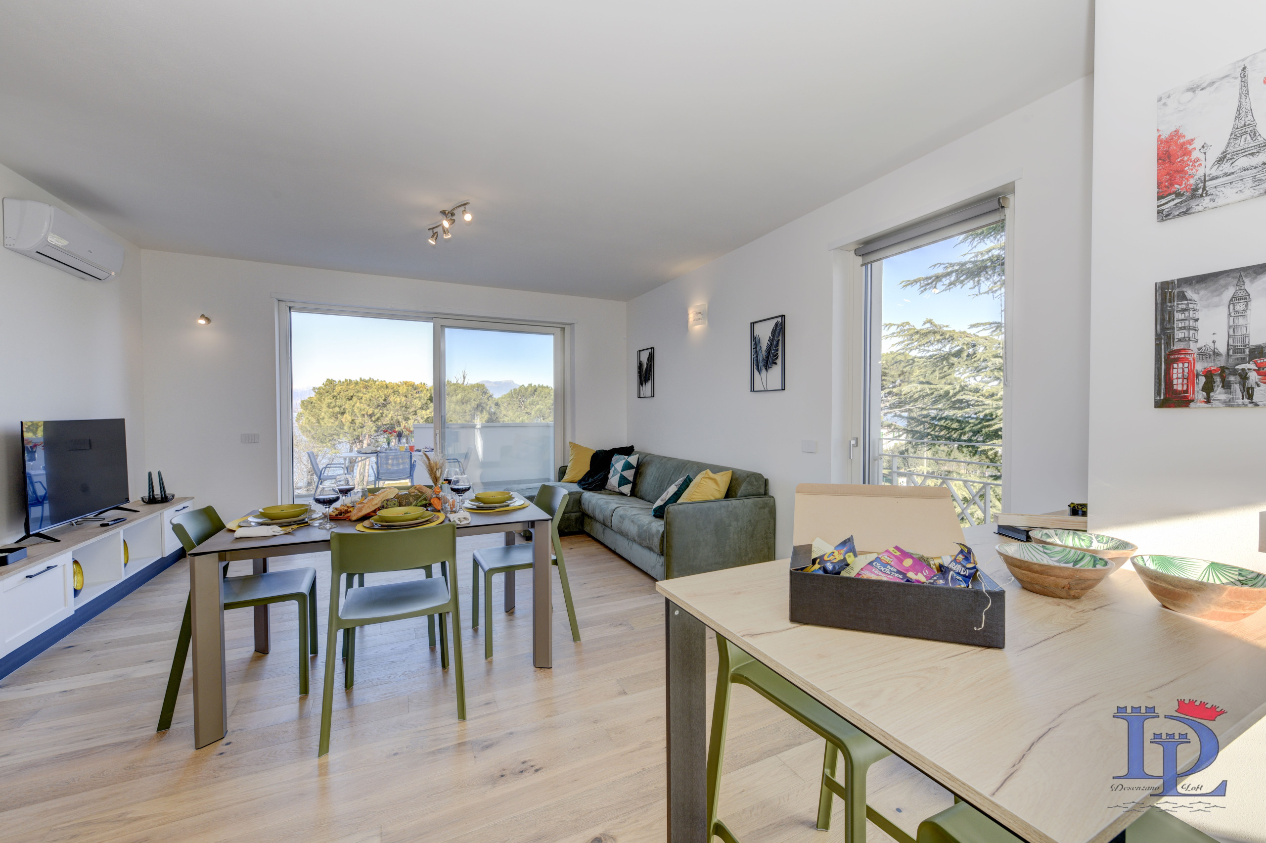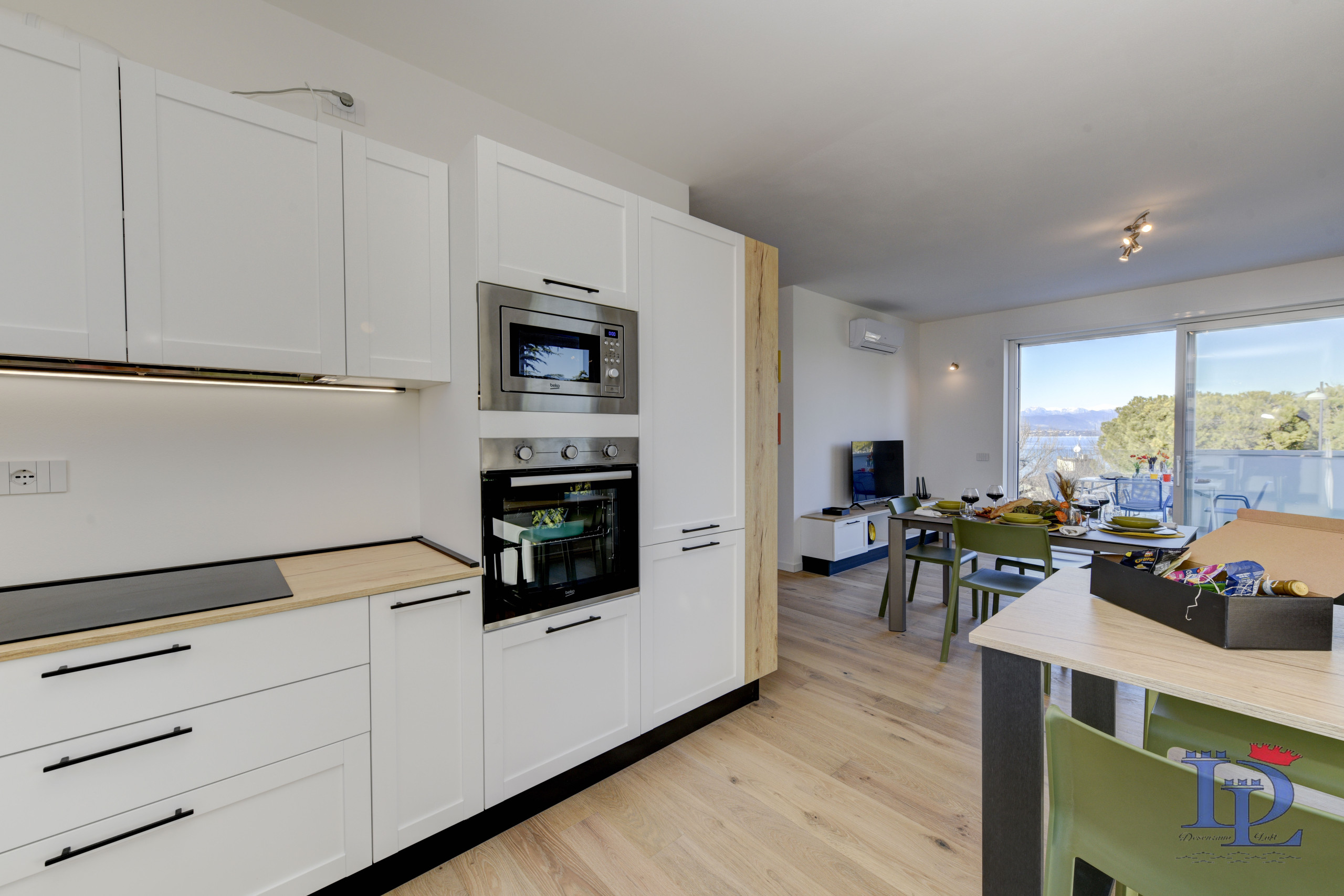 Część dzienna to oda do elegancji i funkcjonalności: aneks kuchenny w stylu amerykańskim jest w pełni wyposażony w płytę indukcyjną, zmywarkę, piekarnik, kuchenkę mikrofalową, ekspres do kawy (Nespresso) i lodówkę, idealny półwysep na śniadanie z widokiem. Duży salon to prawdziwy rajski zakątek, oświetlony trzema oknami z widokiem na przyrodę i jezioro, a wszystko to wzbogacone wygodną sofą (która może być również łóżkiem), telewizorem Smart TV i klimatyzacją. Wszystko otwiera się na duży taras, który zaprasza na niezapomniane aperitify o zachodzie słońca, podziwiając niezrównany widok na jezioro Garda.
