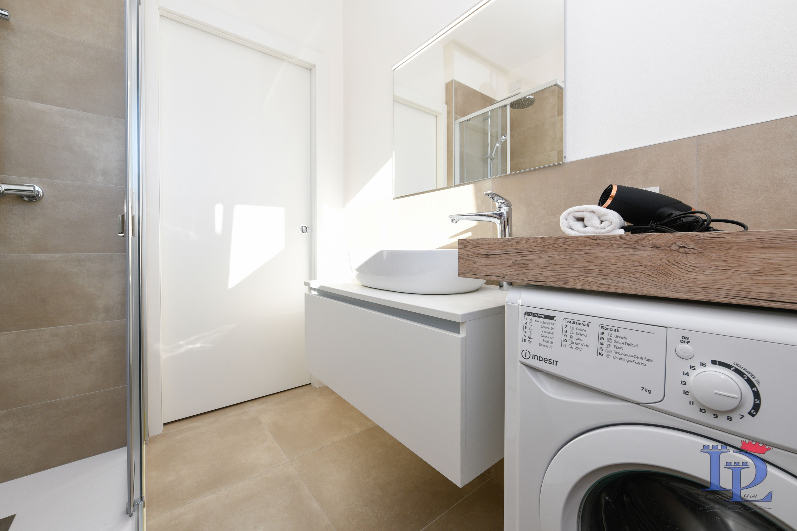 Starannie wykończona łazienka wyposażona jest w toaletę, bidet, pralkę i przestronną kabinę prysznicową. W jednym z pokoi znajduje się również telewizor Smart TV.
