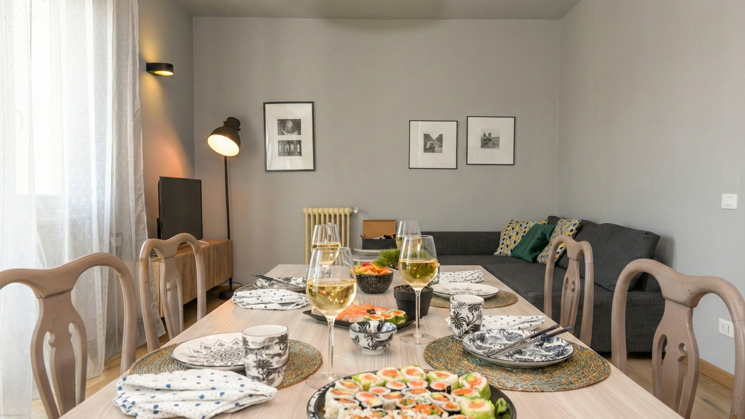 L’arredamento della casa. La vista dal balcone. Al nostro arrivo l’appartamento era pulito e caldo |
