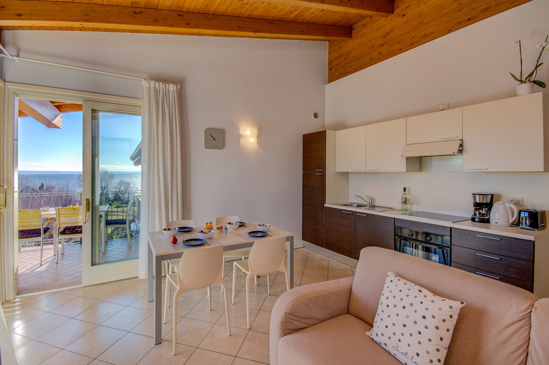 Uns hat der Ausblick vom Balkon auf den Gardasee sehr gefallen. Die Wohnung ist super, allerdings haben mir kleine Details für Gemütlichkeit gefehlt. Die Klimaanlage hat super funktioniert und die Schlafzimmer waren tatellos. Unser privater Parkplatz im Parkhaus war super. Die Anlage ist top gepflegt und es gab immer etwas Neues zu entdecken.
