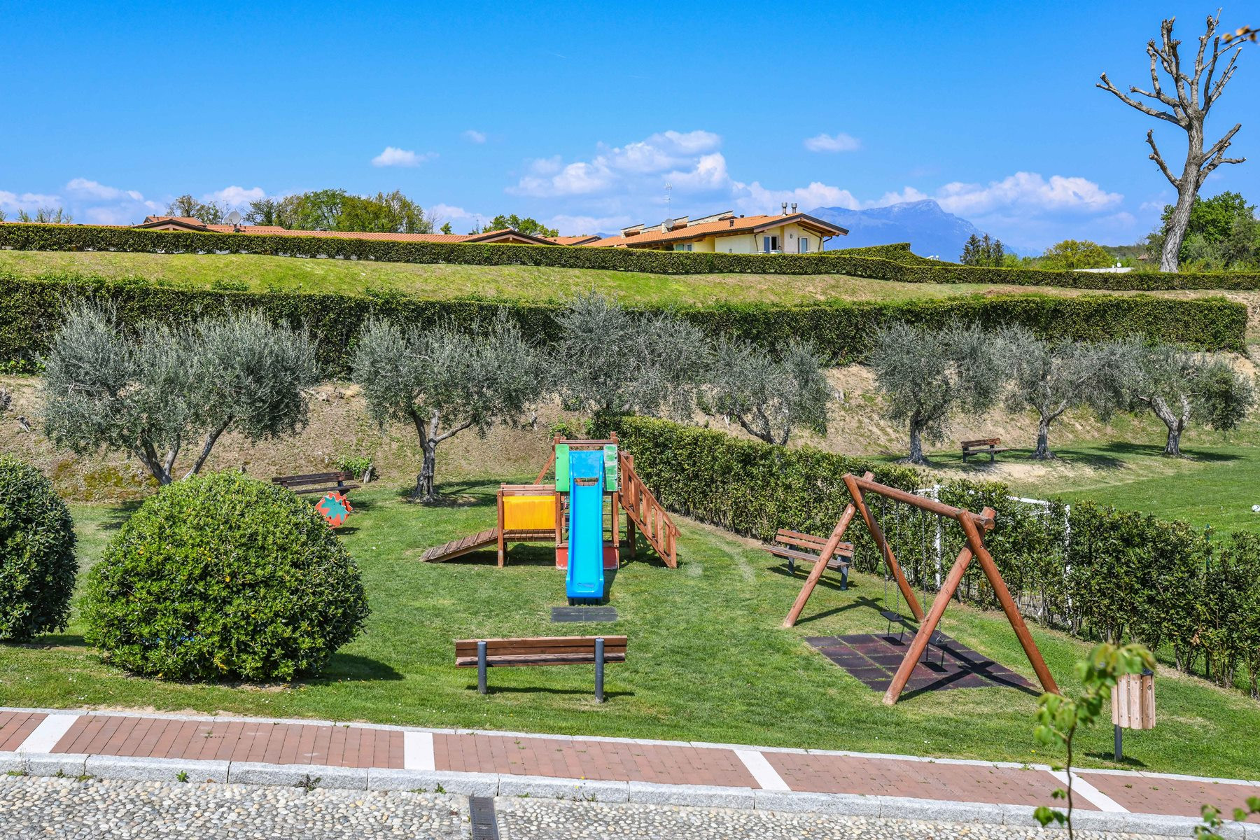 Kontakte in der Anlage zu knüpfen ist schwierig da es sich hier überwiegend um italienische Eigentümer der einzelnen Wohnungen handelt.