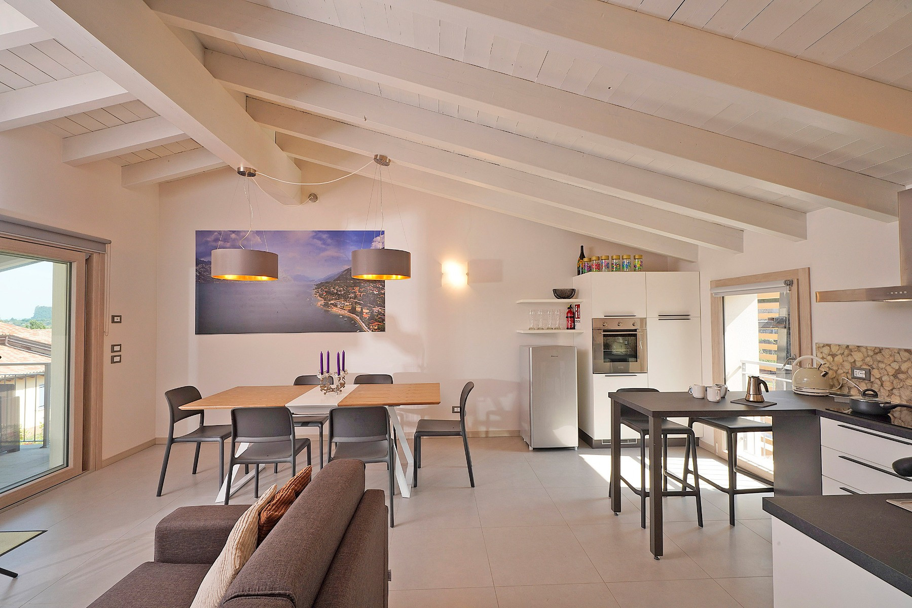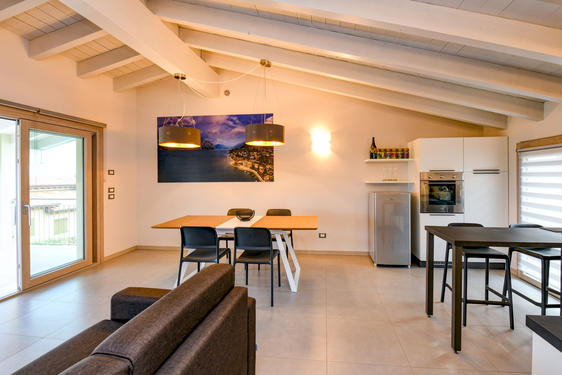 Znajduje się w pobliżu 400 m plaży skalistej "La Romantica", 400 m od jeziora "lago di Garda", 500 m supermarkecie, 2 km miasta "Manerba del garda", 4 km polu golfowym "Garda Golf Soiano del Garda", 15 km dworca kolejowego "Desenzano del Garda", 25 km od źródła termalnego "Sirmione", 35 km parku rozrywki / parku tematycznego "Gardaland", 38 km parku rozrywki / parku tematycznego "Movieland", 38 km parku wodnego "Canevaworld", 40 km od parku przyrody "Parco Giardino Sigurtà", 40 km miasta "Brescia", 50 km lotniska "Valerio Catullo Verona", 60 km miasta "Verona", 70 km miasta "Mantova", 85 km lotniska "Orio al Serio Bergamo", 125 km miasta "Milano", 165 km miasta "Venezia" i Znajduje się w idealnej dla rodzin strefa i w kompleksie mieszkaniowym.