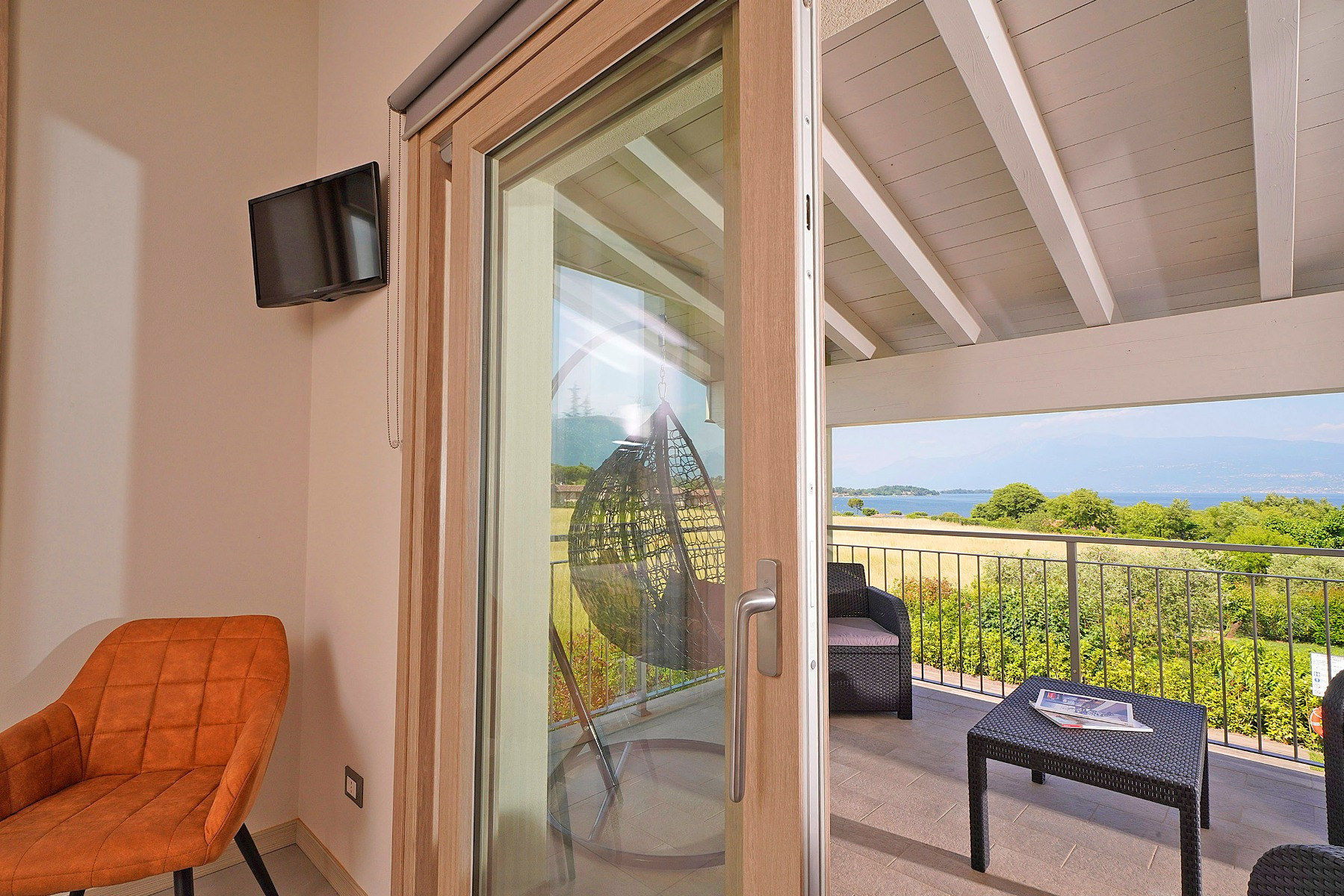 Sehr schöne Aussicht auf den See, bei überdachtem Balkon auch bei Hitze oder Regen nutzbar.