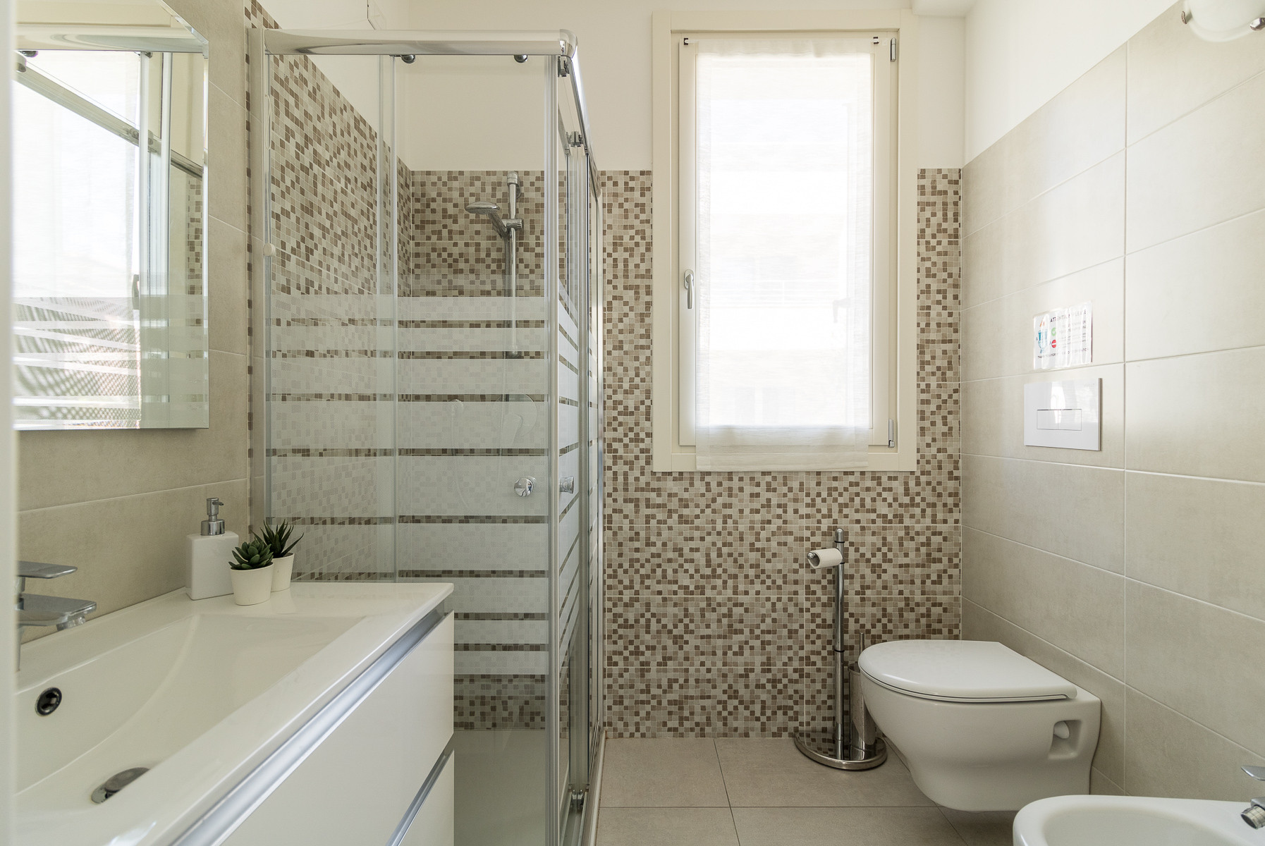 Im Vergleich zum Rest der Ferienwohnung ist das Bad doch sehr klein, vor allem die Dusche.