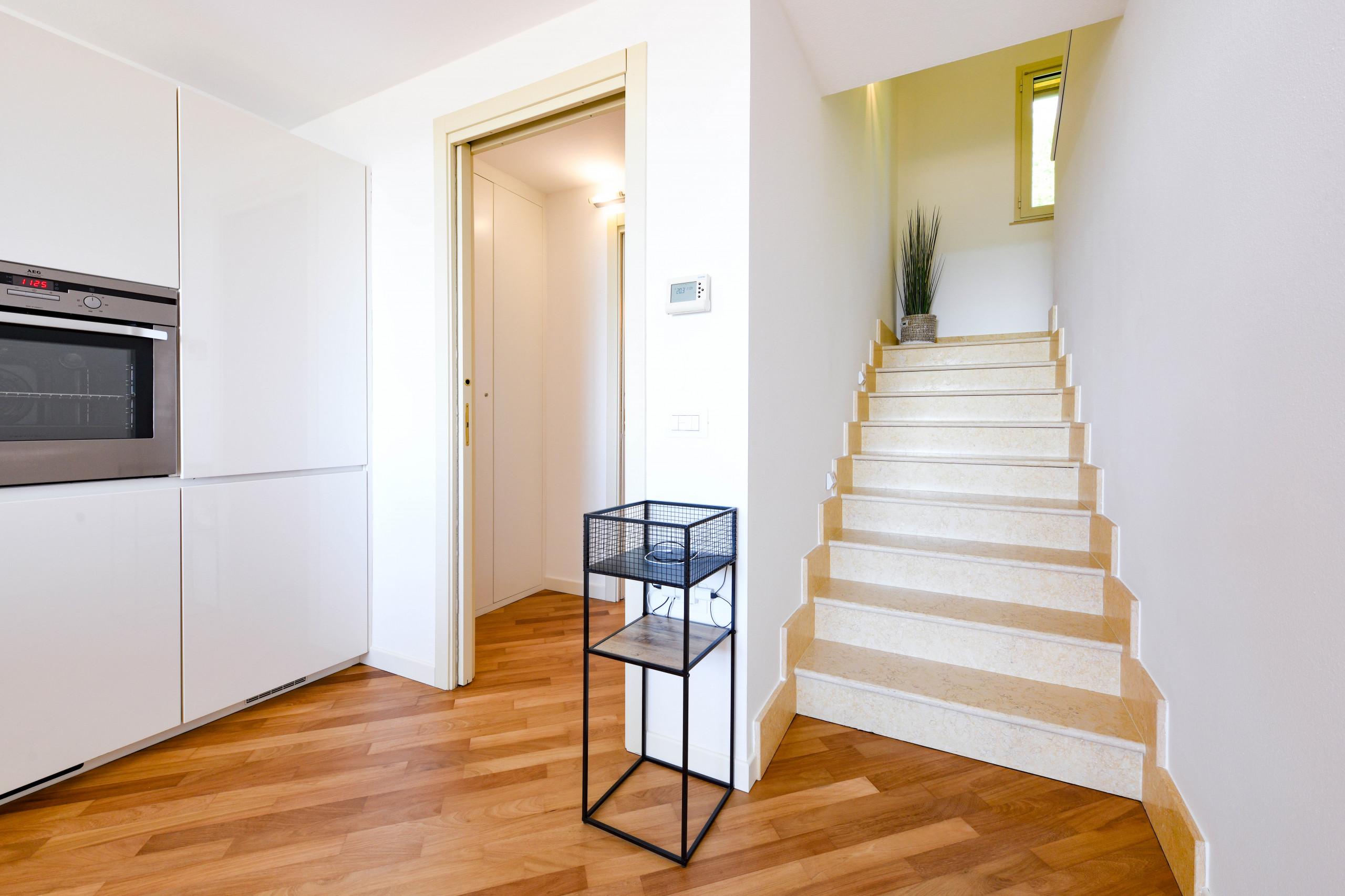 Die Wohnung selbst ist sehr großzügig, was das Raumangebot betrifft. Die Ausstattung ist vollumfänglich. Küchenutensilien sind ausreichend vorhanden, die Möbel sind hochwertig und der Blick vom Balkon Richtung Gardasee ist fantastisch. Praktisch ist auch - insbesondere bei Ankunft und Abreise - der vor der Wohnung befindliche Aufzug. |