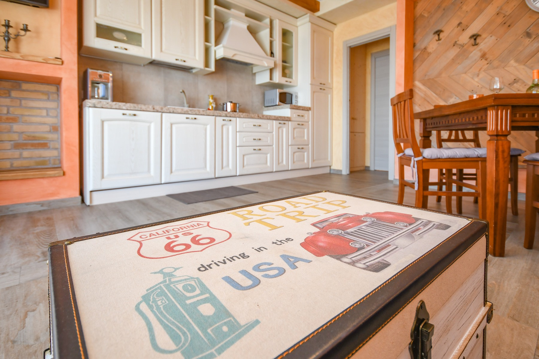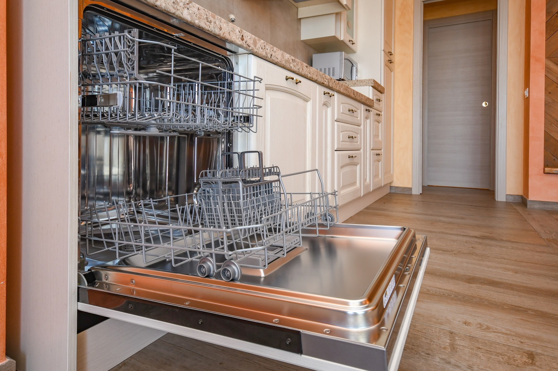 Kuchnia otwarta od płyta indukcyjna, jest wyposażone w chłodziarka, mikrofalówka, zamrażarka, zmywarka, naczynia/sztućce, ekspres do kawy, opiekacz/toster i czajnik.