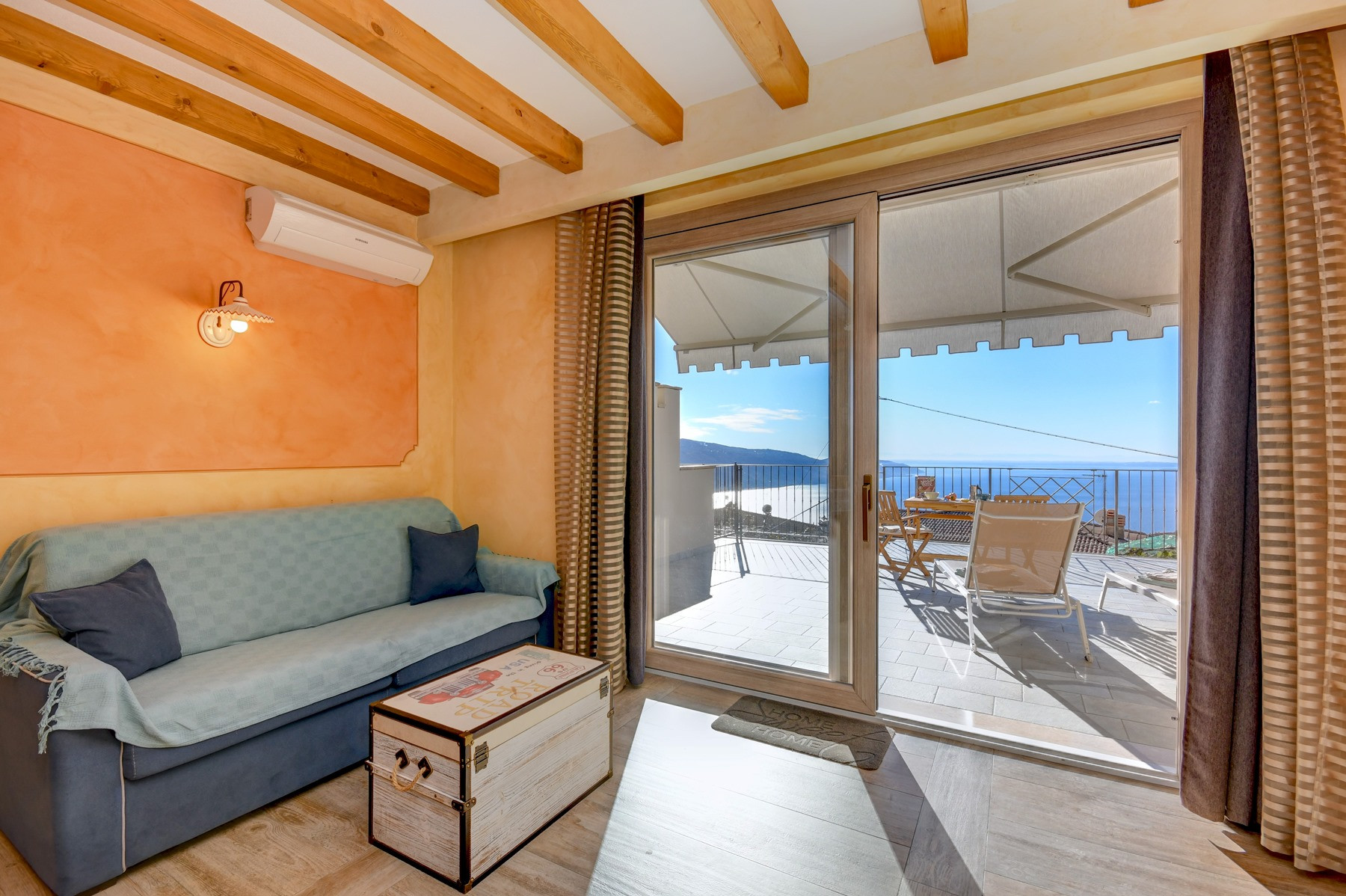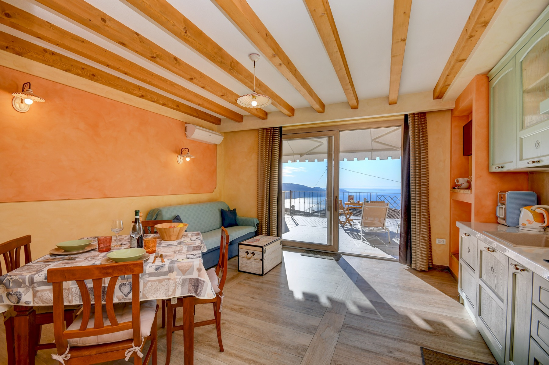 Die Wohnung war mit viel Liebe zum Detail gestaltet, sehr sauber, mit allem ausgestattet, was man braucht (außer einem Backofen), die Terrasse ist riesig, der Ausblick jeden Tag aufs Neue wunderschön, so dass man hier gerne Zeit verbringt! Die Gastgeber heißen einen persönlich willkommen und führen zur Wohnung, sind super freundlich und sehr hilfsbereit, sprechen deutsch.