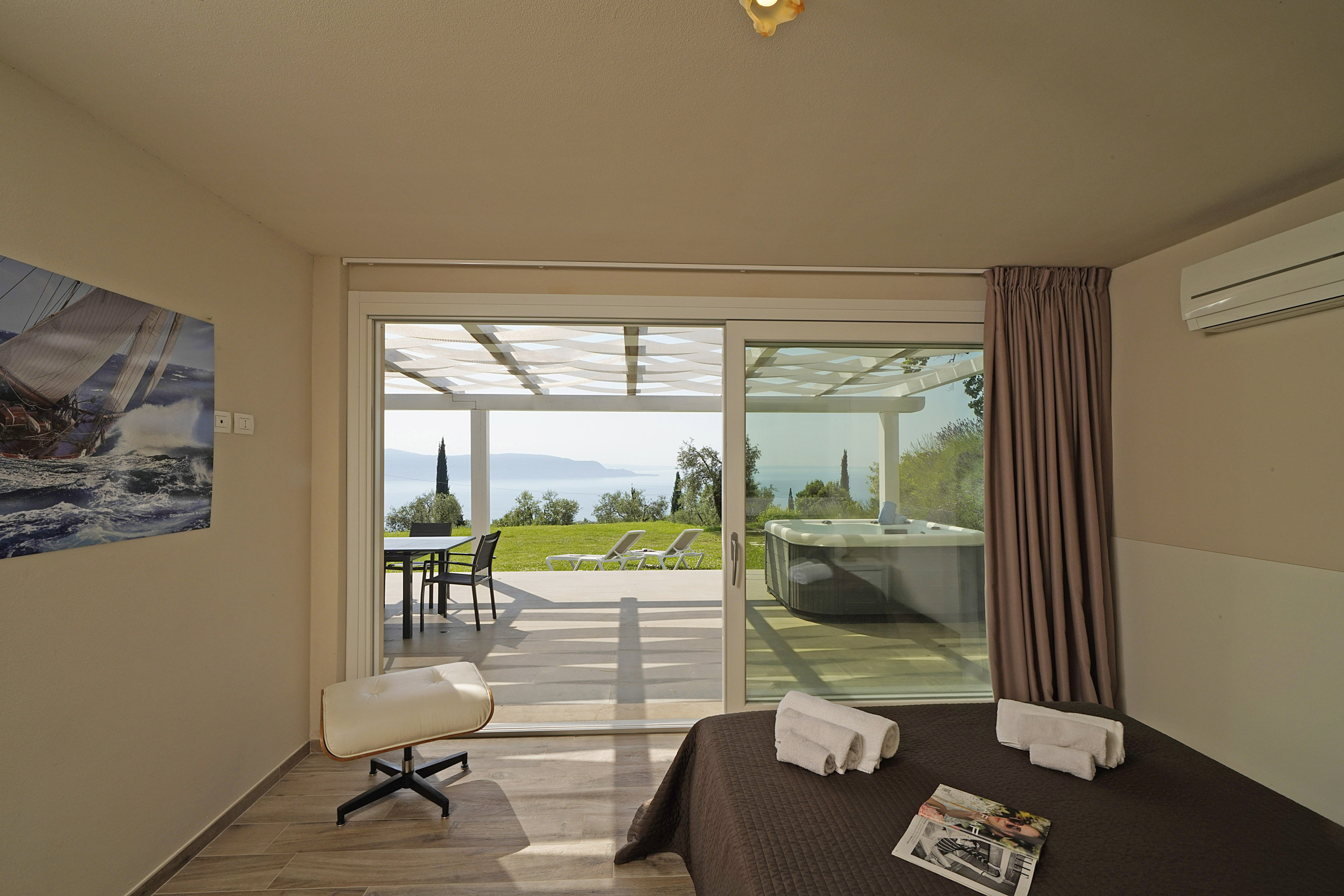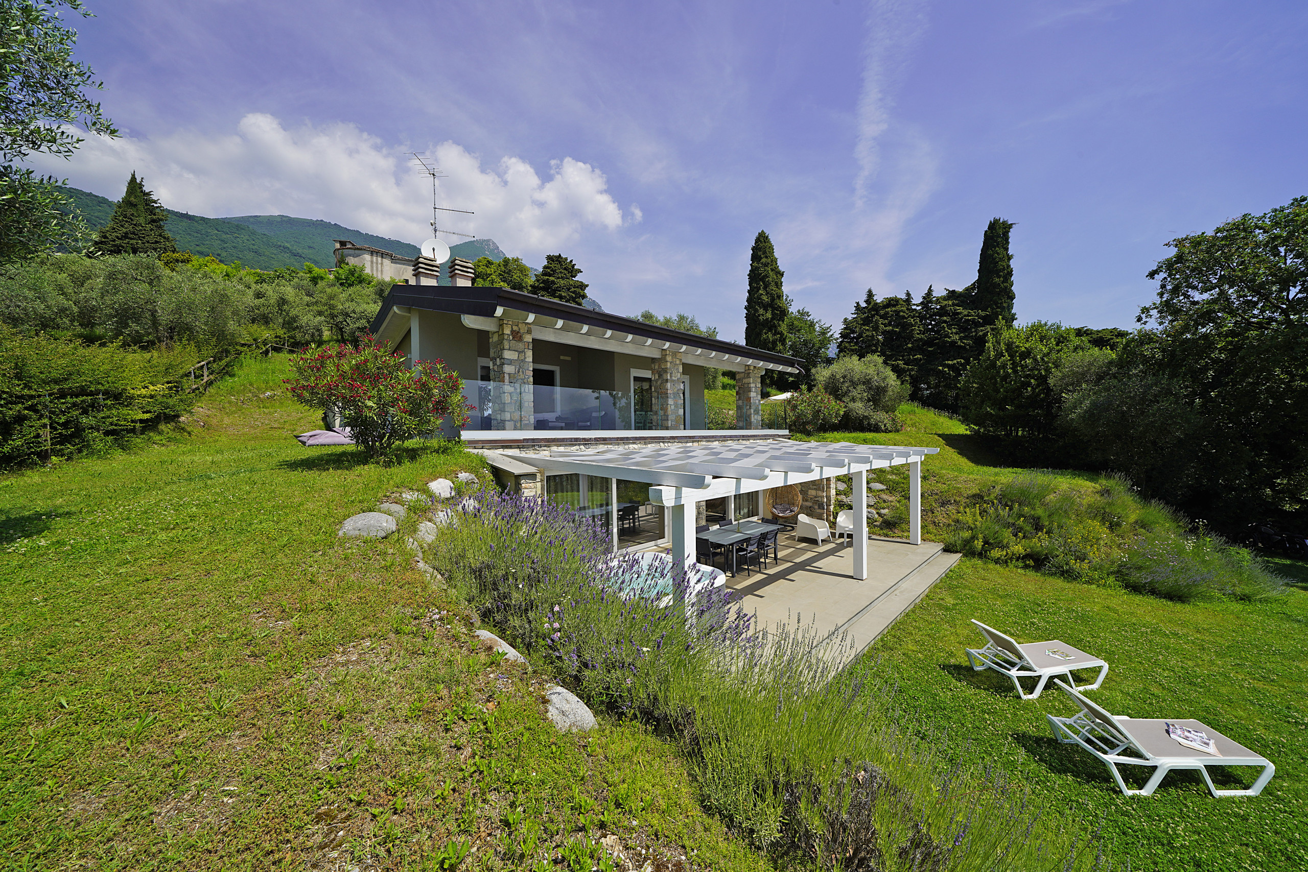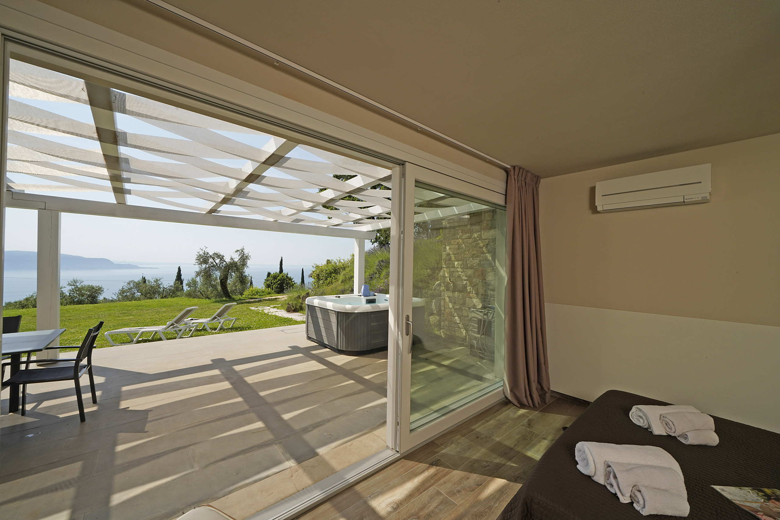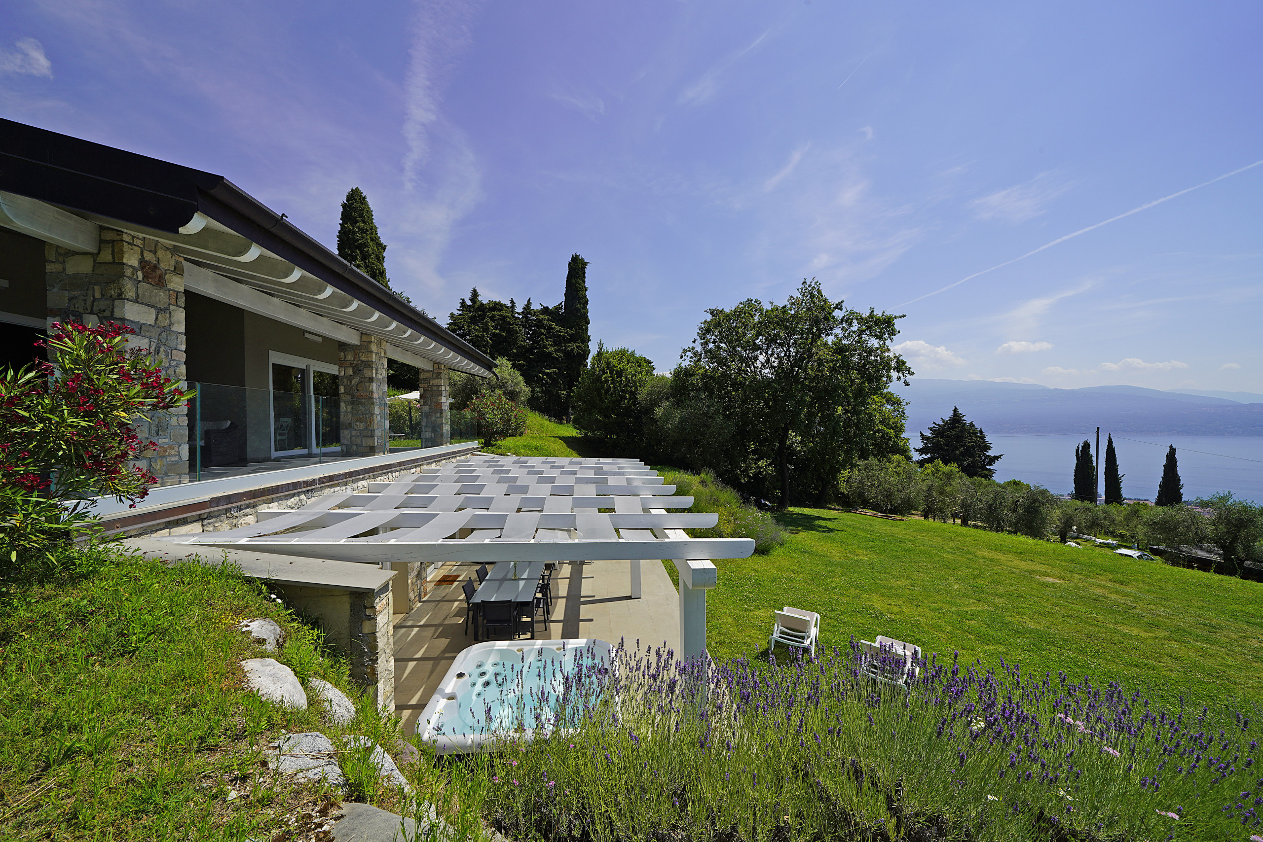 absolut ruhige Lage auf einem sehr großen Privatgrundstück mit Olivenbäumen und Säulenpinien, einzigartiger Blick über den Gardasee, modern eingerichtete Wohnung mit zwei sehr schönen Bädern, drei Schlafzimmer davon eins mit Seeblick aus dem Bett, eigener Whirlpool auf der Terrasse... wir haben uns sehr wohlgefühlt!!