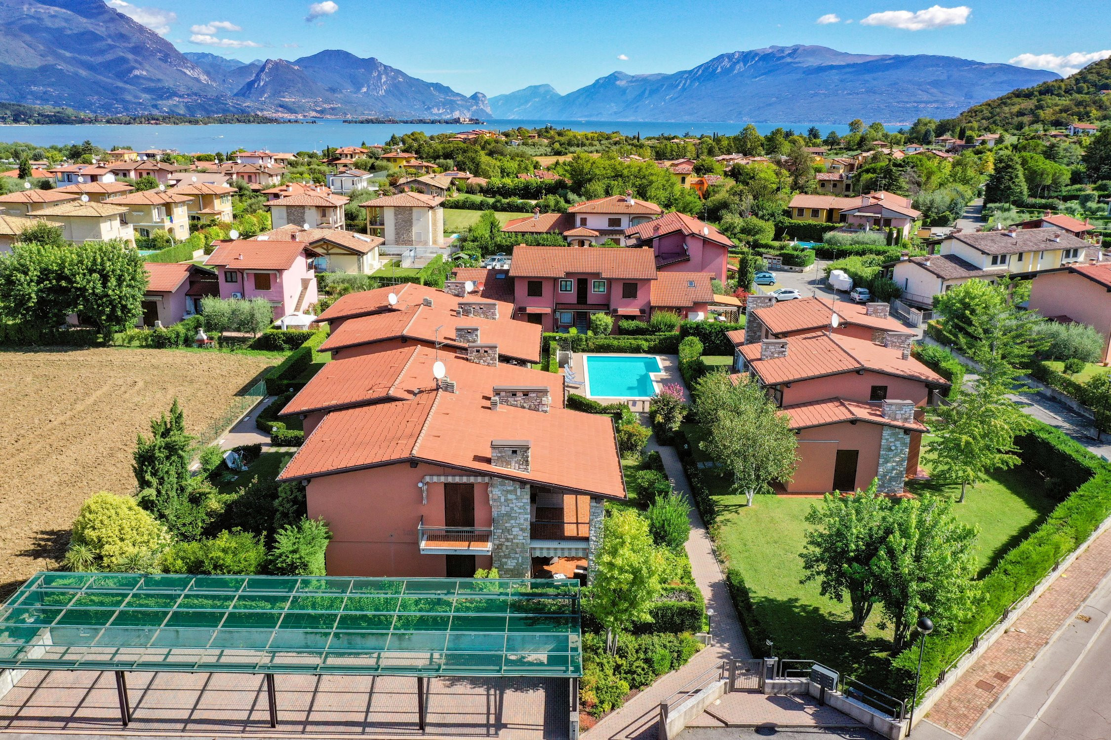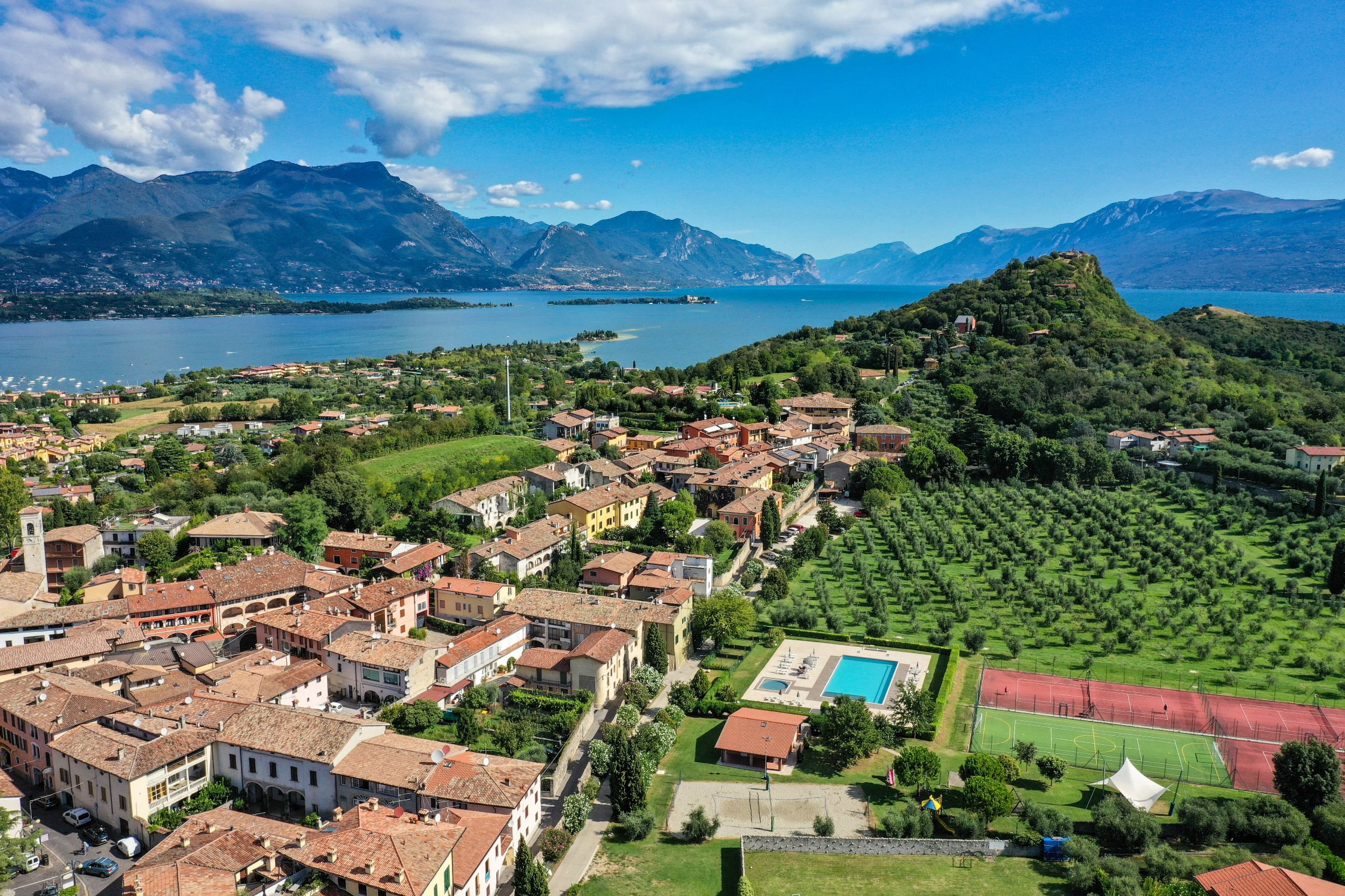 Znajduje się w pobliżu 500 m supermarkecie, 1 km miasta "Manerba del Garda", 1 km od jeziora "Lago di Garda", 2 km plaży skalistej "Porto Torchio", 6 km polu golfowym "Garda Golf Soiano del Lago", 15 km dworca kolejowego "Desenzano del Garda", 30 km od źródła termalnego "Sirmione", 35 km parku rozrywki / parku tematycznego "Gardaland", 38 km parku rozrywki / parku tematycznego "Movieland", 38 km parku wodnego "Canevaworld", 40 km od parku przyrody "Parco Giardino Sigurtà", 40 km miasta "Brescia", 50 km lotniska "Valerio Catullo - Verona", 55 km miasta "Verona", 80 km miasta "Mantova", 85 km lotniska "Orio al serio - Bergamo", 130 km miasta "Milano", 170 km miasta "Venezia" i Znajduje się w idealnej dla rodzin strefa i w kompleksie mieszkaniowym.