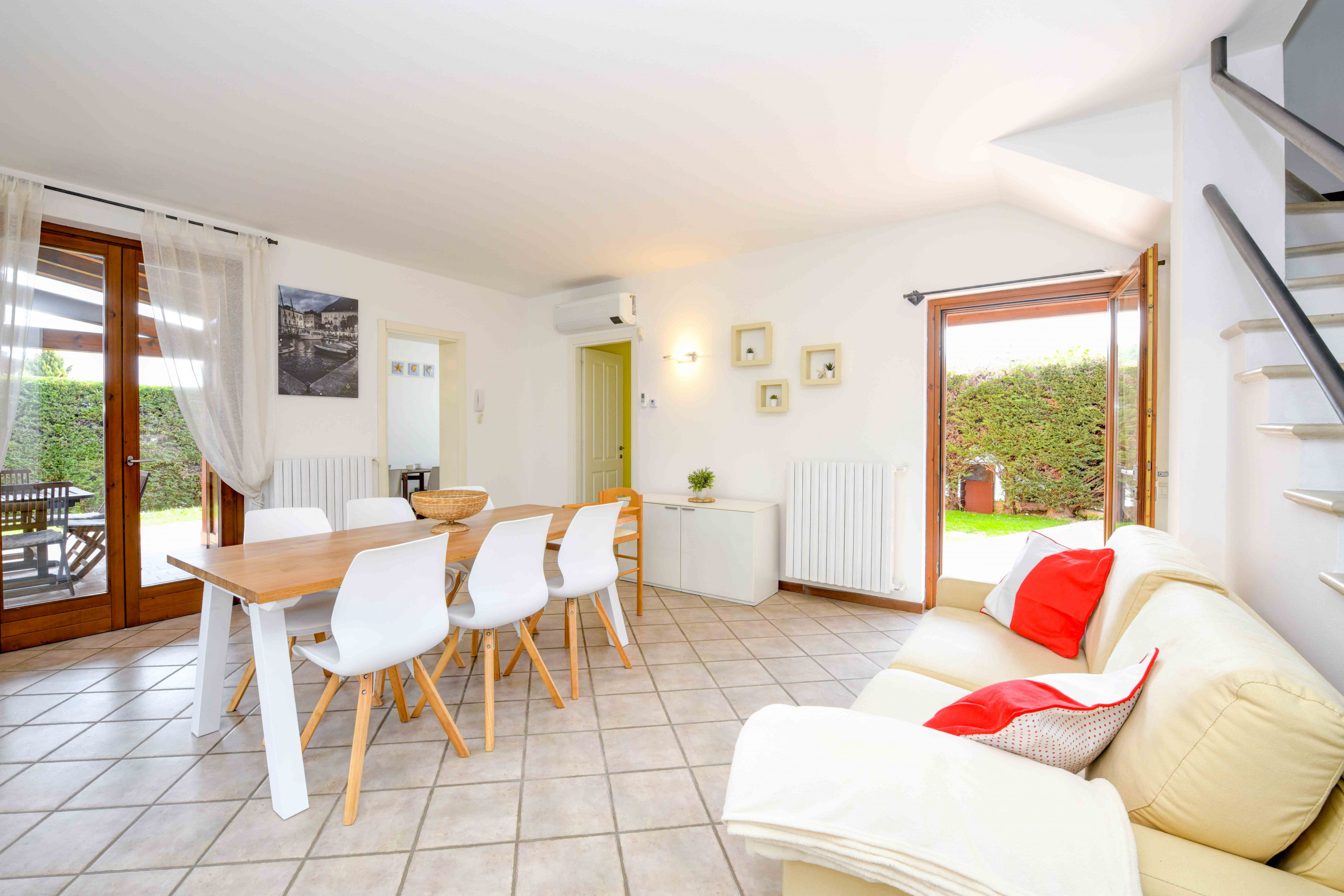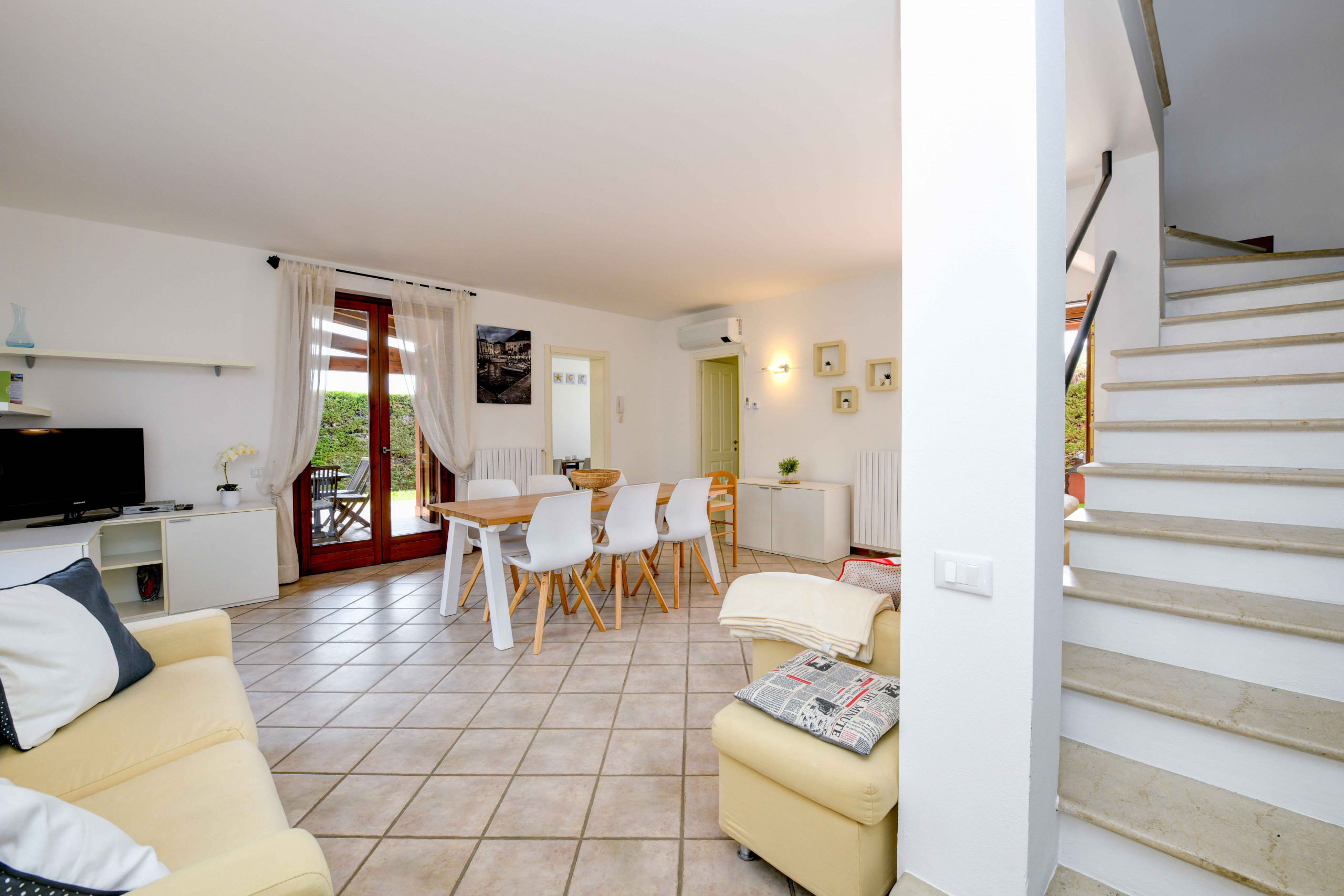 Wir reisten mit fünf Erwachsenen und zwei Kleinkindern. Das Haus bietet alles, was benötigt wird. Abgeschlossener eigener Parkplatz mit Platz für zwei PKWs befindet sich direkt am Haus. Ein großer ruhiger Terassenbereich, echter Rasen, Liegen, Grill für Holzkohle ec. Der Gemeinschaftspool hat eigene Duschen und ist gepflegt. Bei unserem Aufenthalt war er wenig frequentiert. Türe und Hecken grenzen den Bereich locker mit Lücken vom Garten ab. Die Zimmer sind ausreichend groß und modern möbliert. Der TV im Wohnzimmer empfängt deutsche Programme. In die Steckdosen passen Euro-Stecker. Die Küchenausstattung ist gut, Spülmaschine und Gasherd, Wasserkocher, Kaffeemaschine, Kühl- und Gefrierschrank und auch Mikrowelle sind vorhanden (Keine Gewürze). Die beiden Essplätze innen und außen reichen bequem für 8 Personen. Die Gastgeber sprechen deutsch und waren sehr hilfsbereit und auch per WhatsApp schnell erreichbar. Auch eine spontane Verlängerung wurde unkompliziert geregelt. Wir können Anna&Cristina als Gastgeber sehr empfehlen. |