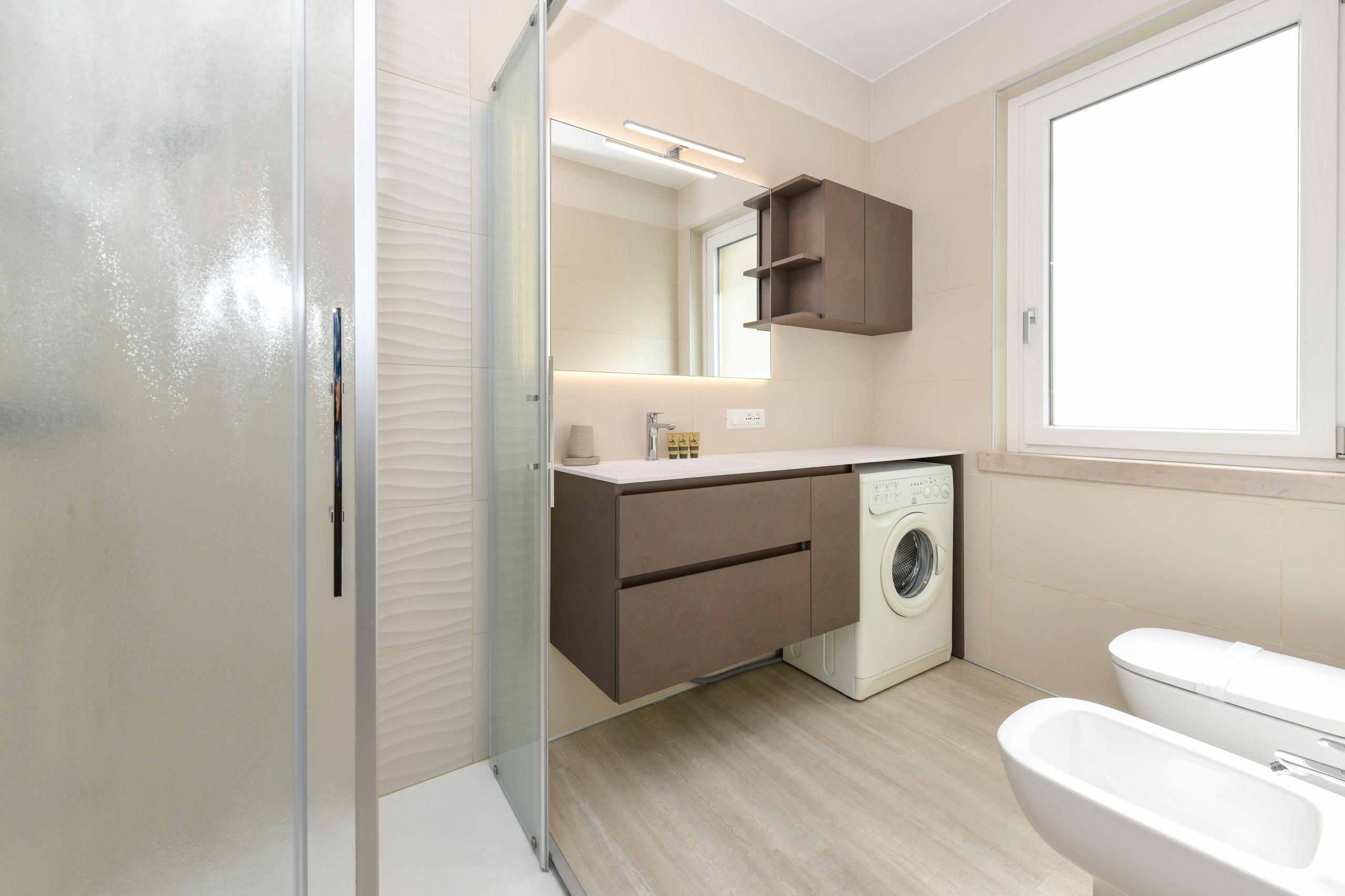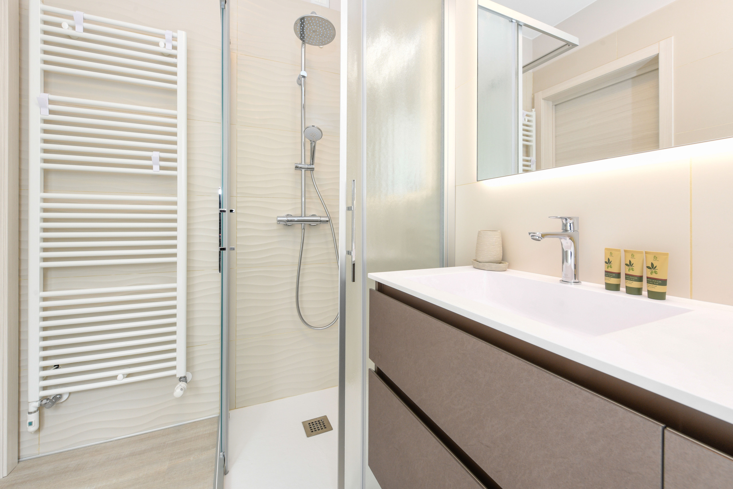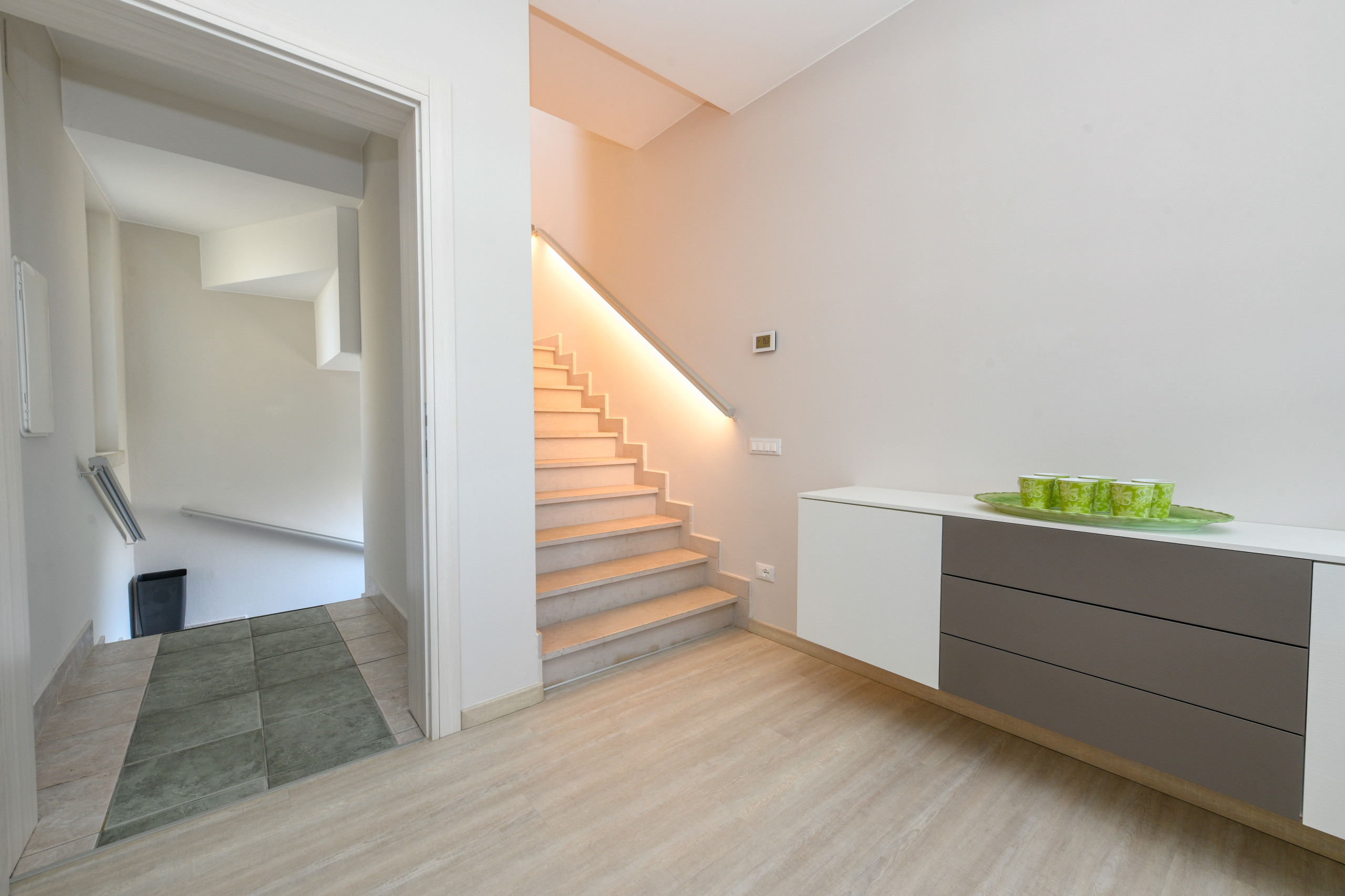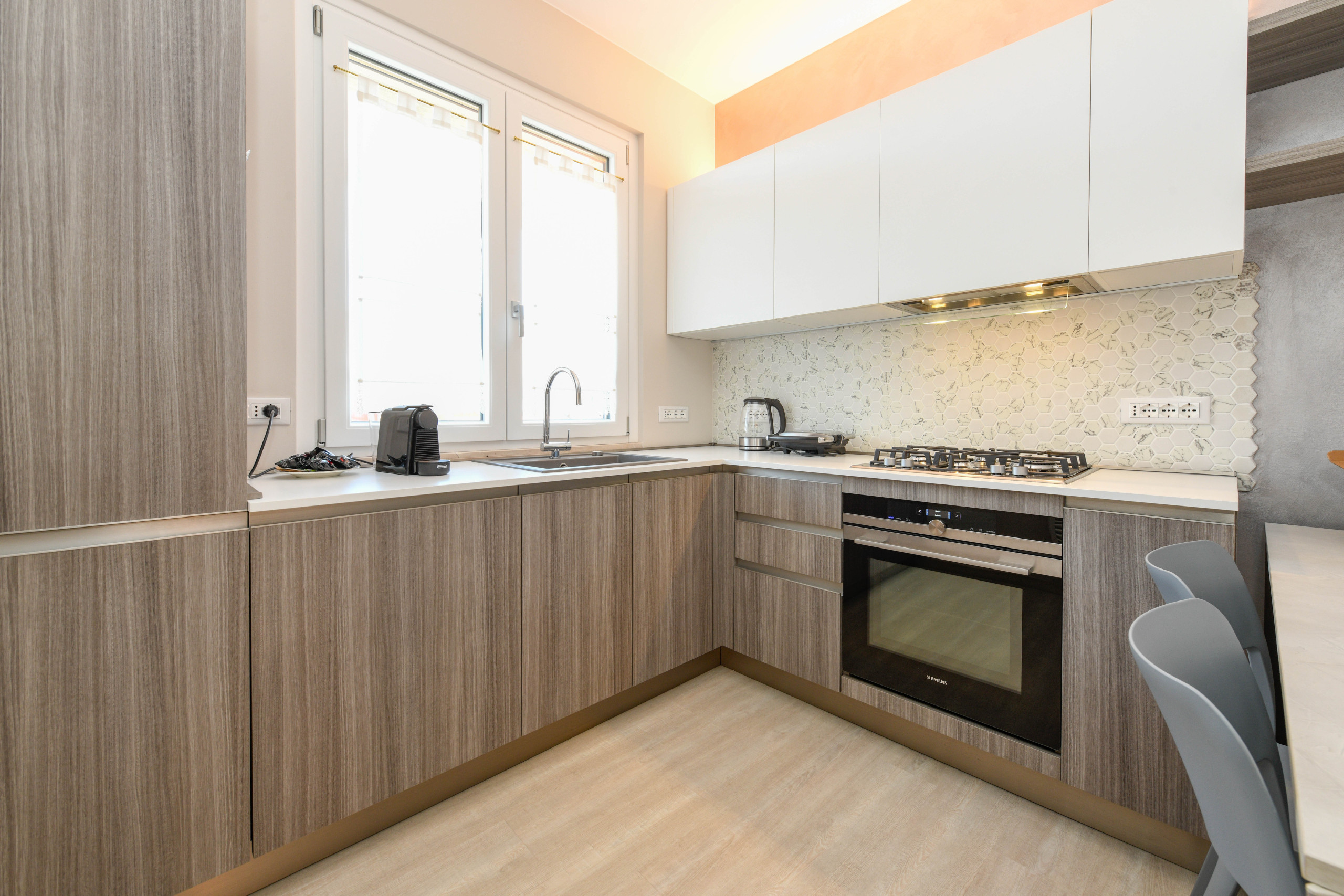 Apartament H2O jest jasny, przestronny i elegancko urządzony, stworzony z myślą o zaspokojeniu wszelkich potrzeb komfortu. Wnętrze jest przytulne, ciepłe i wyrafinowane, z nowoczesnymi pokojami wyposażonymi we wszystkie niezbędne udogodnienia dla pobytu pełnego praktyczności i dobrego samopoczucia. Każdy kąt apartamentu został zaprojektowany, aby zapewnić przyjemne i relaksujące doświadczenie, z przestronnymi pomieszczeniami pozwalającymi cieszyć się chwilami spokoju w towarzystwie bliskich.