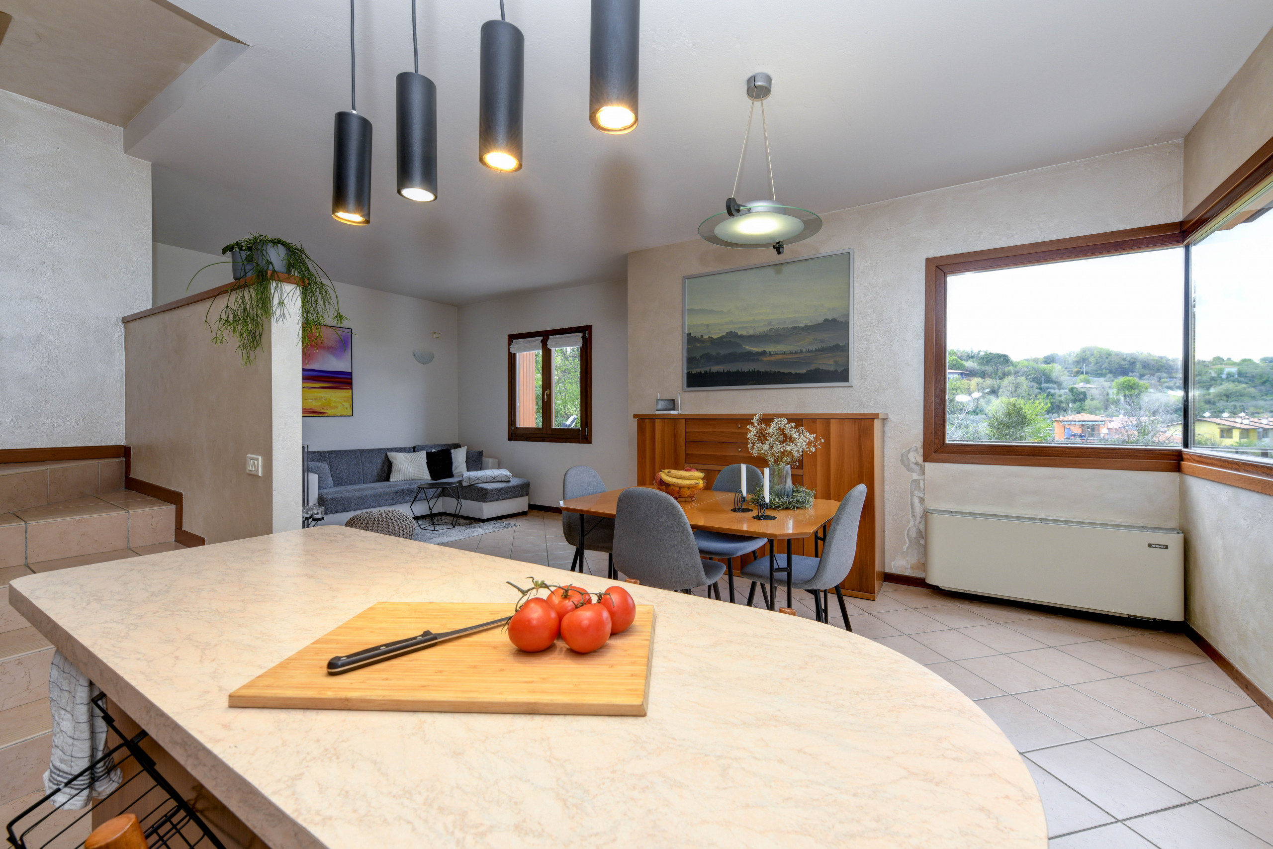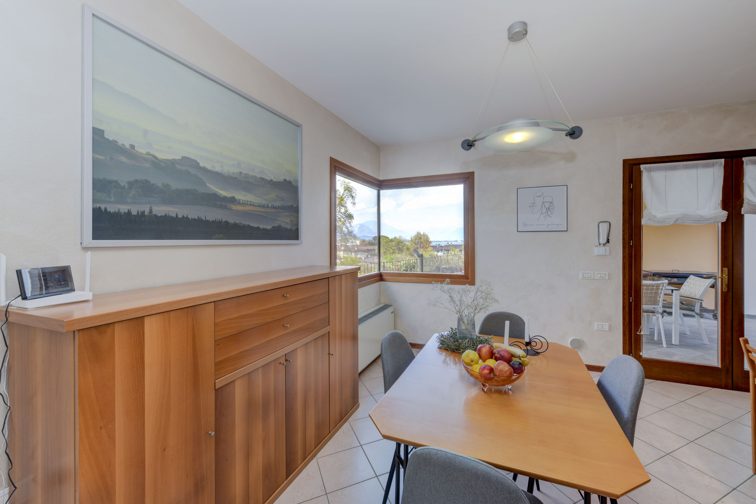 Znajduje się w pobliżu 300 m od rzeki "Rio d'avigo", 950 m plaży skalistej "Spiaggia la Romantica", 1 km supermarkecie "Eurospar", 1 km od jeziora "Lago di Garda", 2 km miasta "Manerba del Garda", 4 km polu golfowym "Garda Golf Soiano del Lago", 13 km dworca kolejowego "Desenzano del Garda", 27 km od źródła termalnego "Sirmione", 33 km parku rozrywki / parku tematycznego "Gardaland", 35 km parku rozrywki / parku tematycznego "Movieland", 35 km parku wodnego "Canevaworld", 40 km od parku przyrody "Parco Giardino Sigurtà", 40 km miasta "Brescia", 50 km lotniska "Valerio Catullo - Verona", 55 km miasta "Verona", 80 km miasta "Mantova", 85 km lotniska "Orio al serio - Bergamo", 120 km miasta "MIlano", 165 km miasta "Venezia" i Znajduje się w idealnej dla rodzin strefa i w otoczeniu lasu.