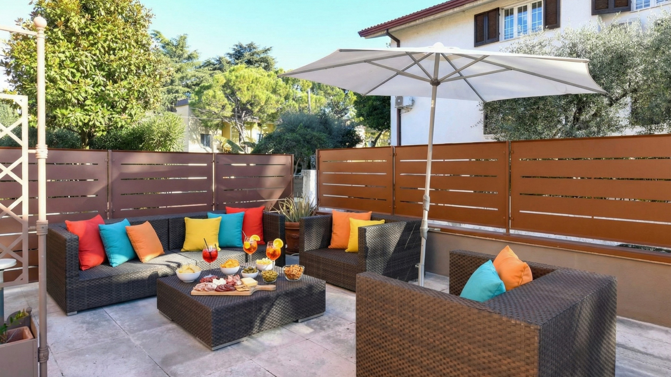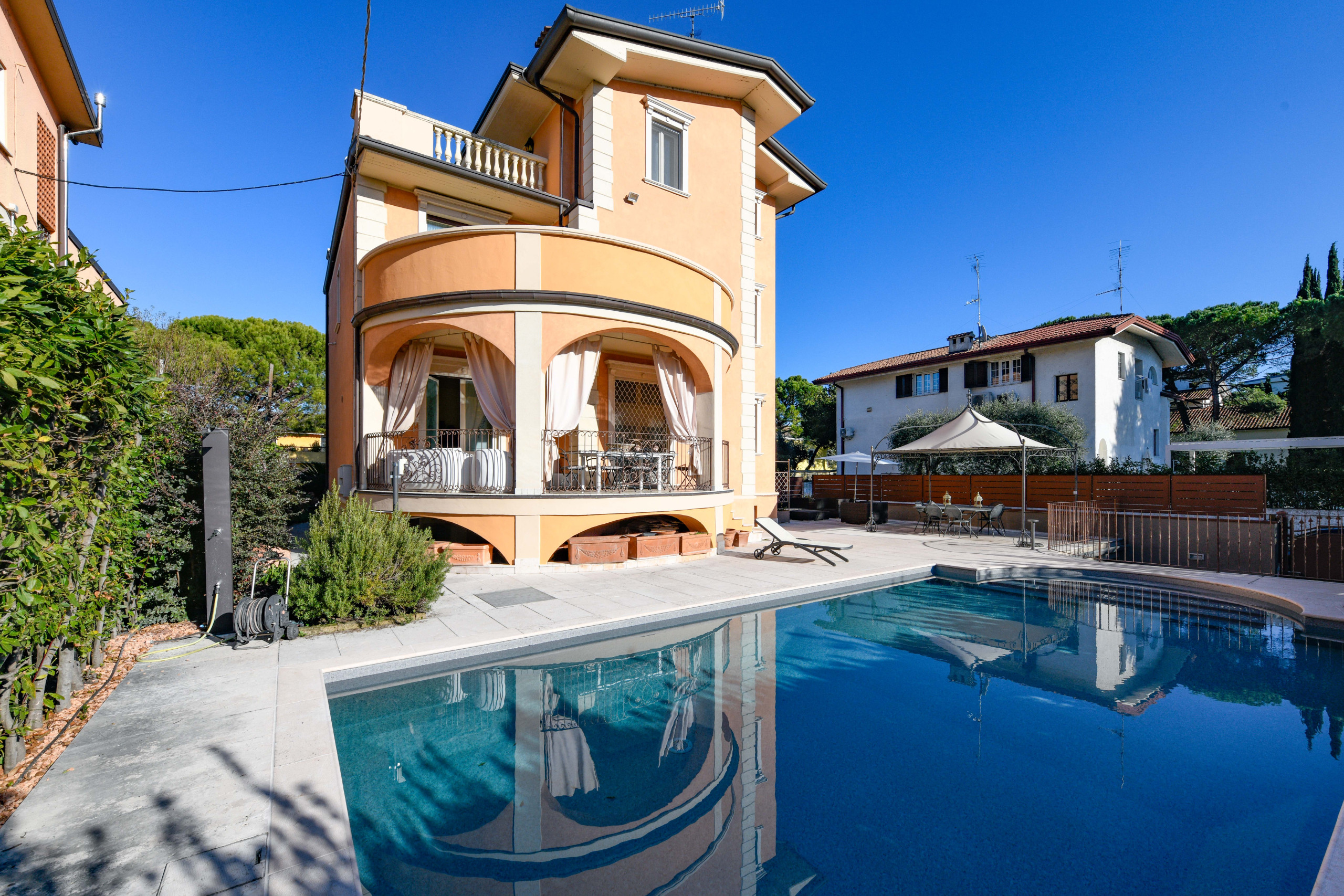 Otoczona starannie pielęgnowanym ogrodem, basenem z wodą słoną i z widokiem na wody Jeziora Garda, willa rozciąga się na trzech poziomach – z ostatnim piętrem poddasza – i jest w całości zarezerwowana dla gości, którzy korzystają z jej wyłącznego użytkowania przez cały czas pobytu.