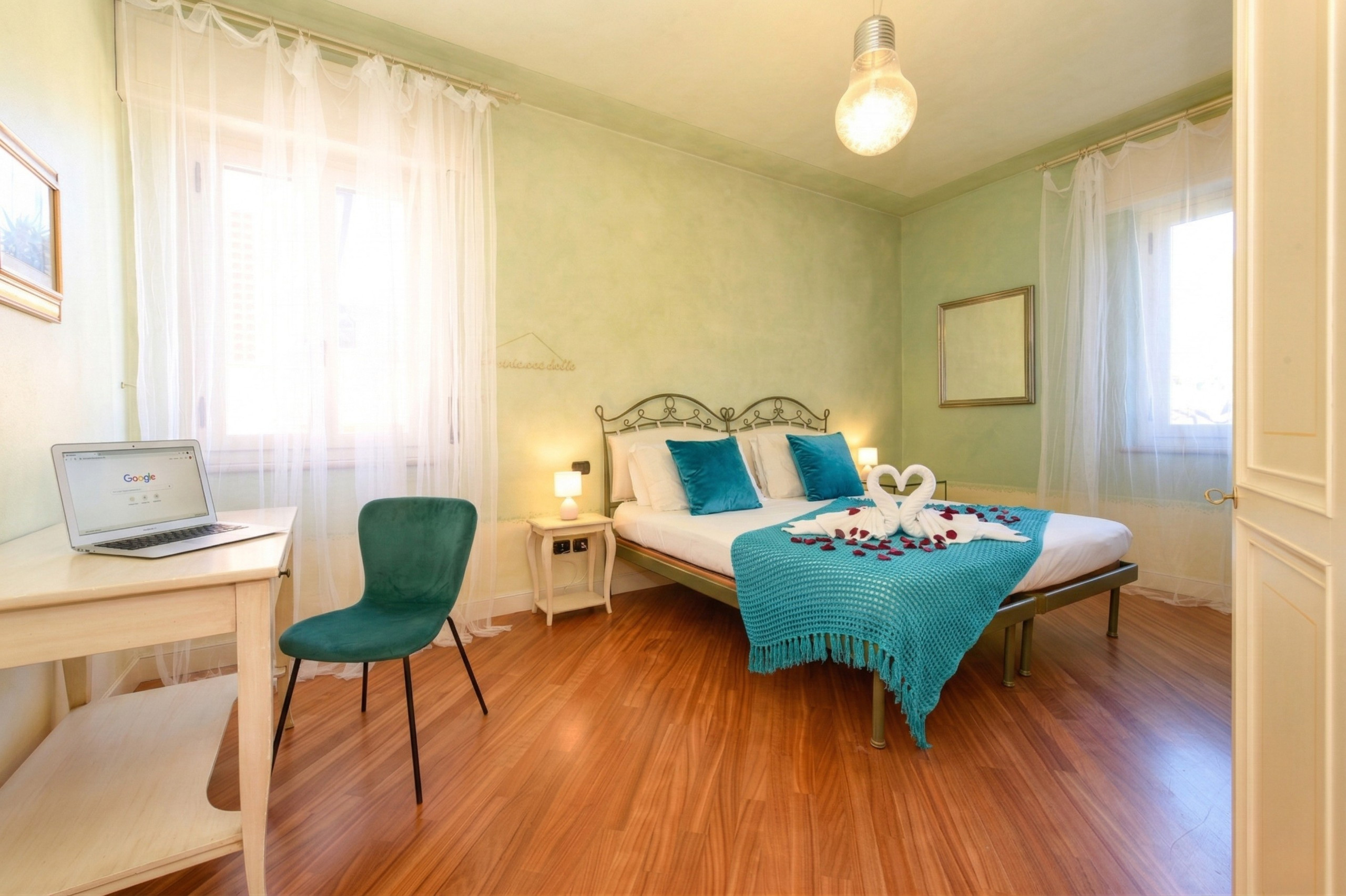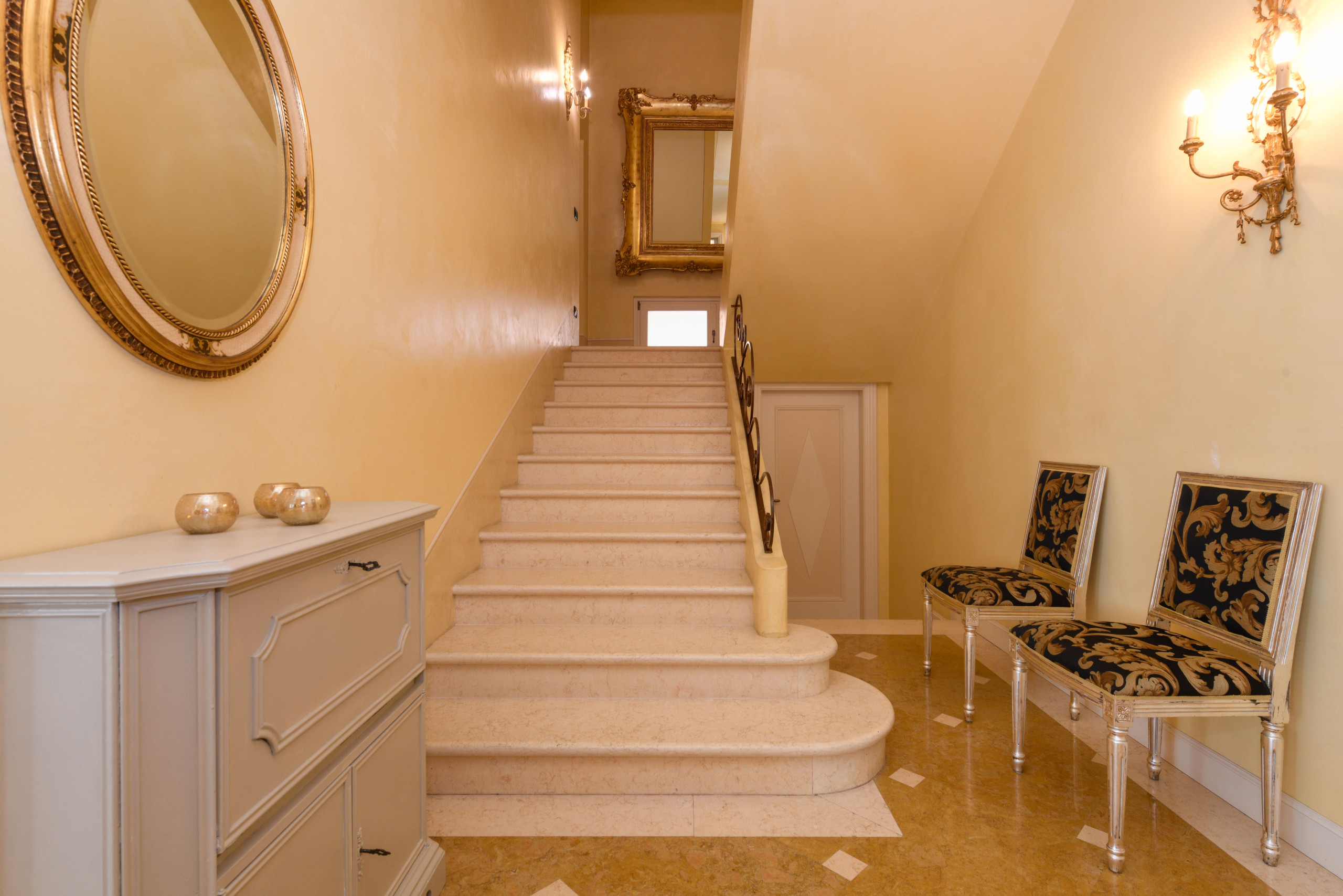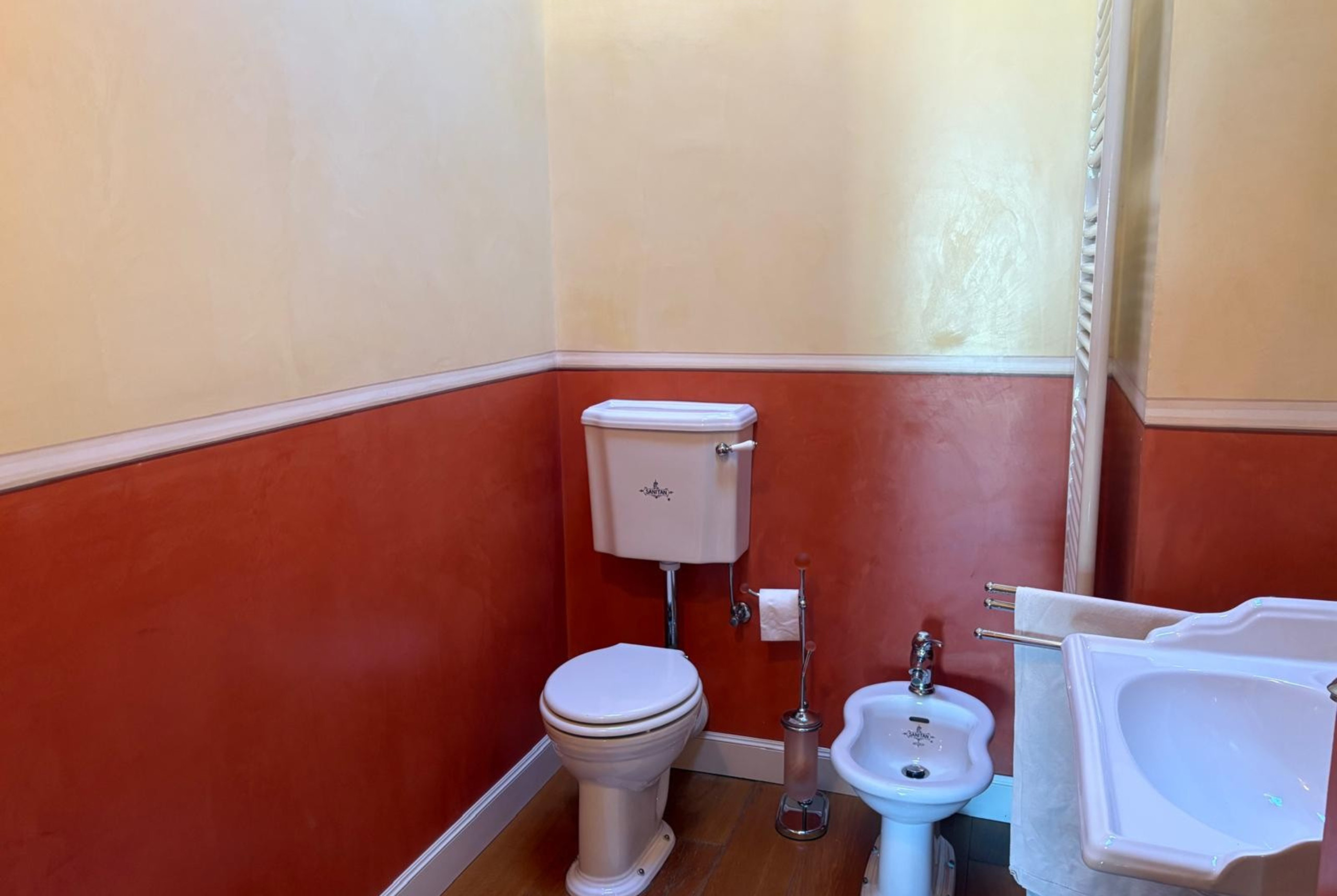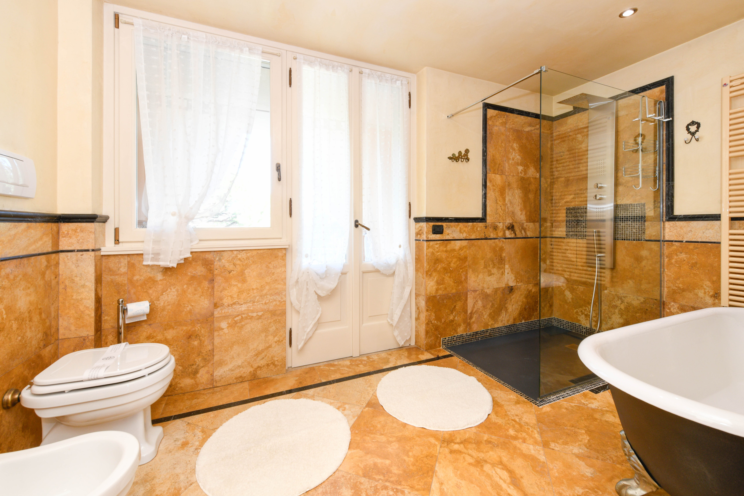 Pokój główny to eleganckie serce piętra: wyrafinowany fresk na suficie oprawia małżeńskie łoże i tworzy wyjątkową atmosferę, łącząc klasyczny urok z nowoczesnym komfortem, podczas gdy prywatna, obszerna i doskonale wyposażona łazienka oferuje podwójną umywalkę, prysznic walk-in i wspaniałą wannę idealną do chwili relaksu po dniu spędzonym wśród miasteczek, plaż i krajobrazów Garda. Z łazienki można również wyjść na zewnętrzny balkonik, idealny na poranną kawę lub delektowanie się ciszą wieczornych godzin.