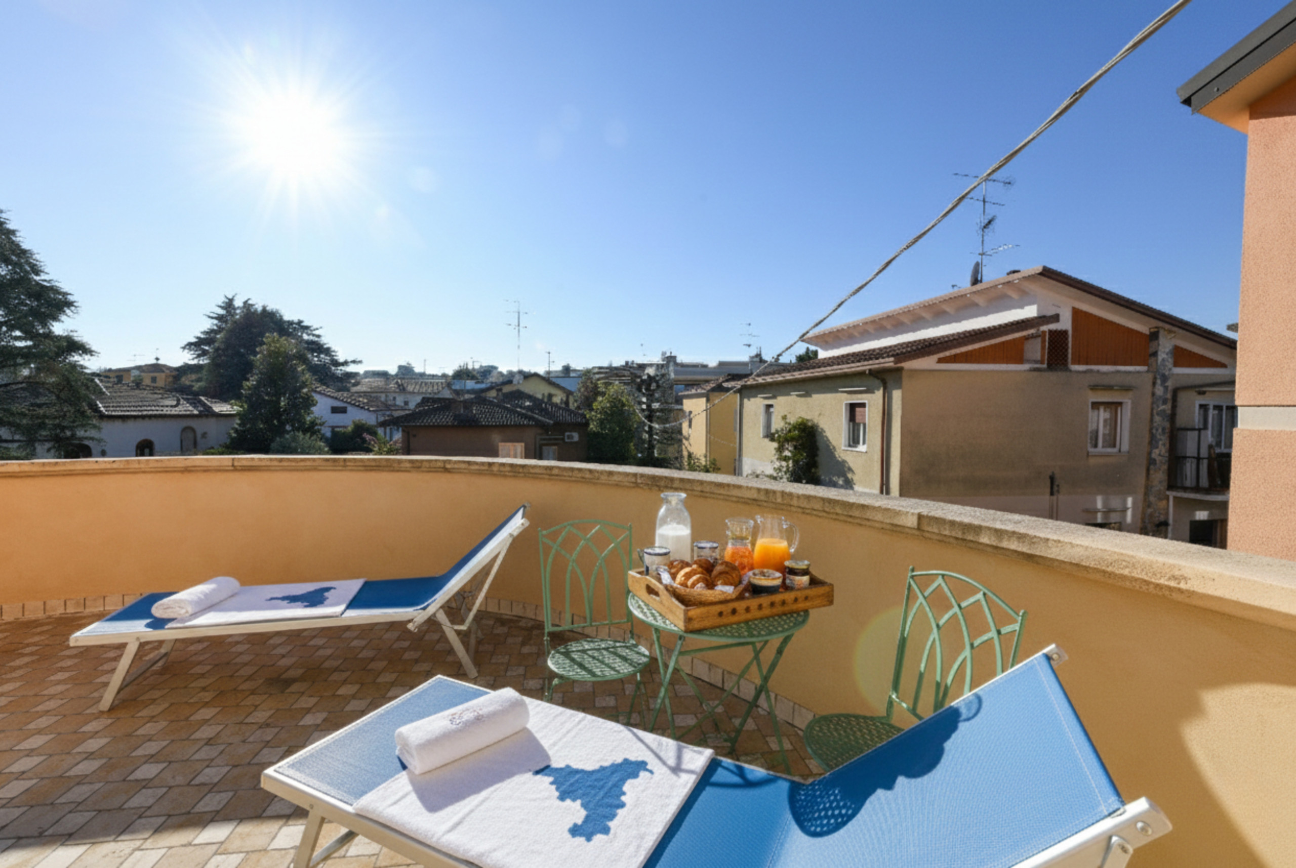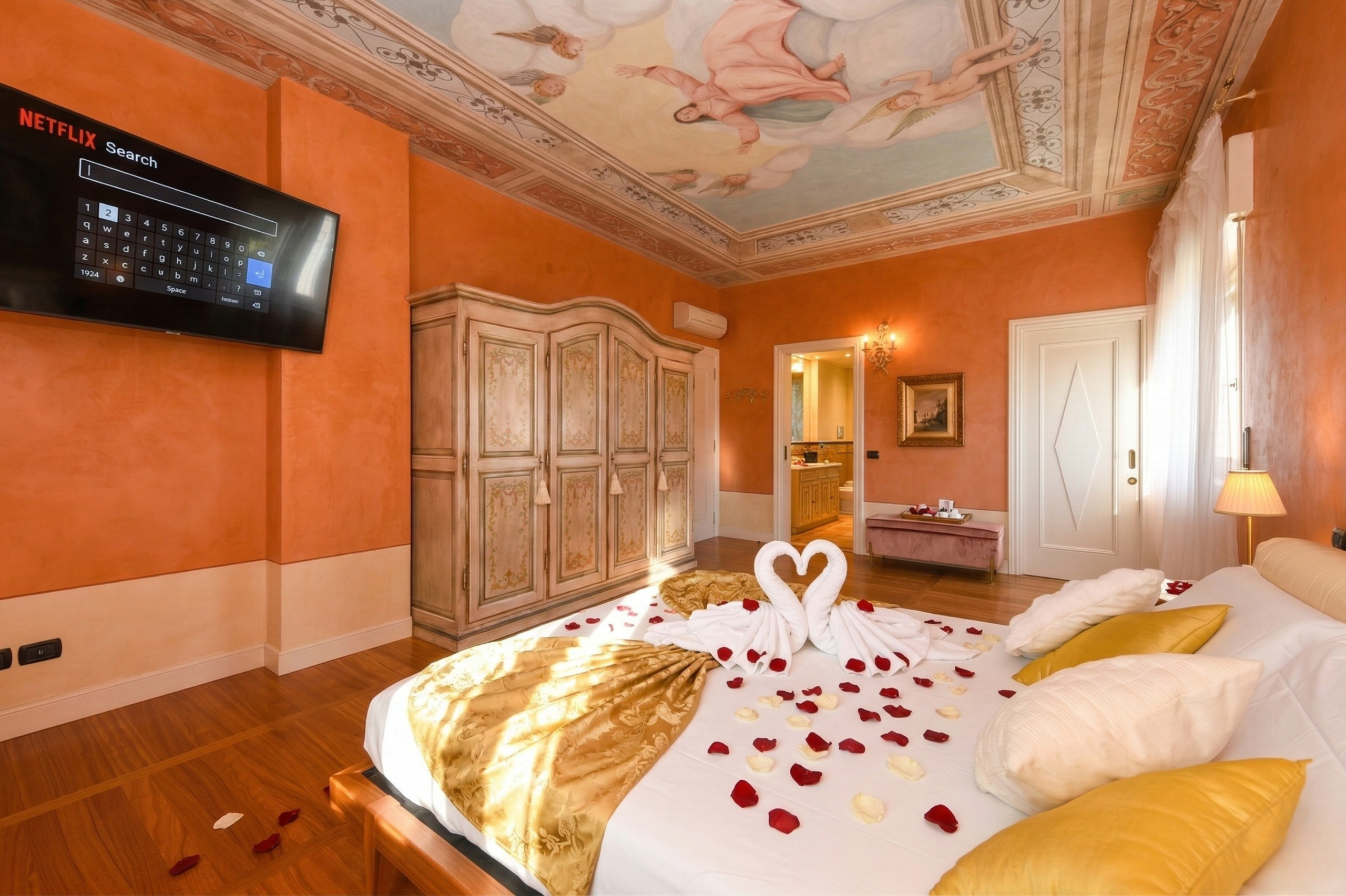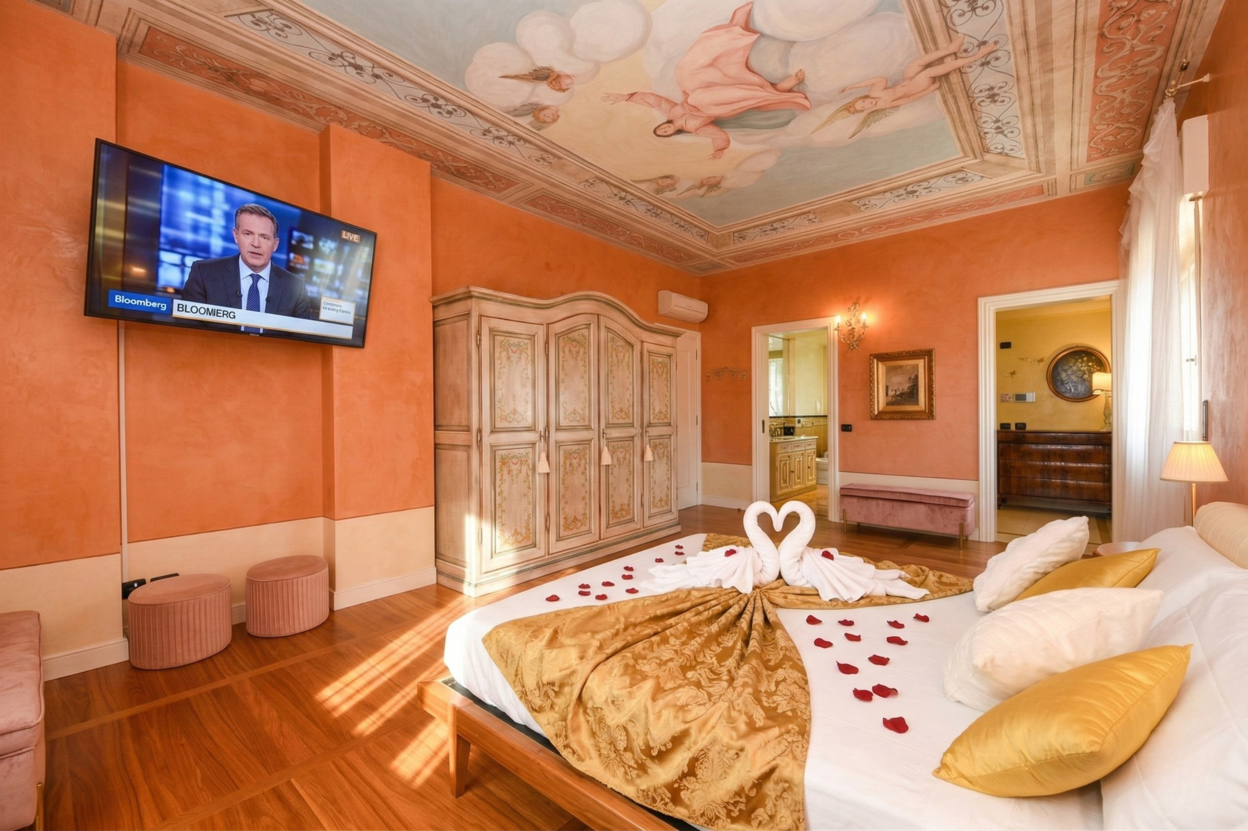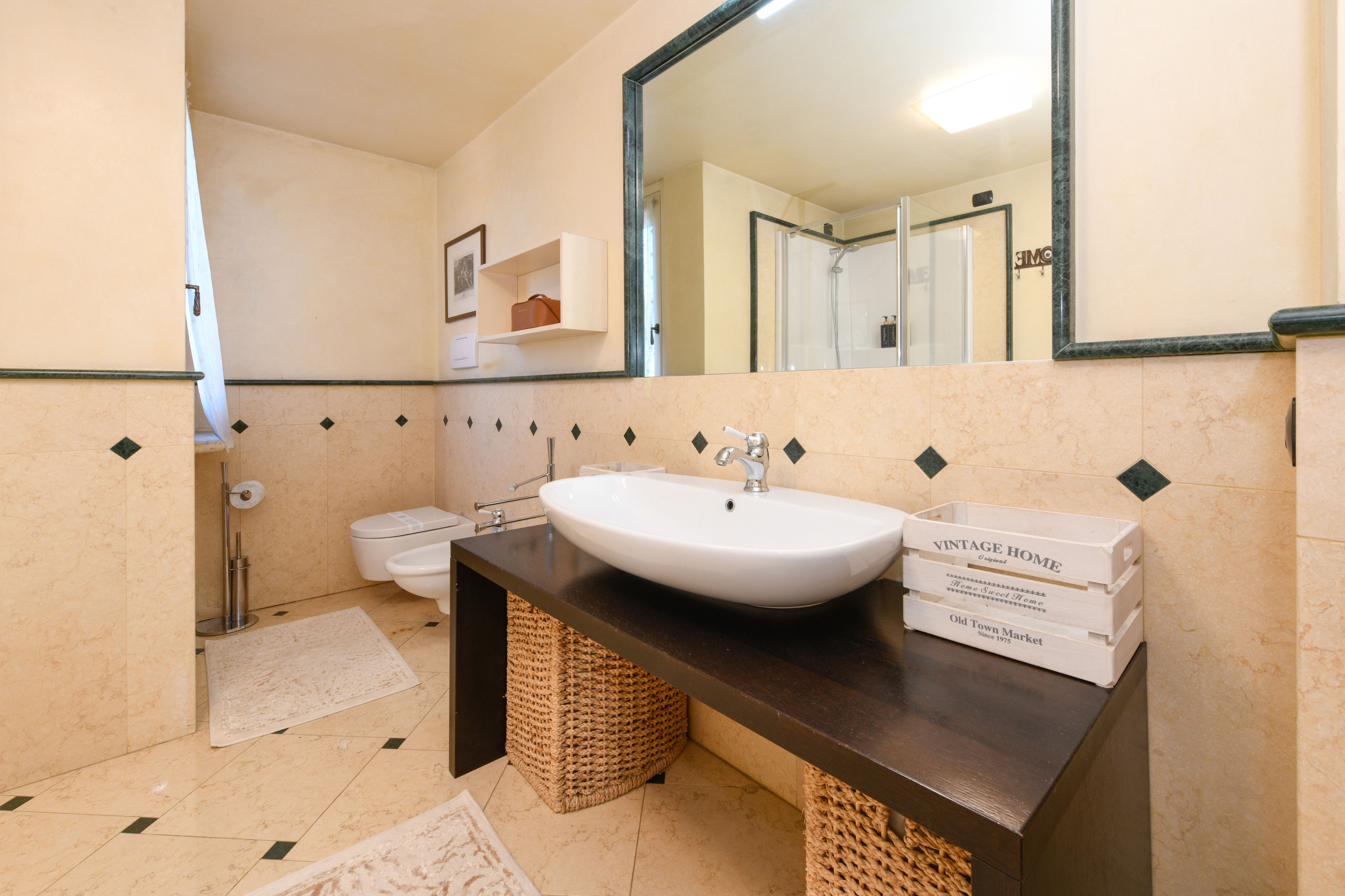 Pokój główny to eleganckie serce piętra: wyrafinowany fresk na suficie oprawia małżeńskie łoże i tworzy wyjątkową atmosferę, łącząc klasyczny urok z nowoczesnym komfortem, podczas gdy prywatna, obszerna i doskonale wyposażona łazienka oferuje podwójną umywalkę, prysznic walk-in i wspaniałą wannę idealną do chwili relaksu po dniu spędzonym wśród miasteczek, plaż i krajobrazów Garda. Z łazienki można również wyjść na zewnętrzny balkonik, idealny na poranną kawę lub delektowanie się ciszą wieczornych godzin.