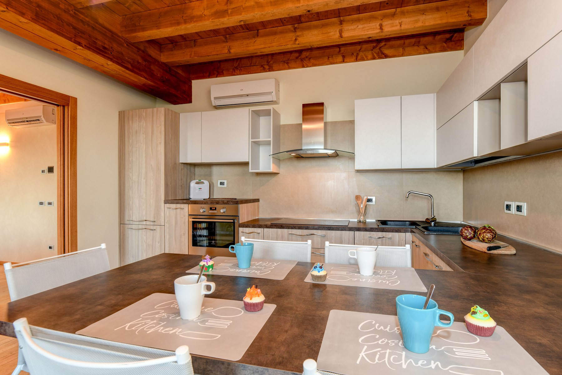 Moderne Einrichtung des Hauses - insbesondere die Küche ist sehr gut ausgestattet. Bequeme Betten sowie ein traumhafter Blick zum See.
