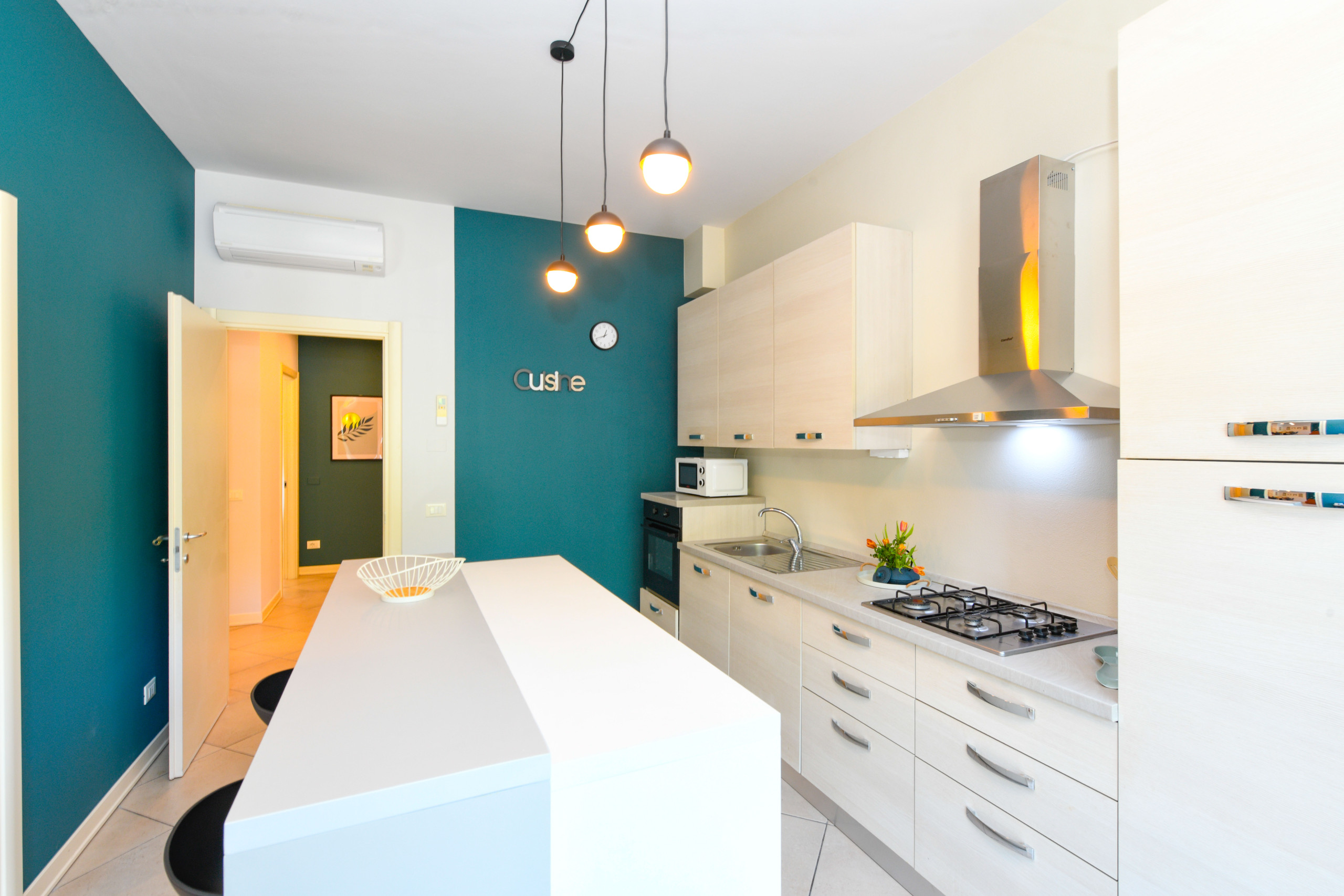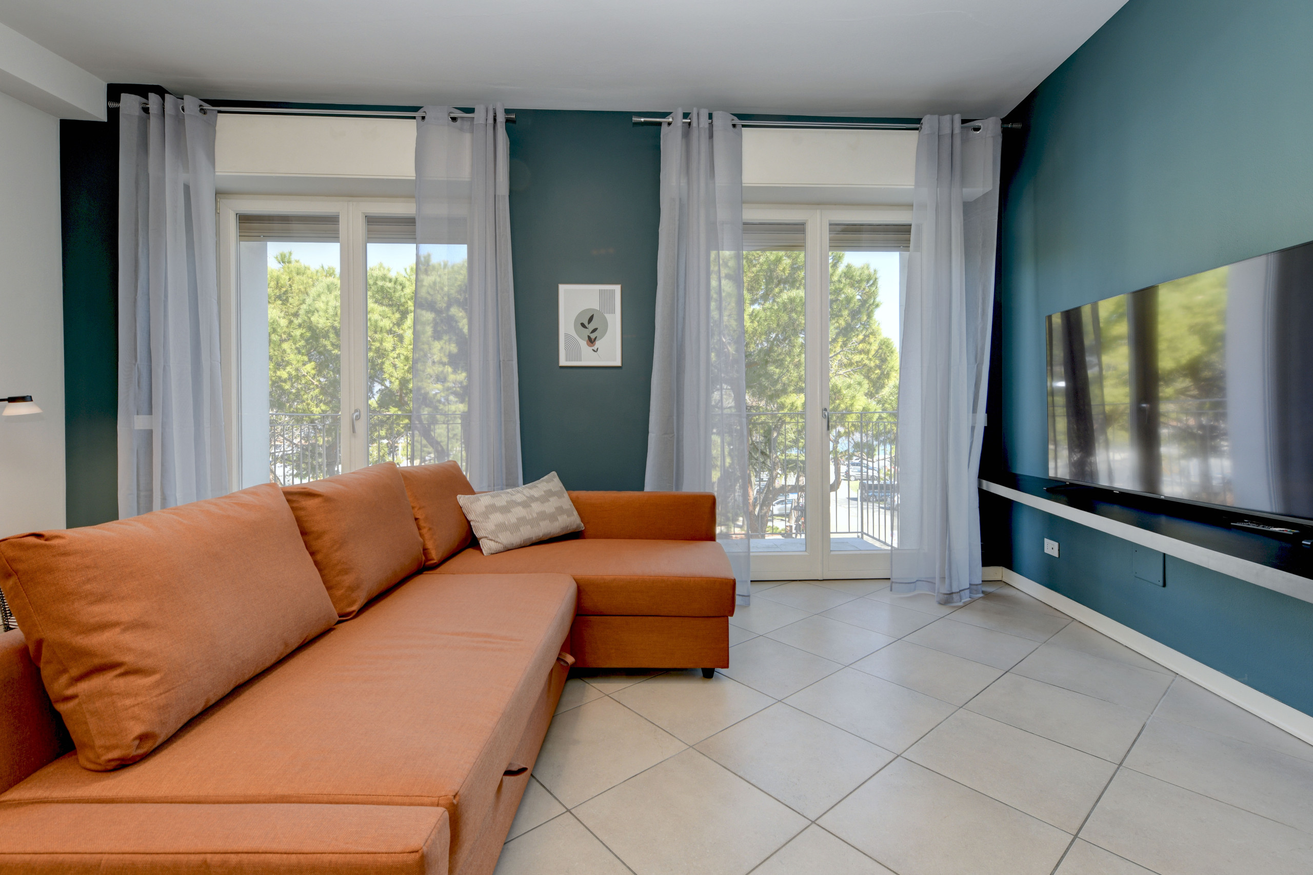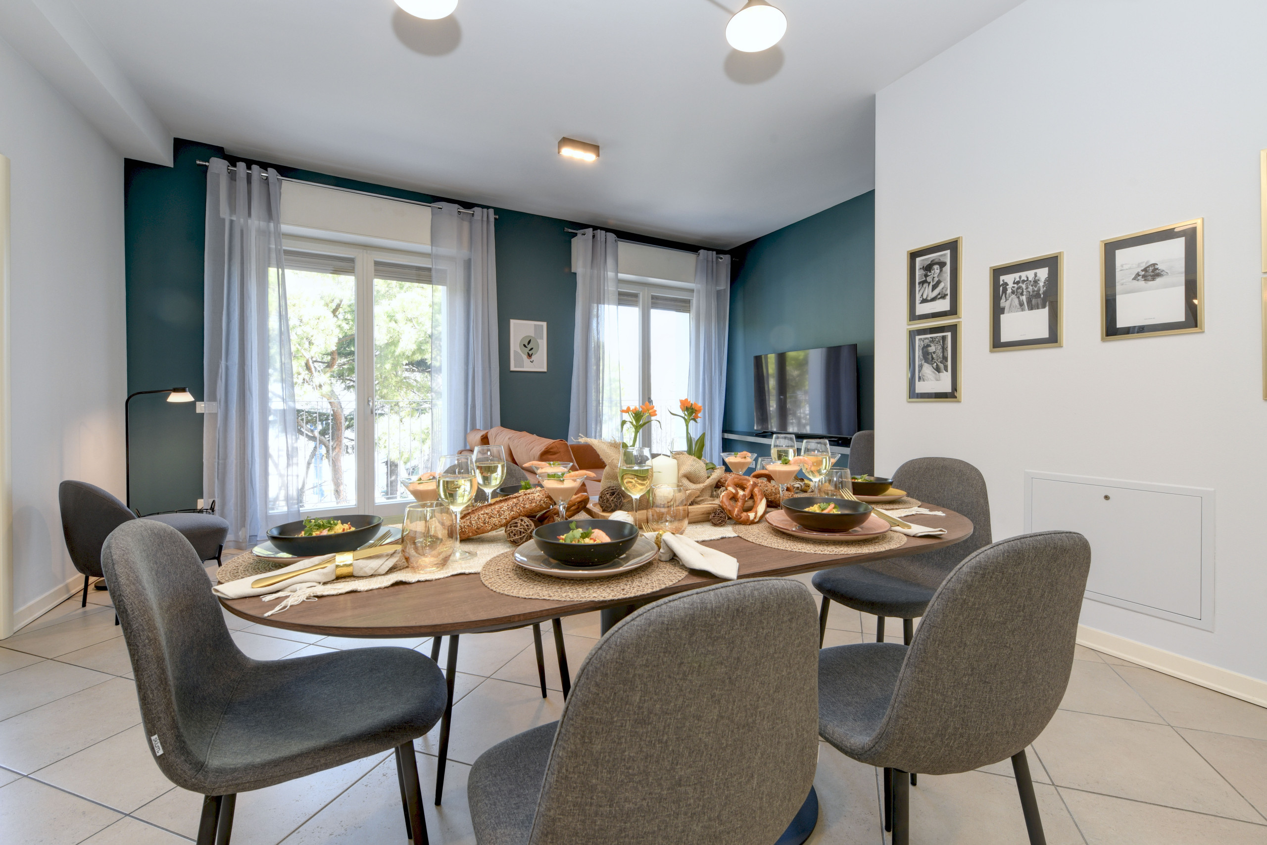 Zaraz po wejściu zostaniecie otuleni jasną i harmonijną atmosferą, gdzie każdy szczegół został przemyślany, aby sprawić, że poczujecie się jak w domu. Apartament wyróżnia się obecnością dwóch uroczych balkoników z widokiem na jezioro, połączonych odpowiednio z kuchnią i salonem, idealnych do delektowania się świeżym powietrzem jeziora już od pierwszej porannej kawy. Przestrzeń dzienna, obszerna i dobrze rozplanowana, mieści nowoczesny i komfortowy salon, wzbogacony o Smart TV do chwil relaksu, oraz w pełni wyposażoną kuchnię ze wszystkim, co niezbędne do gotowania: płytą grzewczą, piekarnikiem, lodówką, ekspresem do kawy, naczyniami i przyborami. Każdy element został przemyślany, aby oferować praktyczność bez rezygnacji ze stylu.