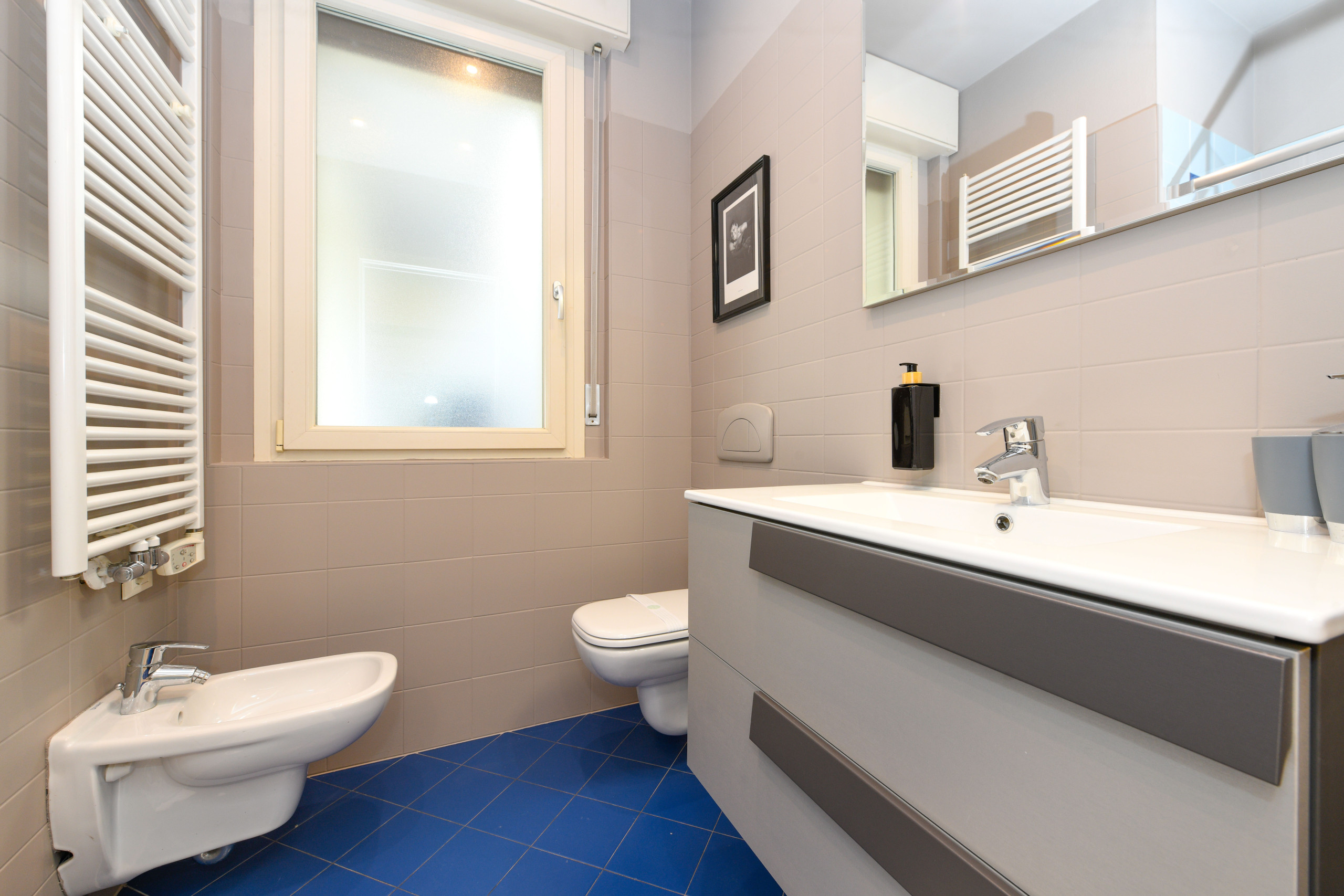 Apartament posiada dwie osobne łazienki, jedną z wanną, a drugą z przestronnym prysznicem, obie urządzone z gustem i pomyślane, aby oferować komfort i funkcjonalność. Strefę usługową dopełnia wygodna komórka, gdzie znajdziecie pralkę i wszystkie przydatne akcesoria do codziennego sprzątania, dzięki czemu poczujecie się całkowicie niezależni podczas pobytu.