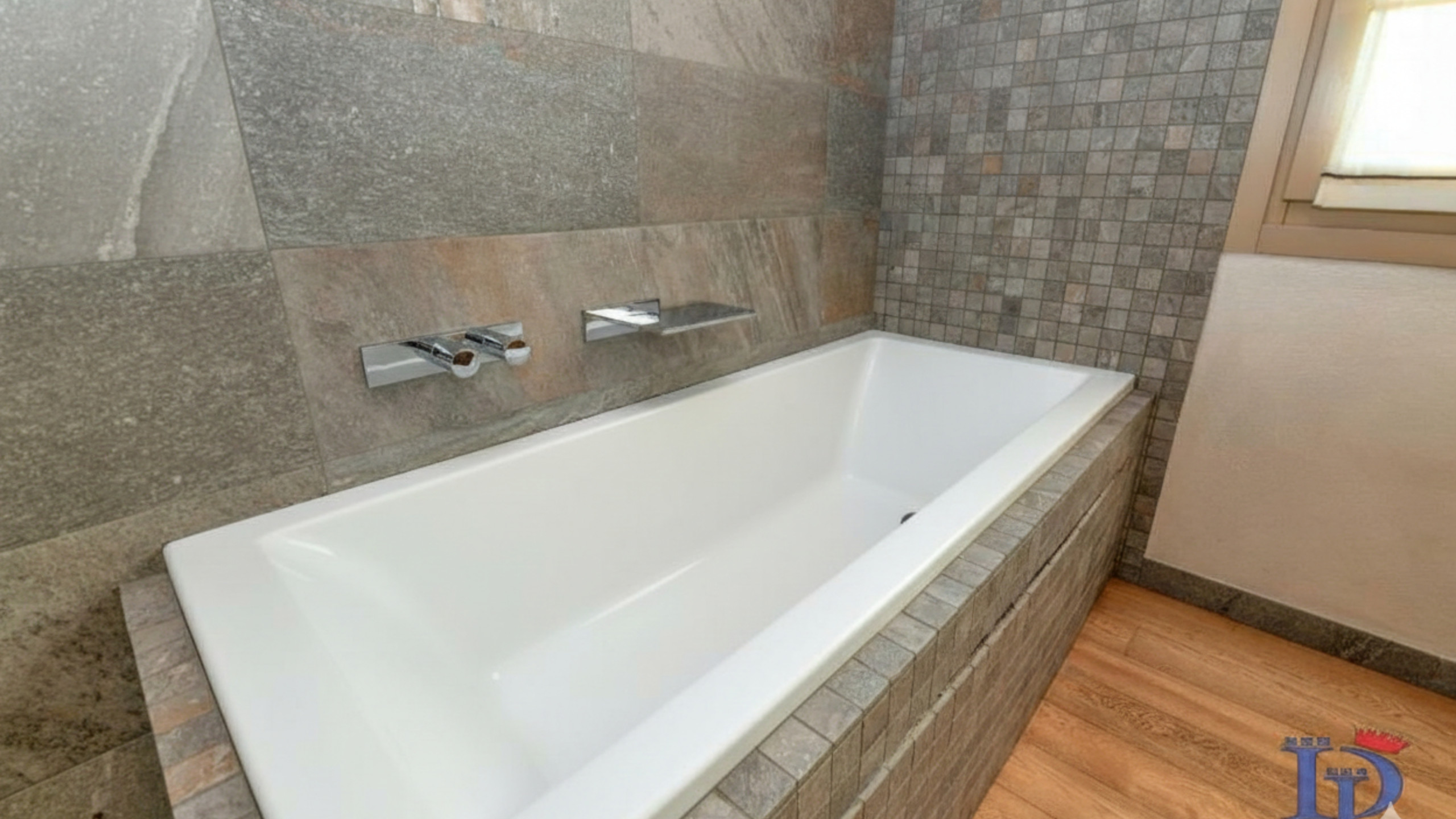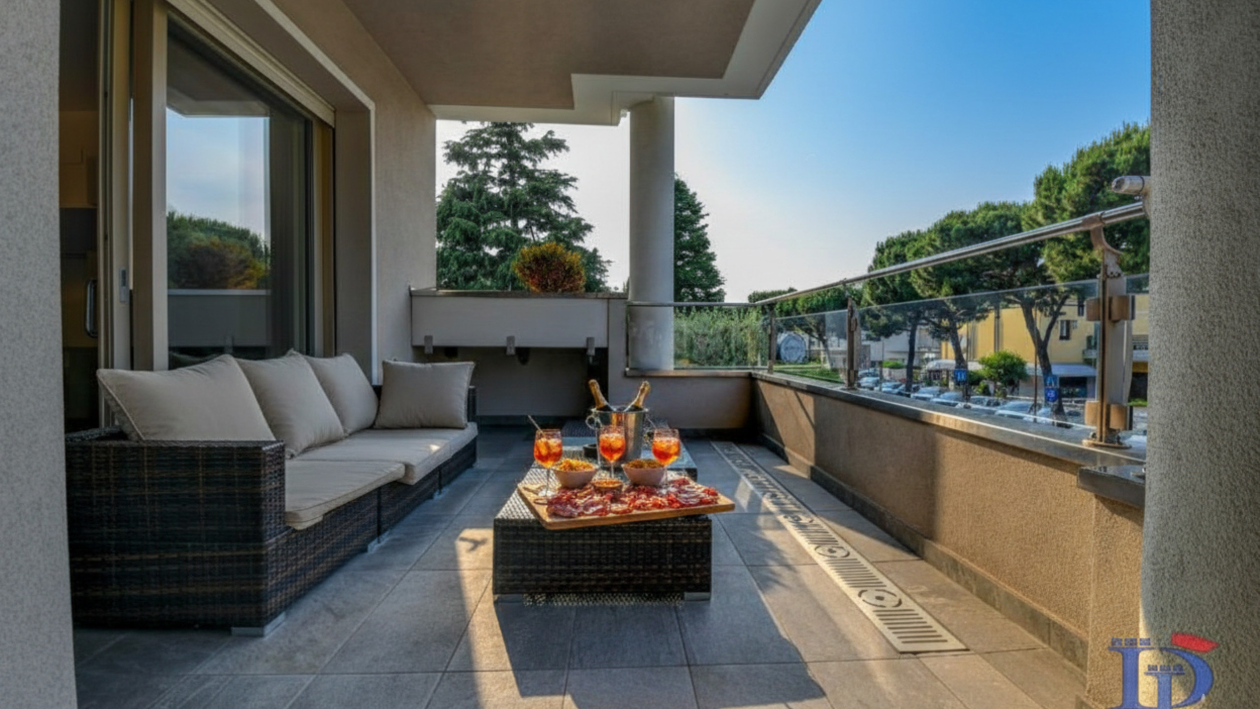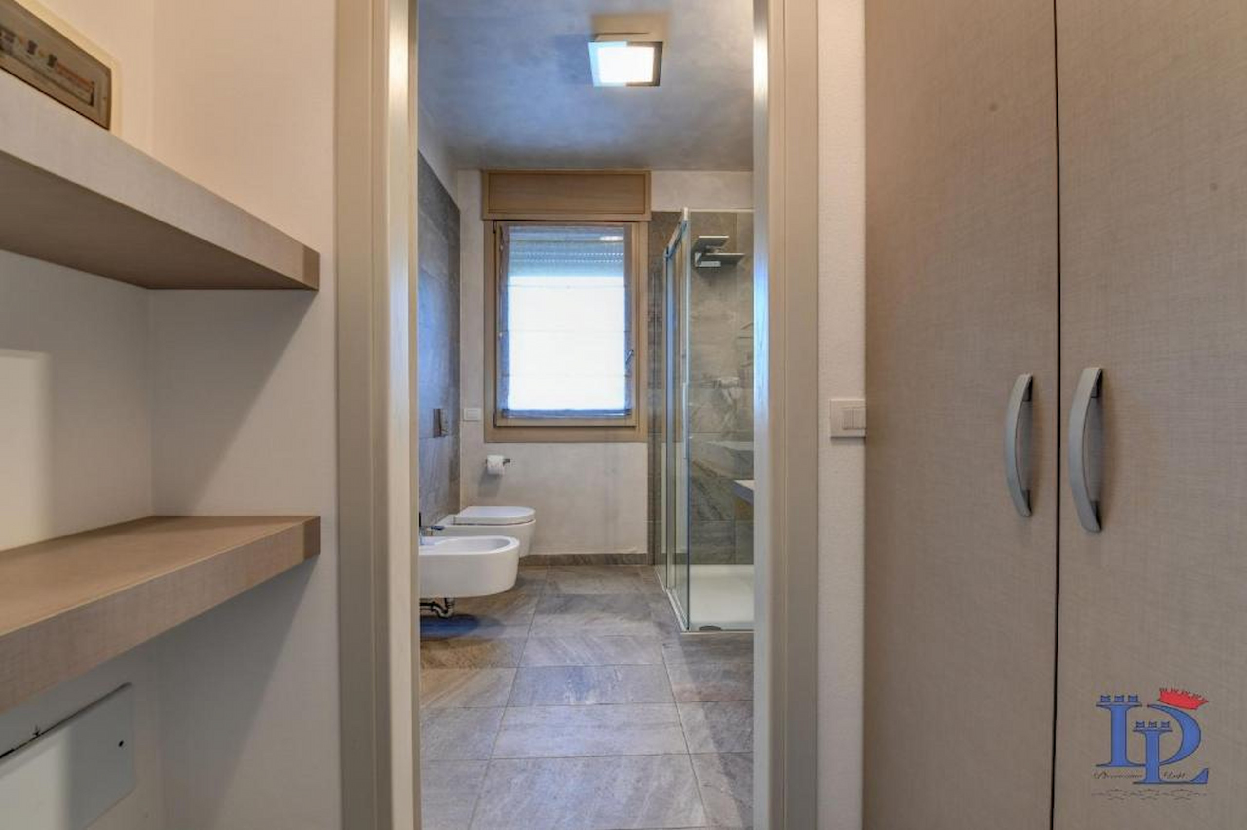 Apartament wyróżnia się elegancją i funkcjonalnością przestrzeni. Po wejściu przywitamy się w przestronnym i jasnym salonie, urządzonym z gustem i wyposażonym we wszystkie udogodnienia: klimatyzację, Smart TV i wygodną sofę, idealną do relaksu lub wieczoru w towarzystwie. Strefa dzienna łączy się bezpośrednio z kuchnią w stylu amerykańskim, oddzieloną eleganckimi przesuwnymi drzwiami, dzięki czemu jest idealna do otwartego i jasnego użytkowania. Kuchnia jest przestronna, wyposażona w wyspę i wszystkie niezbędne akcesoria do przygotowania pysznych potraw lub aperitifów. Z kuchni i salonu trzy duże drzwi balkonowe prowadzą na obszerny taras o powierzchni 48 m², oferujący panoramiczny widok na jezioro. Ta przestrzeń zewnętrzna jest prawdziwym rajem, z dużym stołem, krzesłami i wygodną sofą, idealną do posiłków na świeżym powietrzu lub chwil relaksu. Wieczorem atmosfera staje się jeszcze bardziej urokliwa dzięki dyskretnym reflektorom, tworząc idealną scenerię do delektowania się widokiem i spokojem.