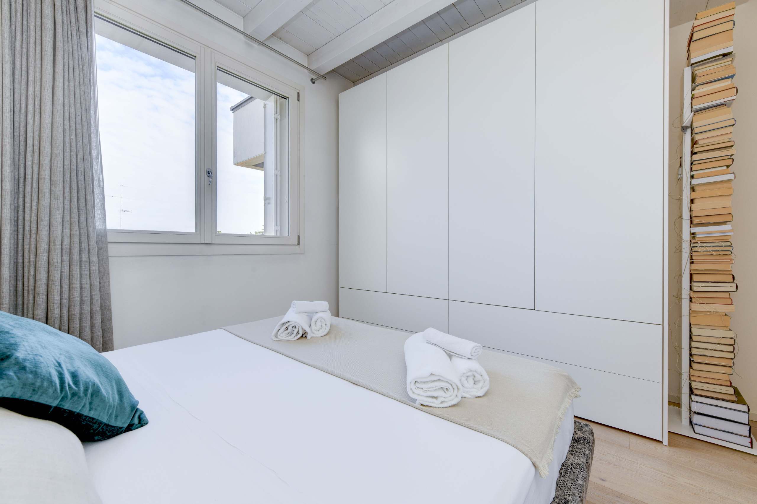Sypialnia małżeńska to prawdziwe schronienie spokoju. Urządzona z gustem i klimatyzowana, aby oferować maksymalny komfort w każdej porze roku, wyposażona jest w łóżko z materacem ortopedycznym i wysokiej jakości topperem, zaprojektowanym, aby zapewnić regenerujący odpoczynek. Stąd można wyjść na drugi balkon, który oferuje kolejną wspaniałą perspektywę jeziora i przyczynia się do stworzenia intymnej i relaksującej atmosfery.