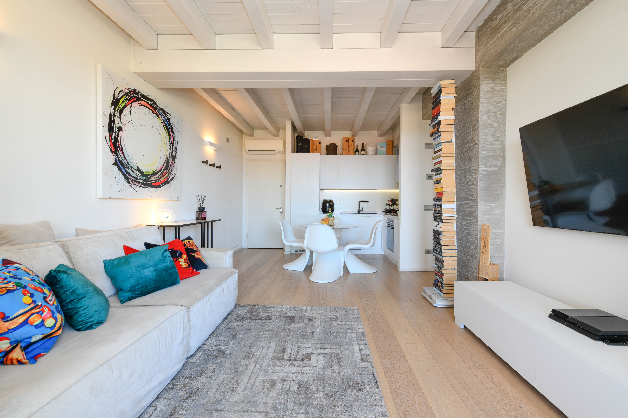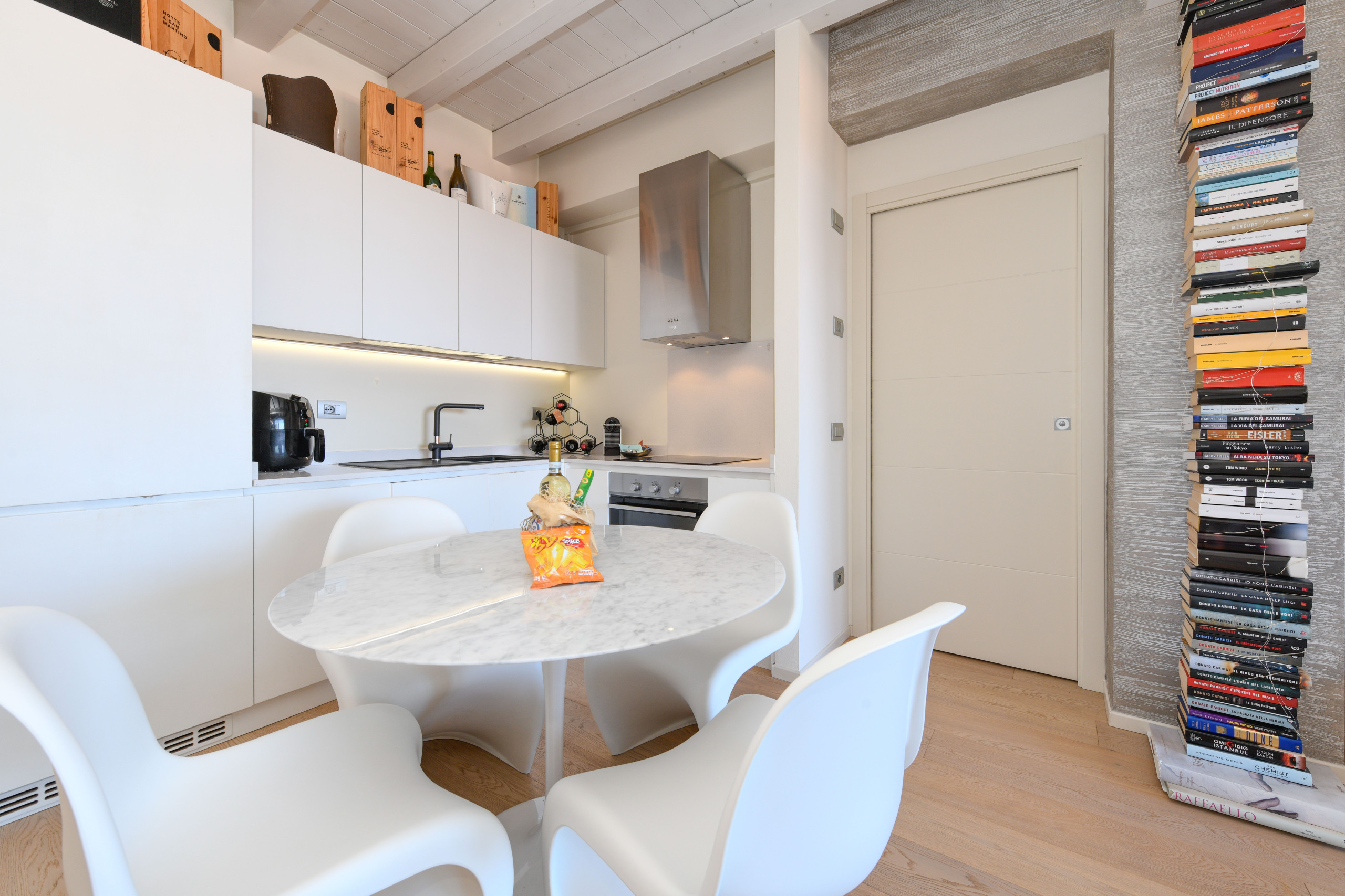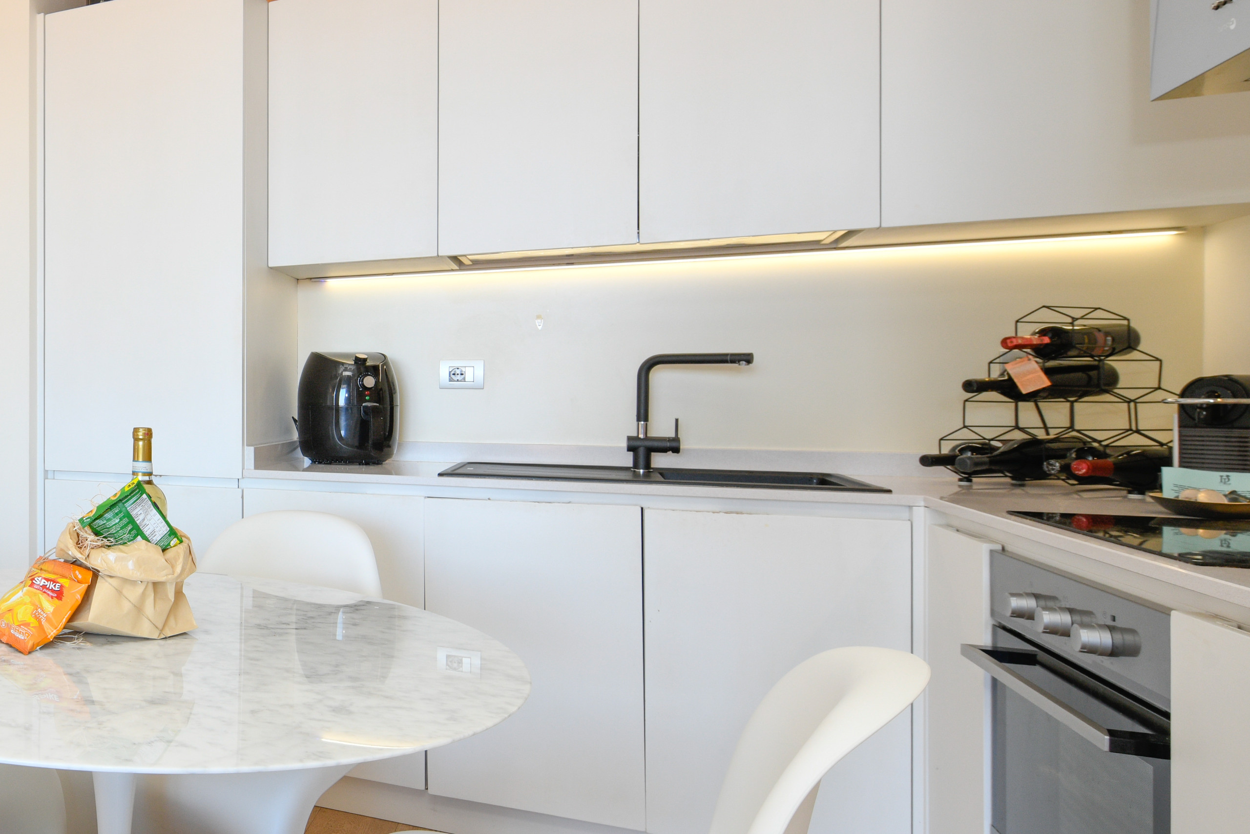Zaraz po przekroczeniu progu, zostaną Państwo powitani przez przytulną i wyrafinowaną atmosferę, gdzie każdy element został wybrany, aby zapewnić elegancję i funkcjonalność. Przestrzeń dzienna, obszerna i jasna, została zaprojektowana, aby być sercem apartamentu. Wygodna, nowoczesna sofa rozkładana zaprasza do relaksu przed 65-calowym smart TV z dostępem do Netflixa i głównych platform streamingowych, idealnym do spędzenia spokojnego wieczoru po dniu zwiedzania jeziora. Otwarta kuchnia, w pełni wyposażona, oferuje wszystko, co niezbędne do samodzielnego przygotowania pysznych posiłków, z płytą indukcyjną, lodówką, piekarnikiem tradycyjnym i mikrofalowym, zmywarką, ekspresem do kawy Nespresso, tosterem, czajnikiem elektrycznym oraz kompletnym zestawem naczyń i garnków. Światłowodowe połączenie Wi-Fi o wysokiej prędkości zapewnia nieprzerwane surfowanie, idealne do pracy zdalnej lub pozostania w kontakcie z przyjaciółmi i rodziną.