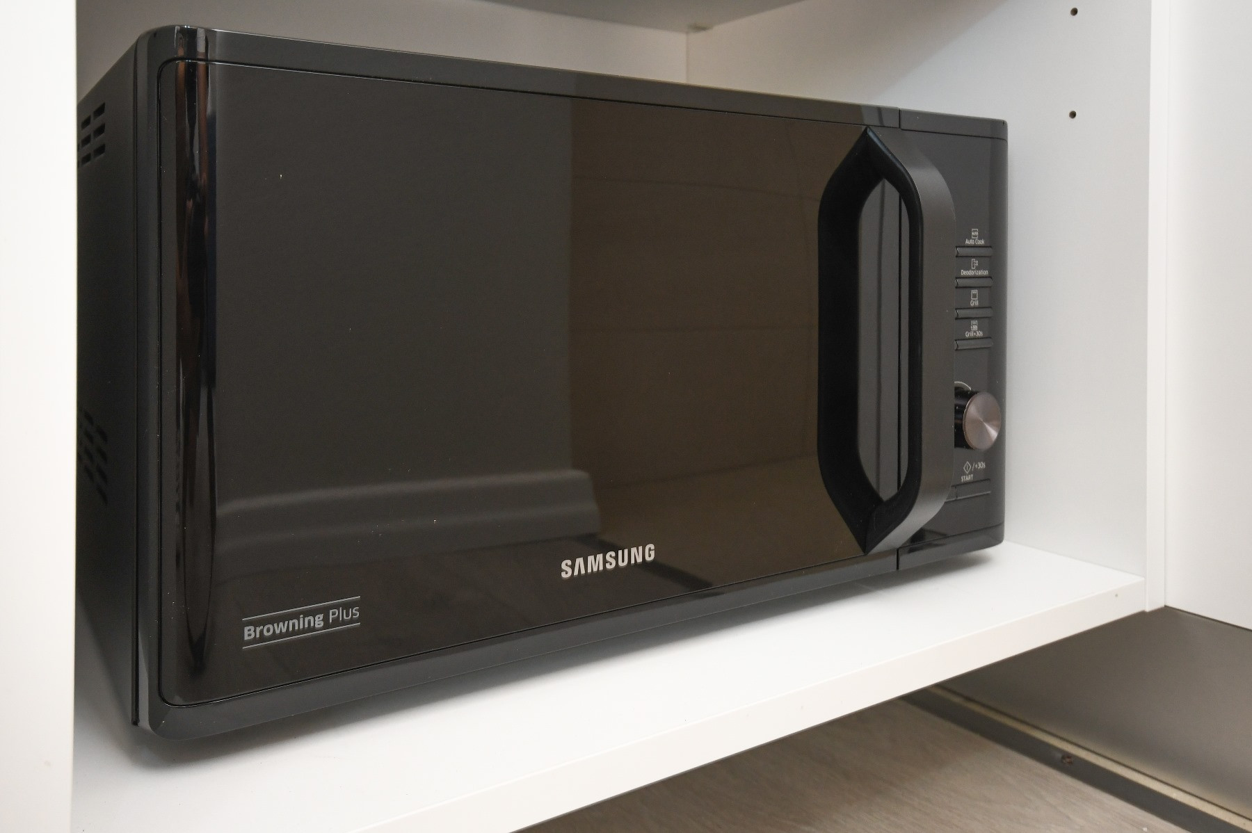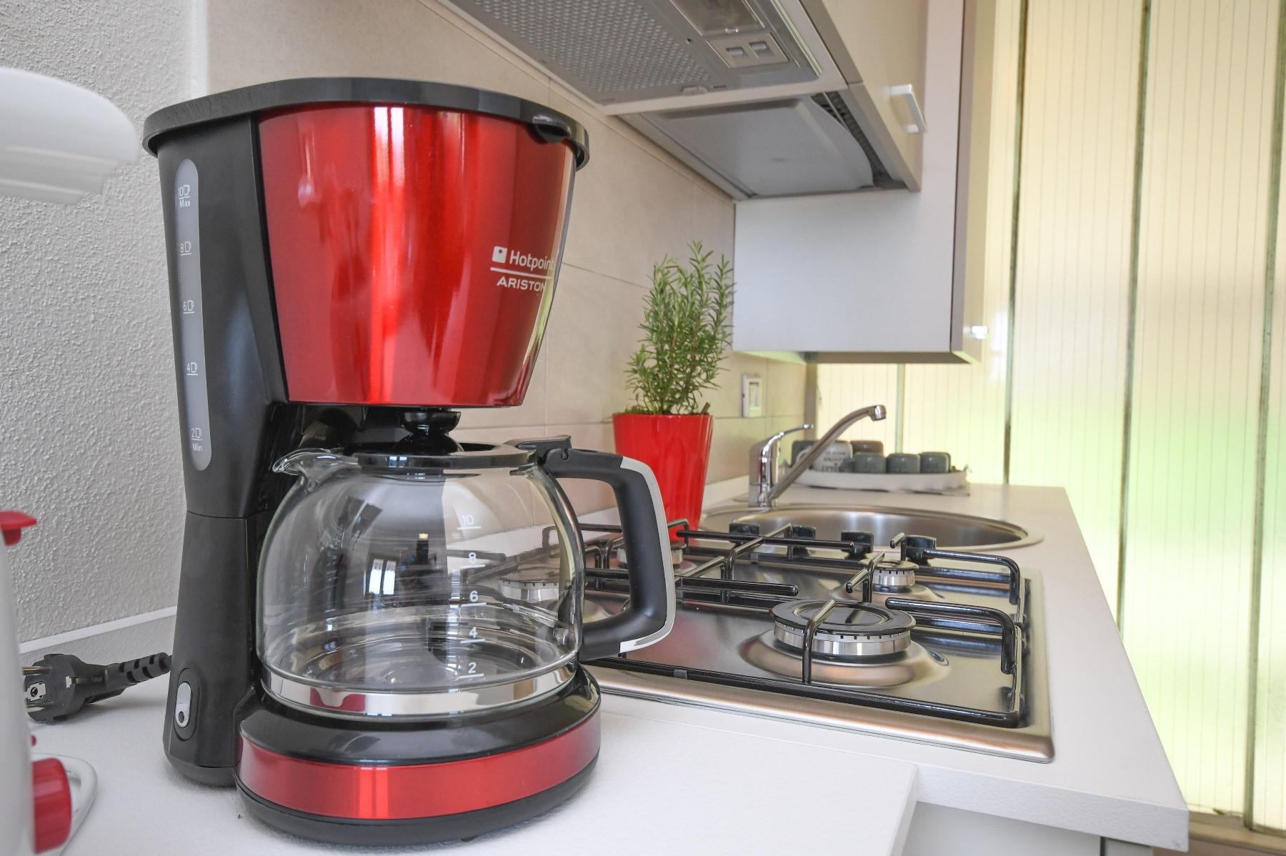 Kuchnia otwarta od kuchenka gazowa, jest wyposażone w chłodziarka, mikrofalówka, zamrażarka, naczynia/sztućce, ekspres do kawy i opiekacz/toster.