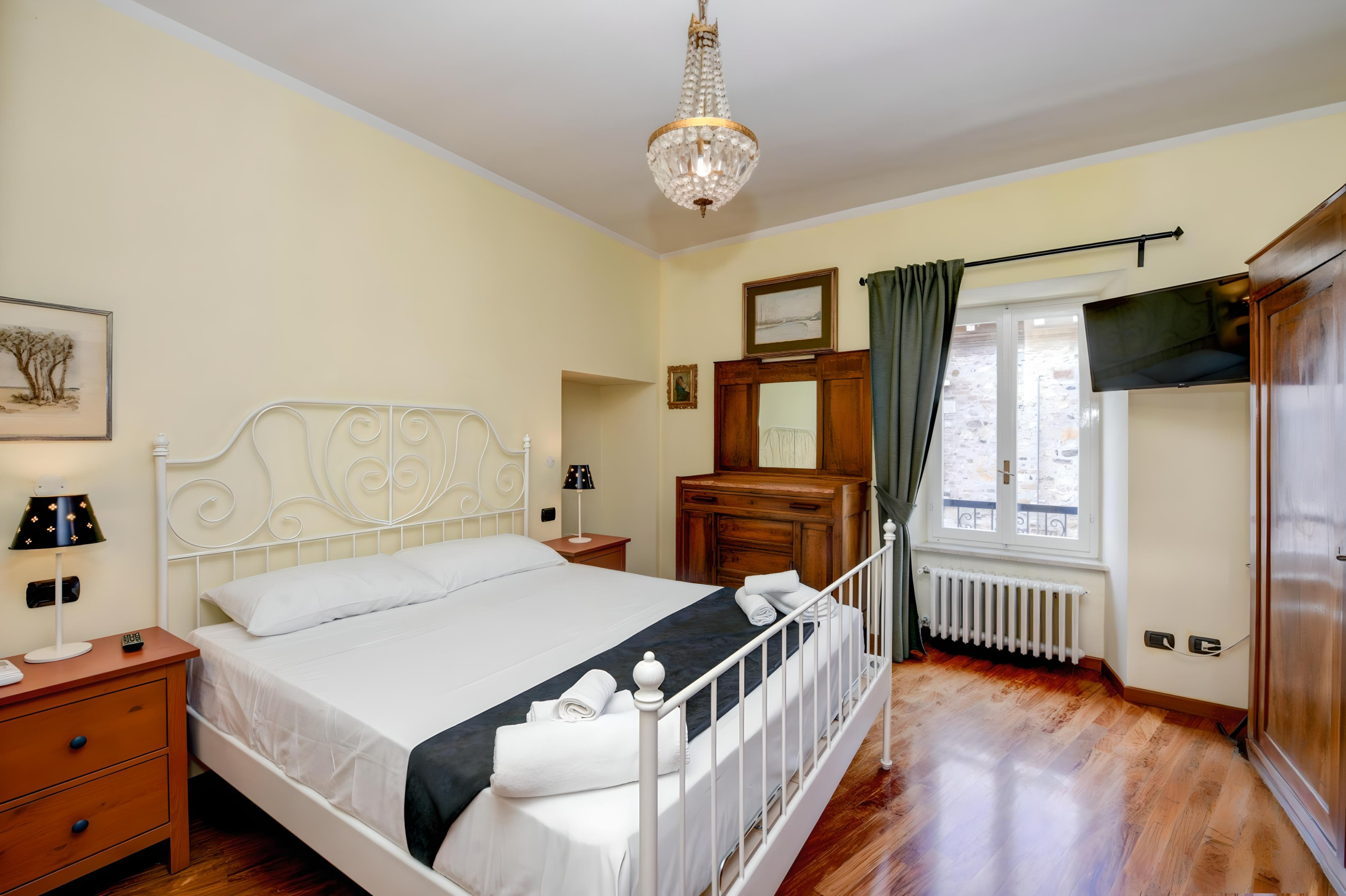 Sypialnia, przestronna i przytulna, jest urządzona w eleganckim i nowoczesnym stylu, zachowując jednocześnie ciepło i urok sirmionskich tradycji. Podwójne łóżko z wysokiej jakości nakładką gwarantuje idealny i regenerujący sen, dodając dodatkową warstwę komfortu. Widok z okna sypialni, również wychodzący na centrum historyczne, jest równie fascynujący i przyczynia się do stworzenia relaksującej i spokojnej atmosfery.