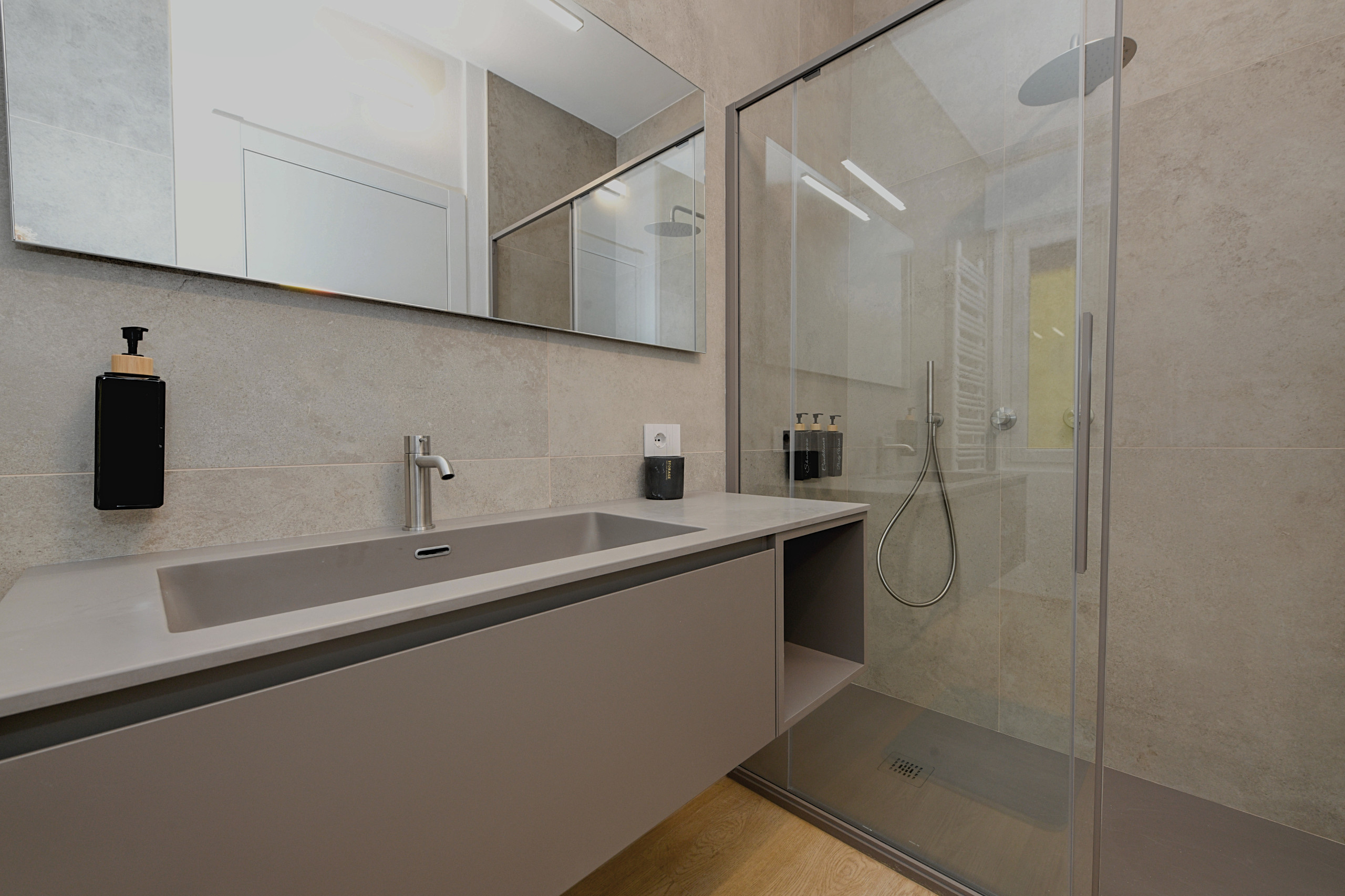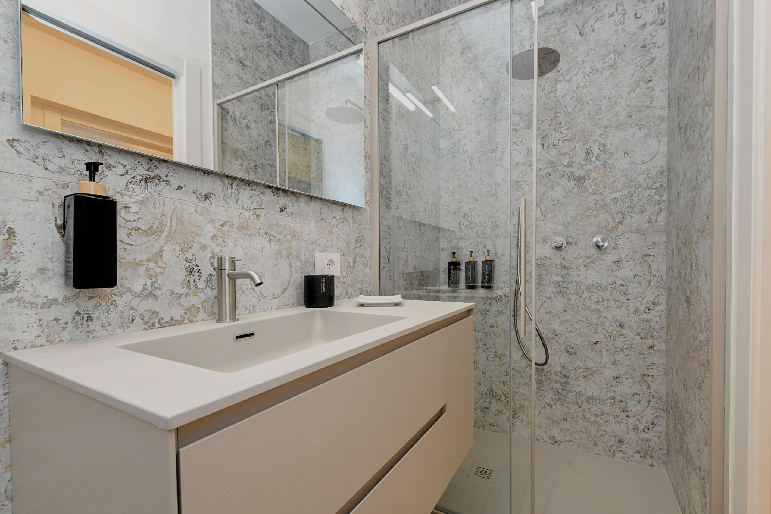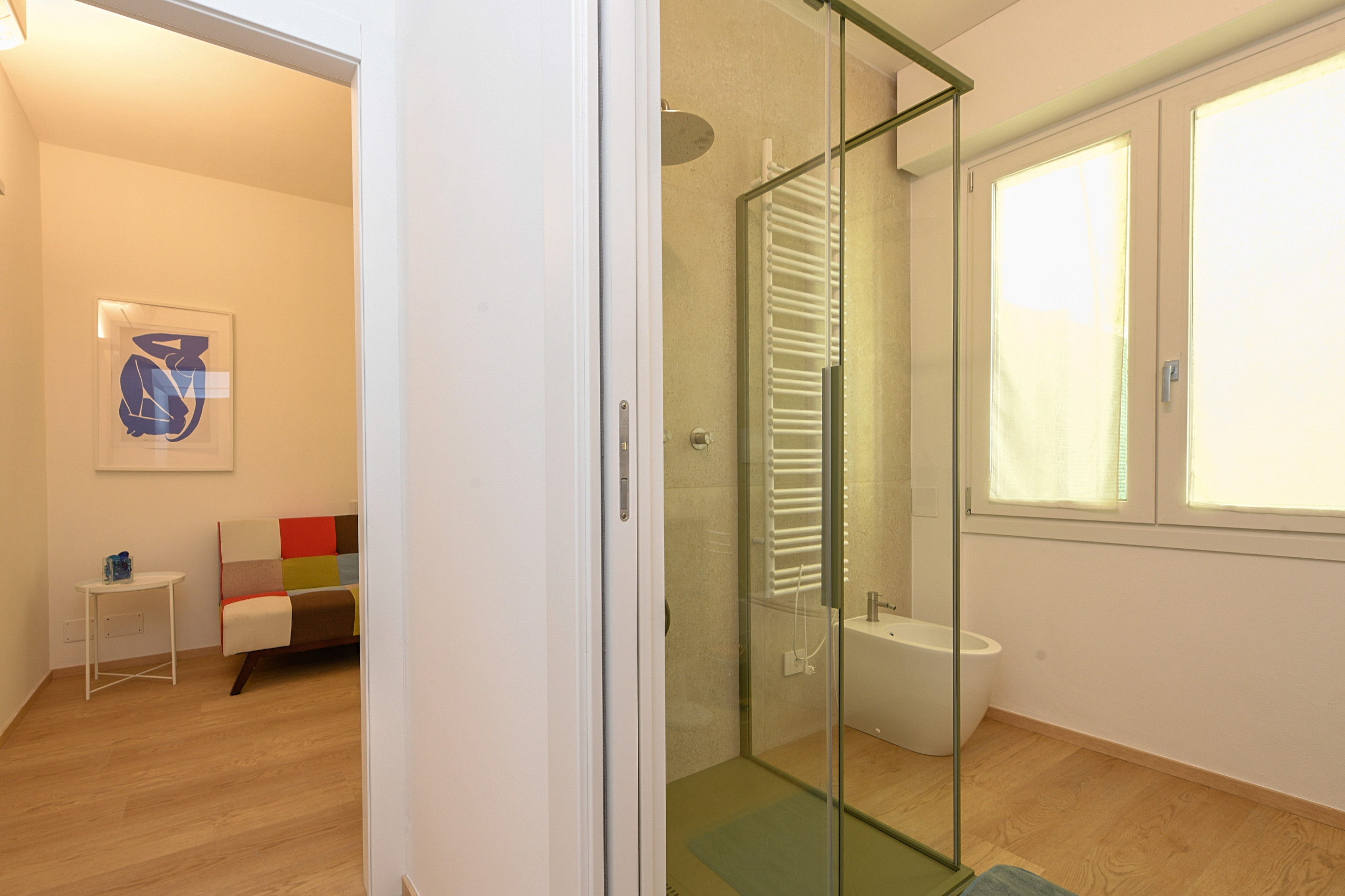 Trzy w pełni wyposażone, nowoczesne i funkcjonalne łazienki urządzone są z prostym smakiem i wyposażone w wygodne prysznice walk-in. Pralka i suszarka są do dyspozycji, aby każdy pobyt był jeszcze bardziej praktyczny, zwłaszcza podczas długich pobytów, dla dużych rodzin lub grup przyjaciół. Nowoczesna kuchnia indukcyjna, w pełni wyposażona, oferuje wszystko, co niezbędne, aby poczuć się naprawdę jak w domu i przeżyć każdy posiłek jako moment wspólnoty.