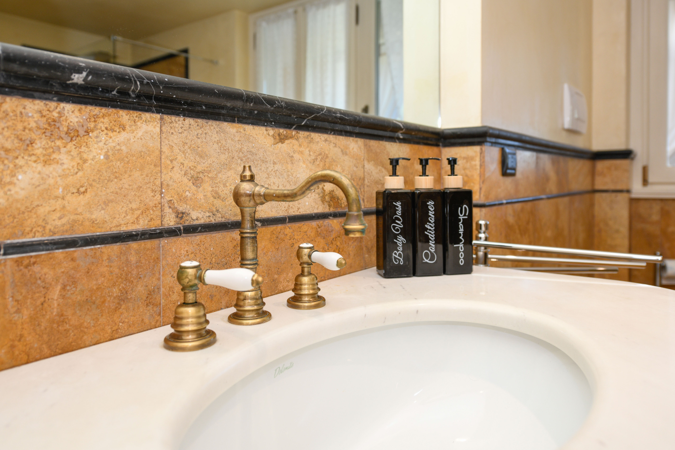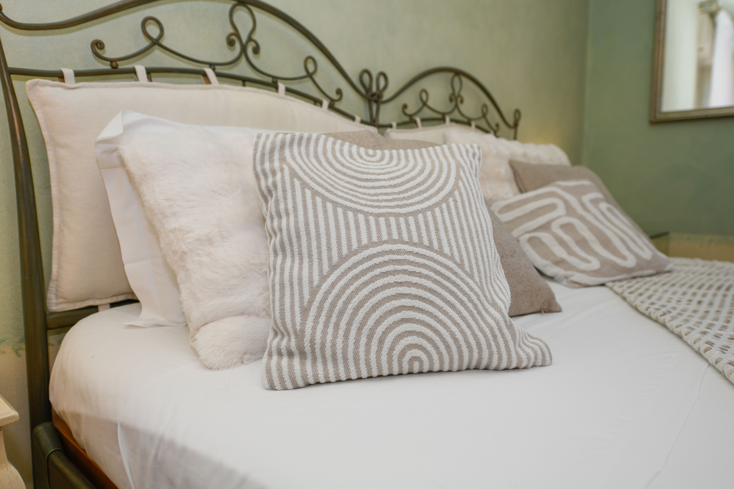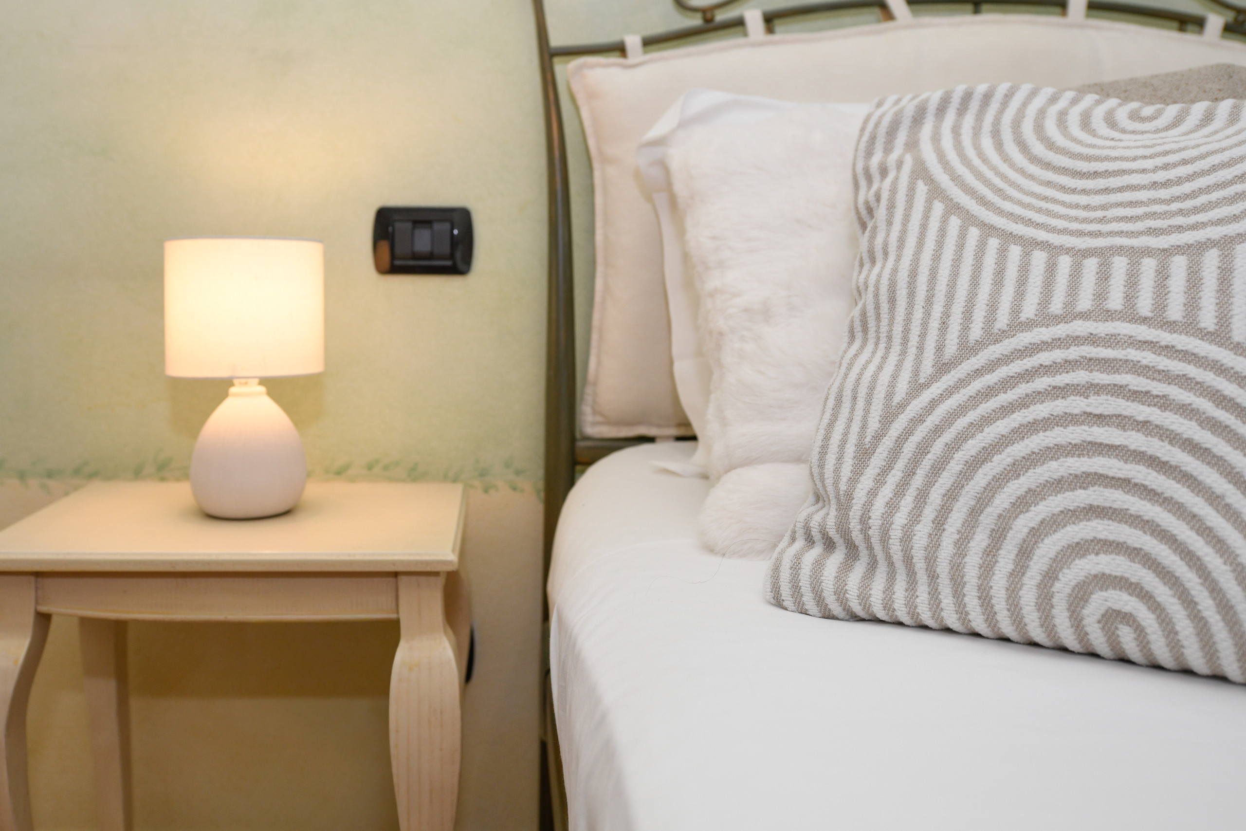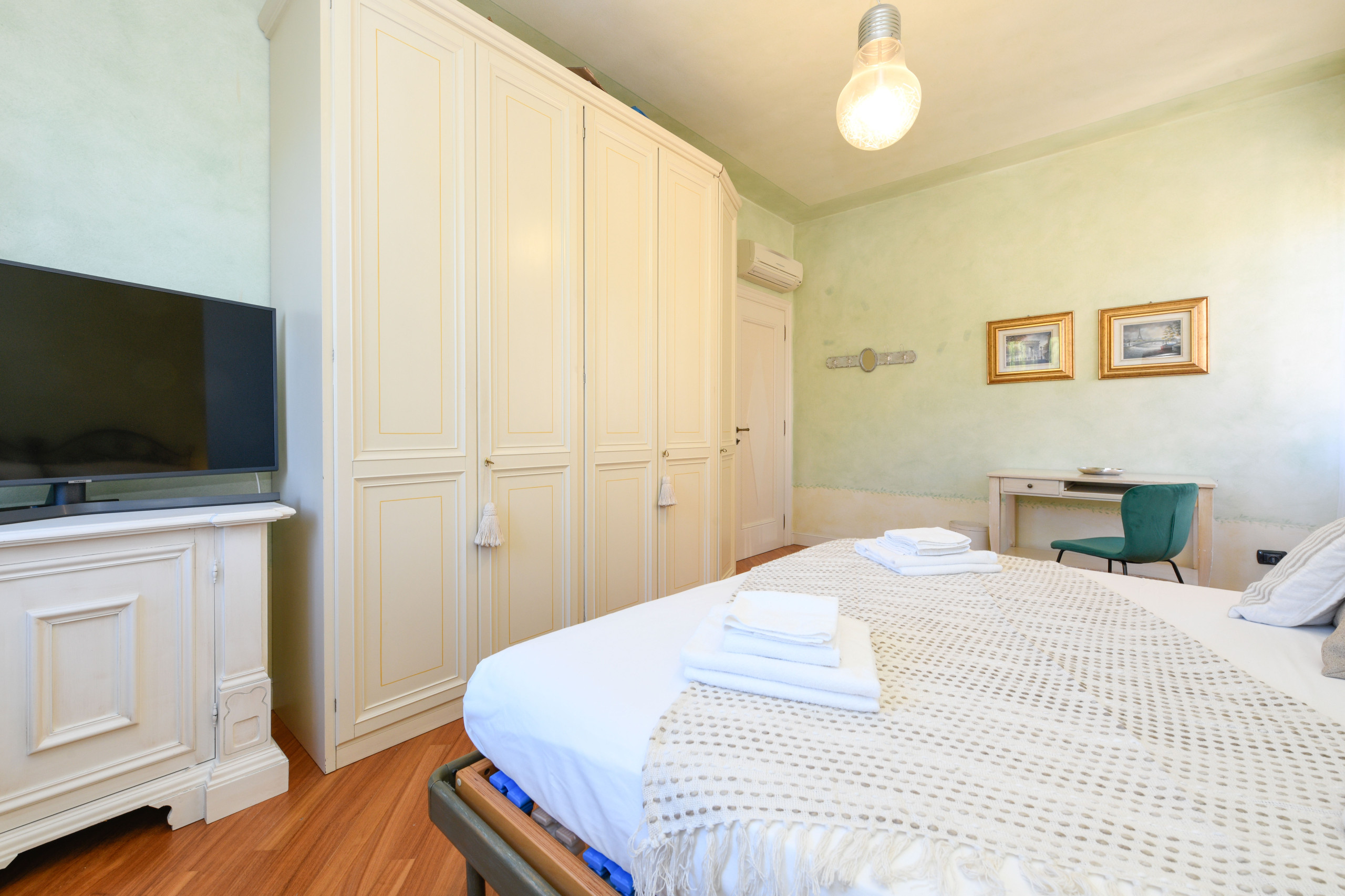 Sypialnia główna to eleganckie serce piętra: wyrafinowany fresk na suficie oprawia łóżko małżeńskie i tworzy wyjątkową atmosferę, łącząc klasyczny urok z nowoczesnym komfortem, podczas gdy prywatna łazienka, obszerna i doskonale wyposażona, oferuje podwójną umywalkę, prysznic walk-in i wspaniałą wannę idealną, aby pozwolić sobie na chwilę relaksu po dniu spędzonym wśród miasteczek, plaż i krajobrazów Garda. Z łazienki można wyjść na zewnętrzny balkonik, idealny na poranną kawę lub delektowanie się ciszą wieczornych godzin.