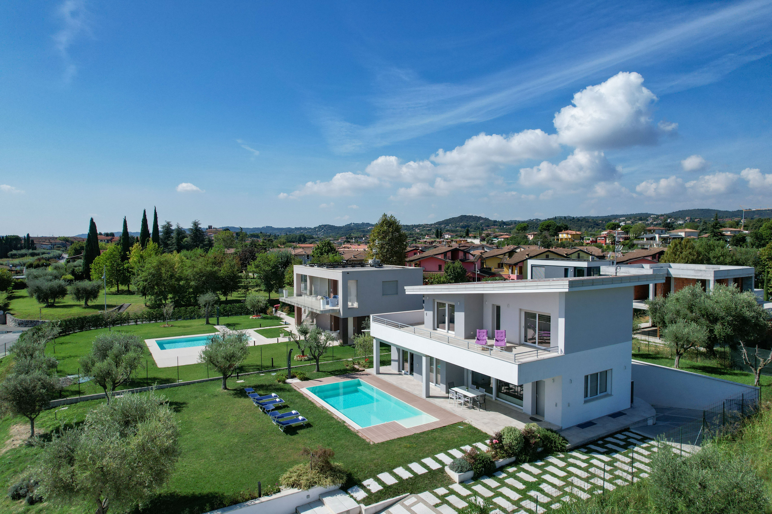 Garten und Pool sind sehr gepflegt, auch die Aussicht auf den See und Umgebung hat uns sehr gefallen. Zimmer und Betten sind gut mit genügenden Schränken ausgestattet. Bad/Duschräume sind auch okay. Was uns weniger gefallen hat sind die etwas kleine Küche, die viel befahrene Strasse direkt vor dem Grundstück und die grosse Terrasse im oberen Stock mit rostigem Geländer und fleckigem Steinboden. |